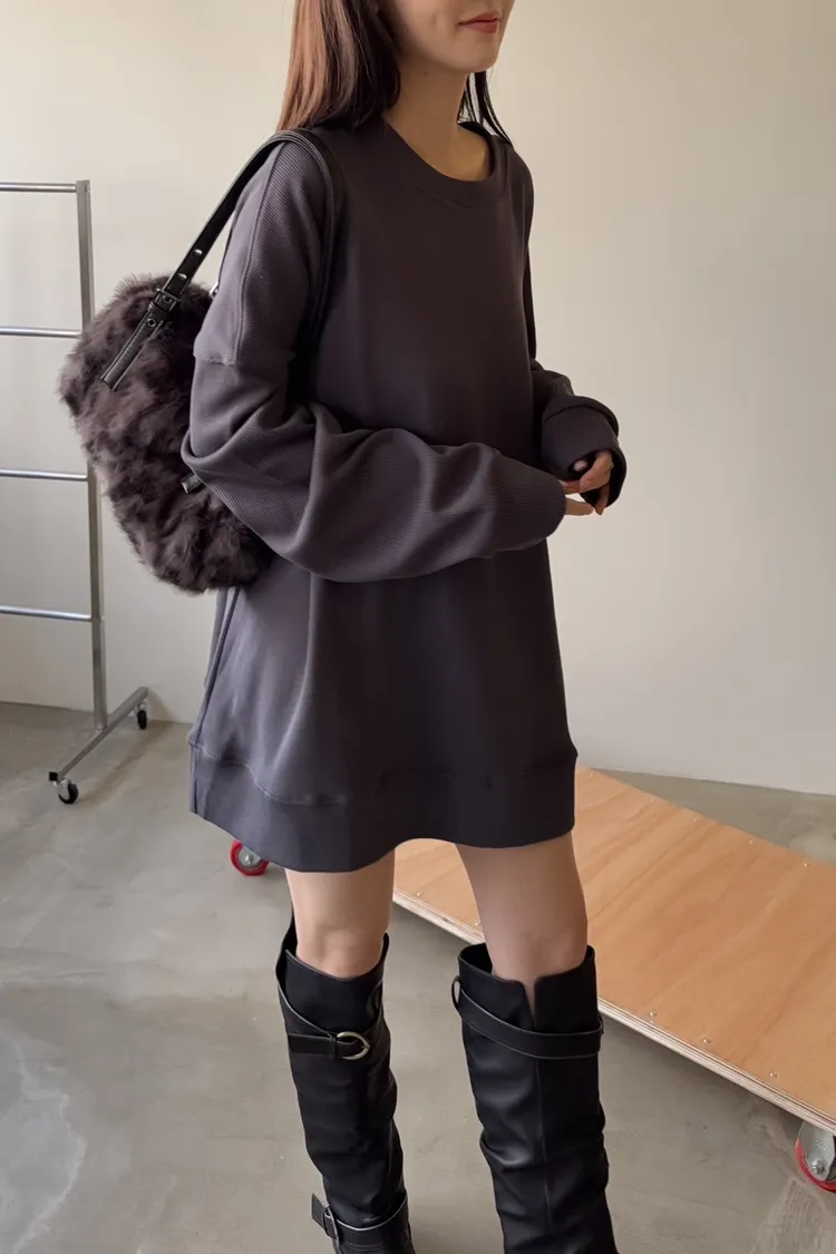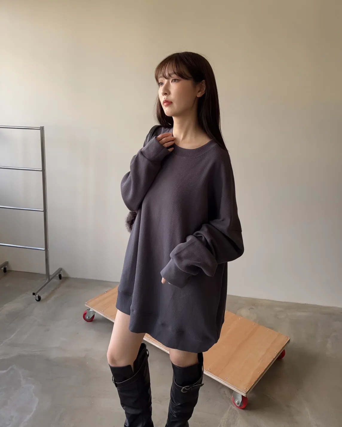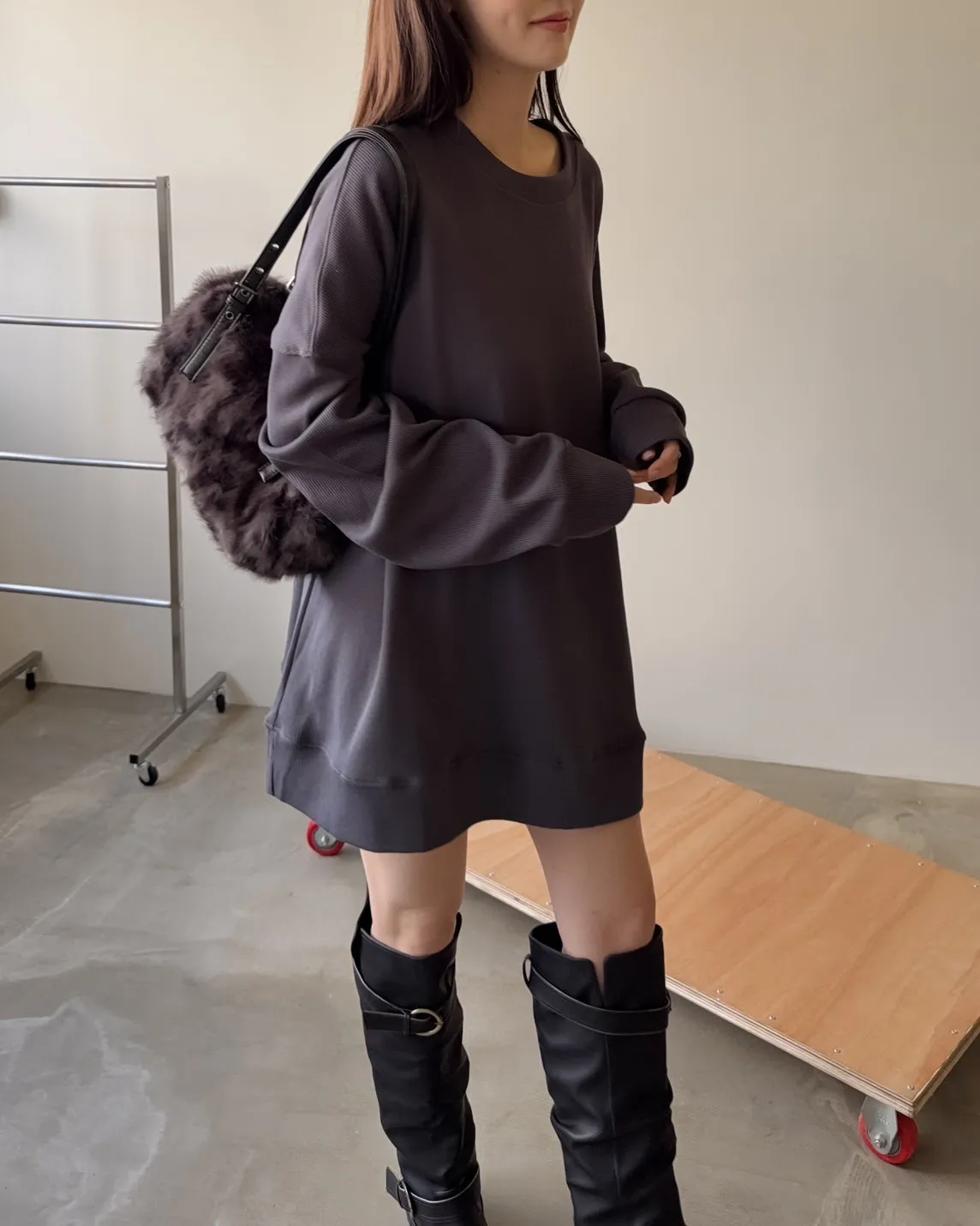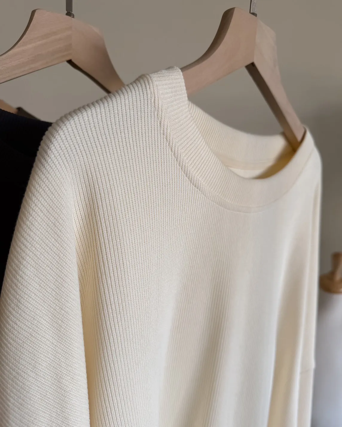 寬鬆落肩 細細坑紋 微厚 袖縮口