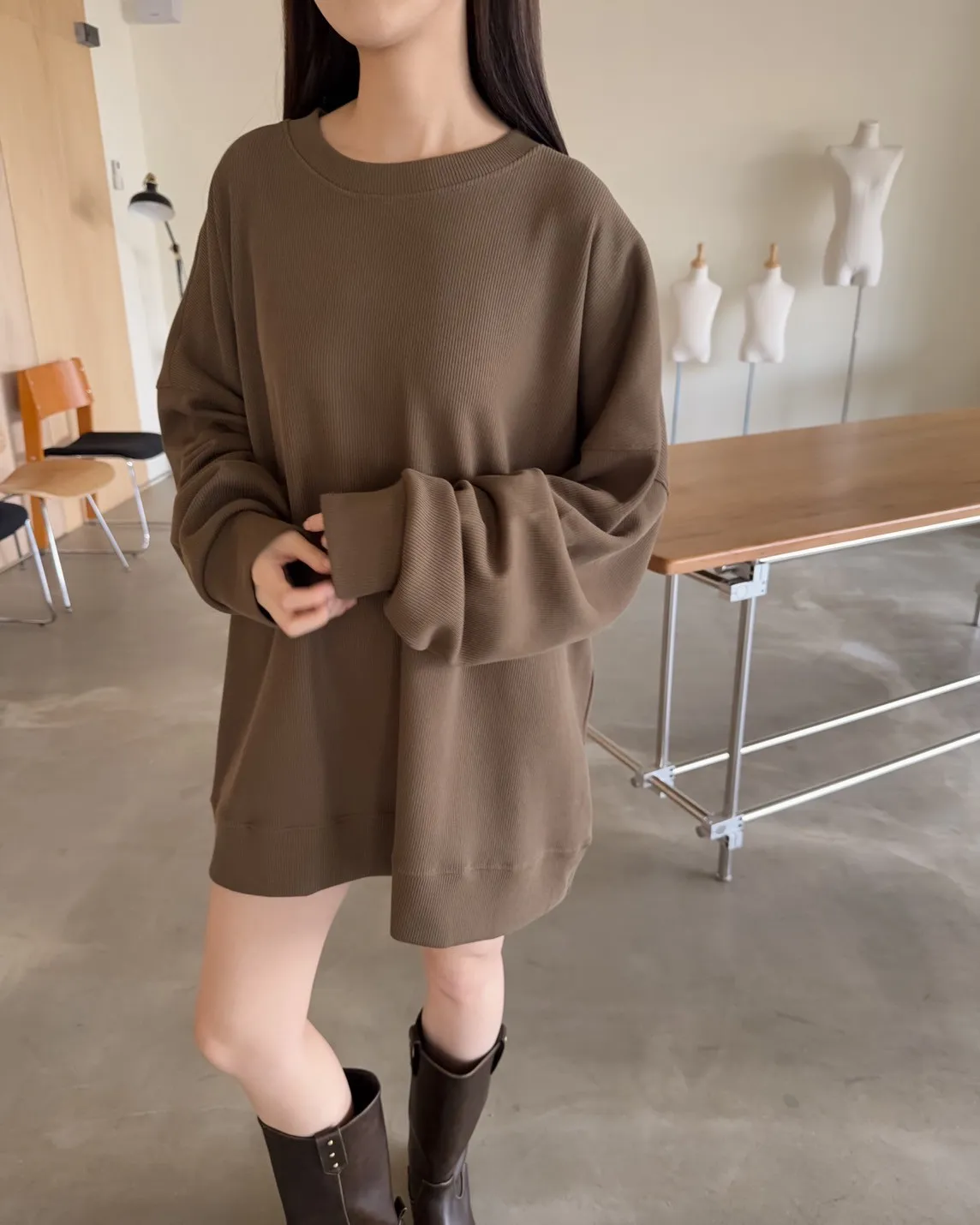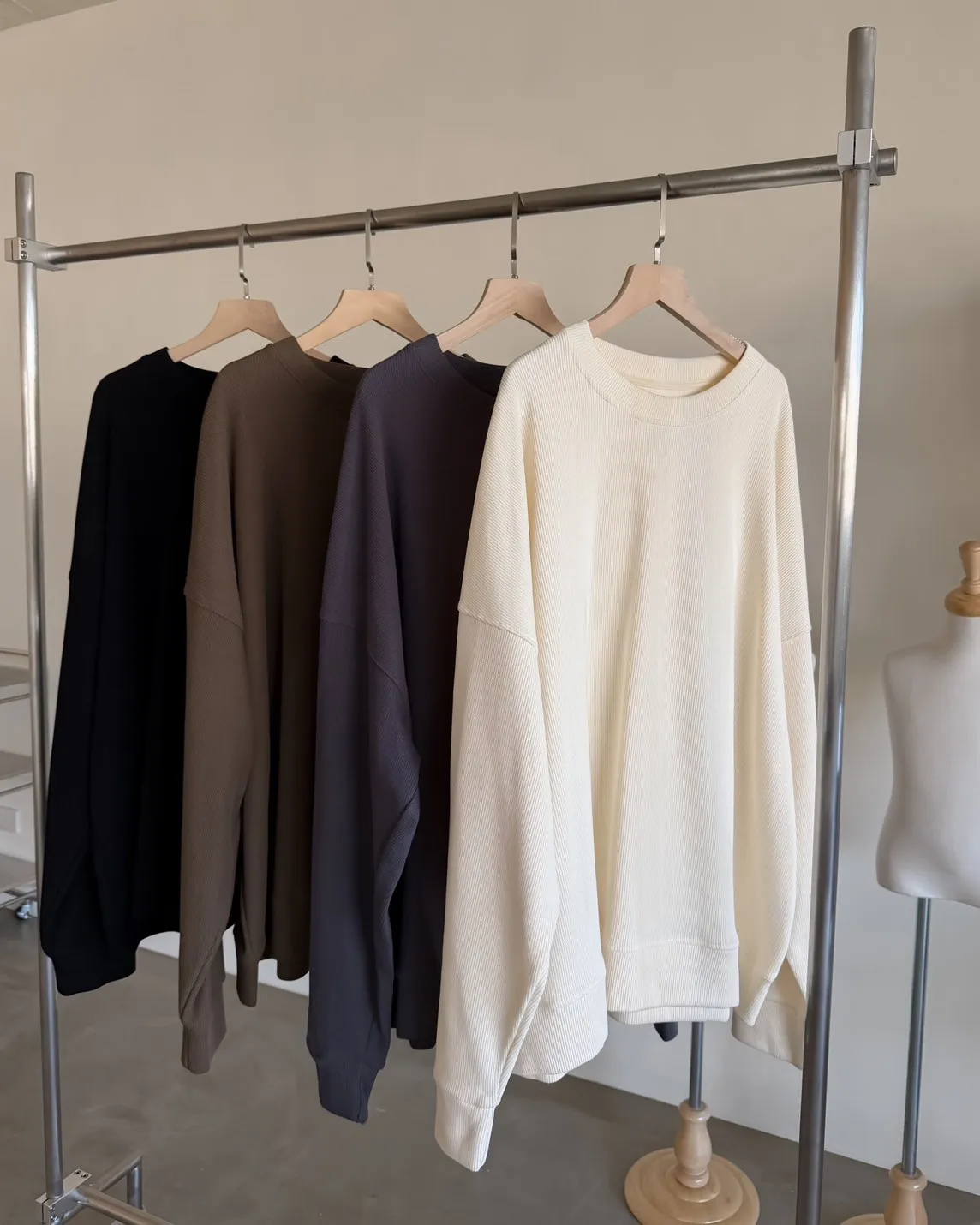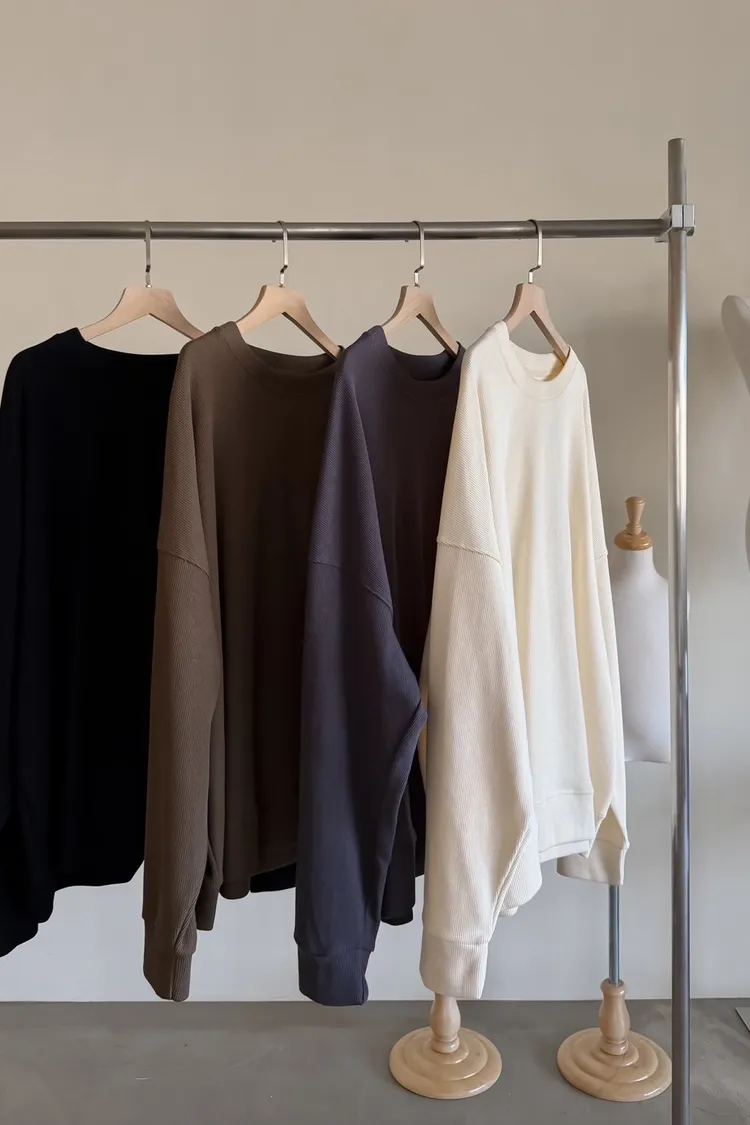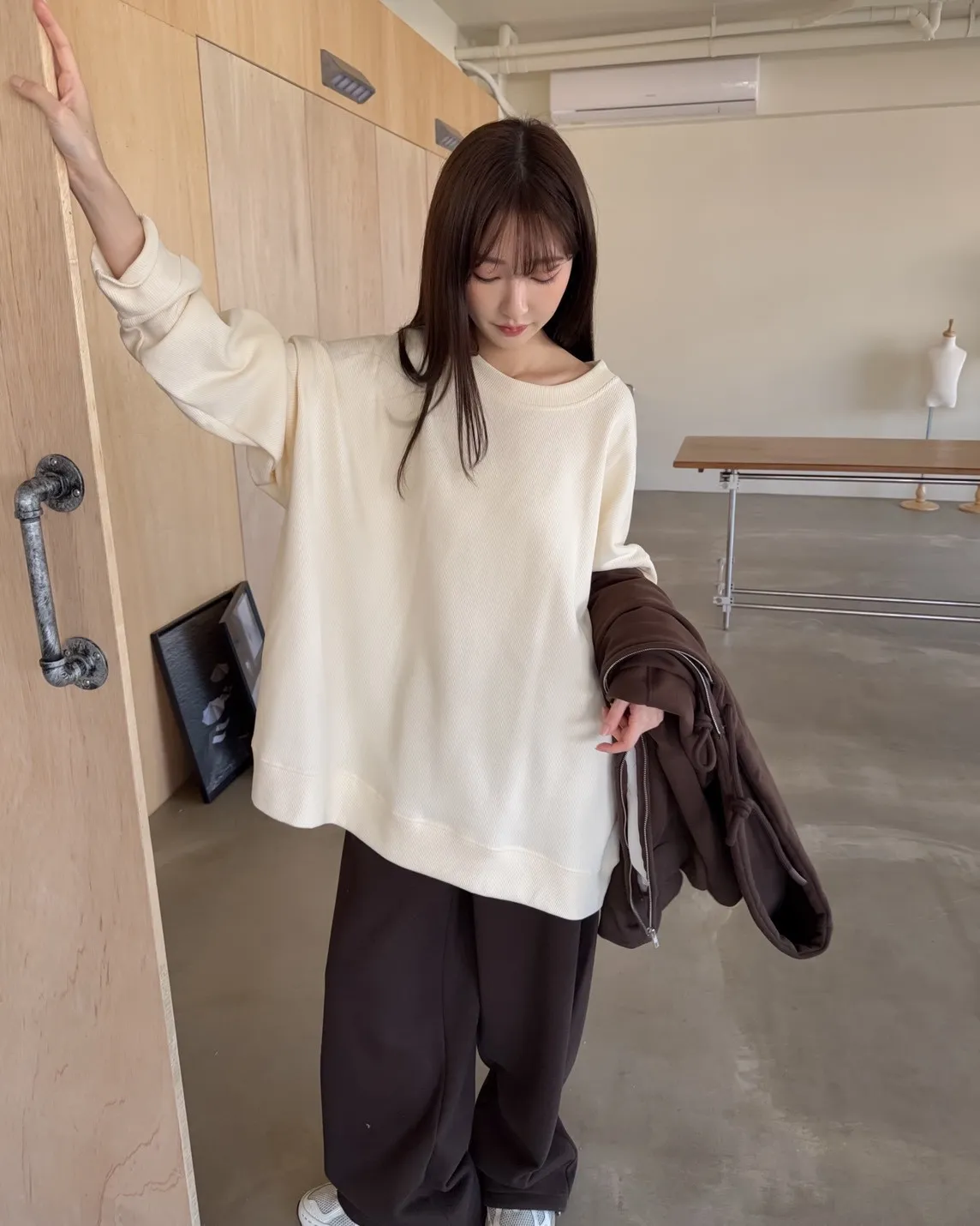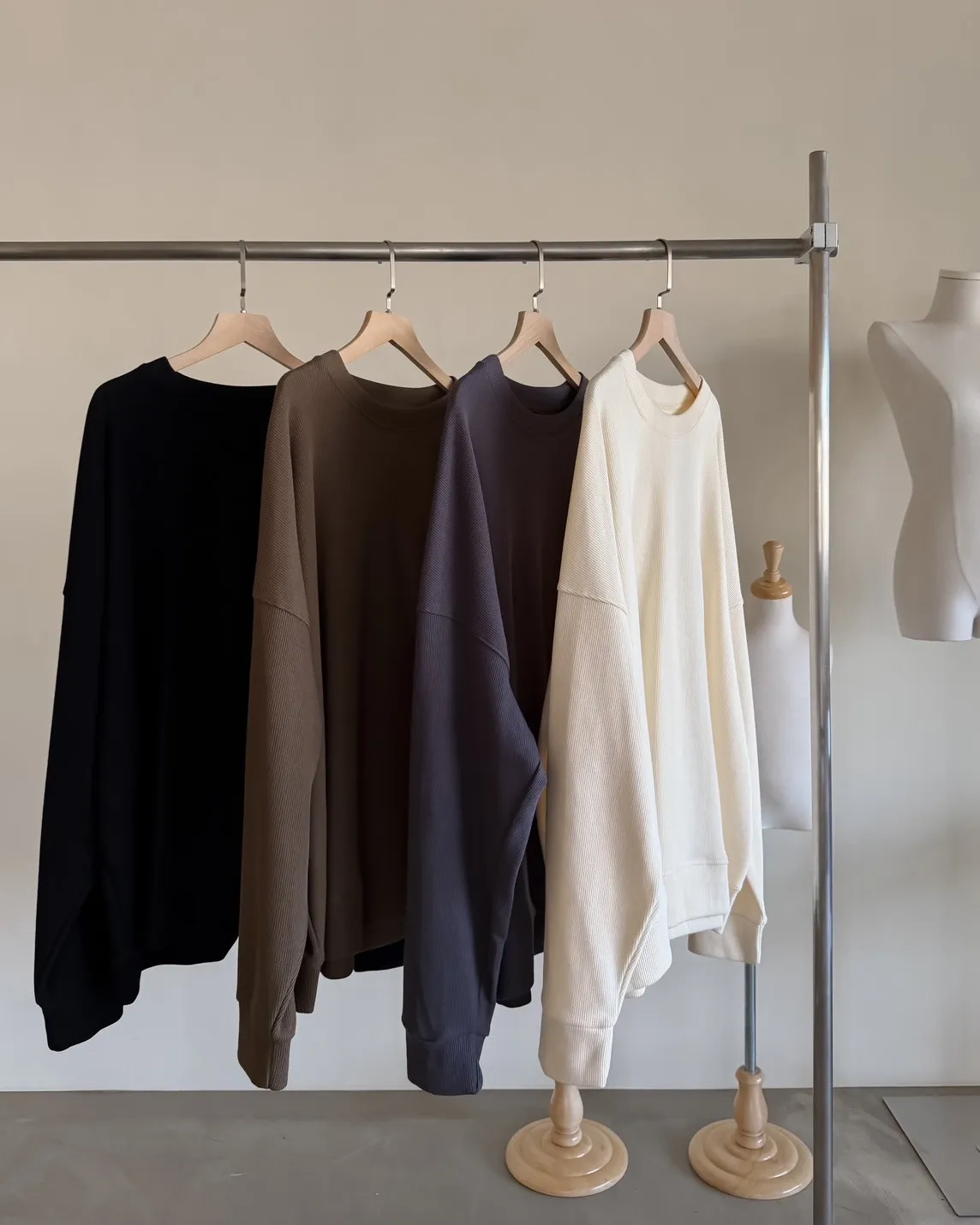 W0052超大件落肩坑紋上衣(米/咖啡/深灰/黑)