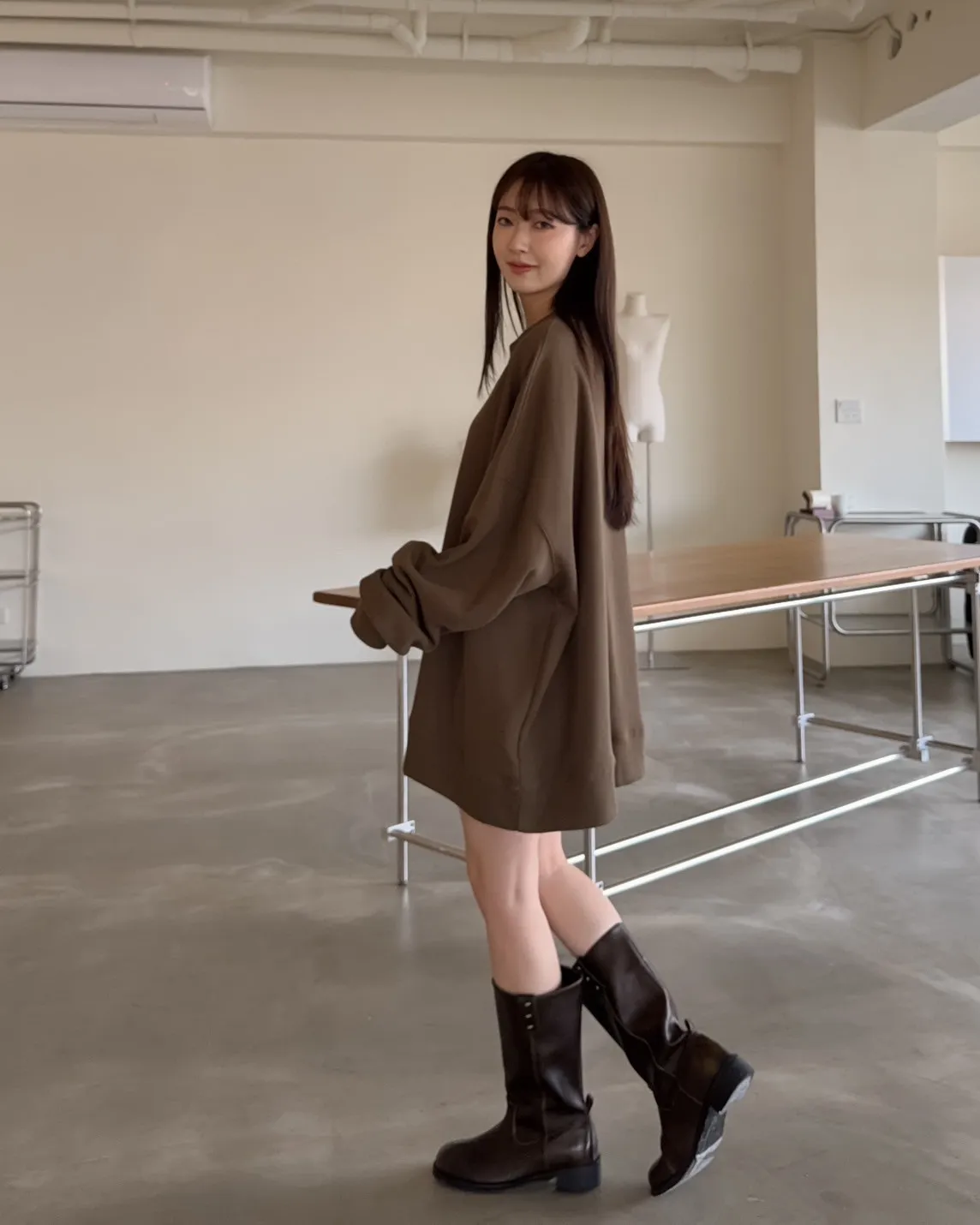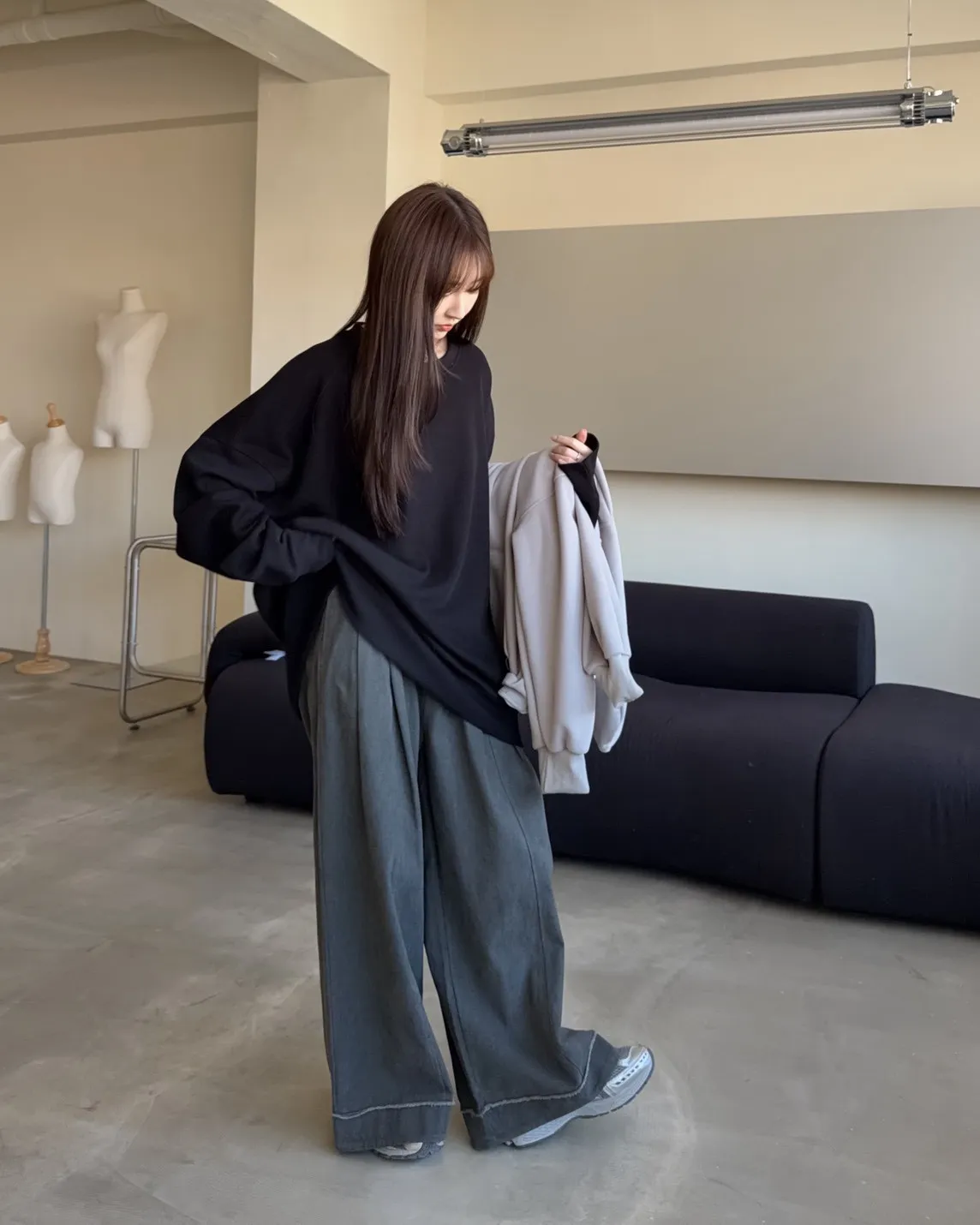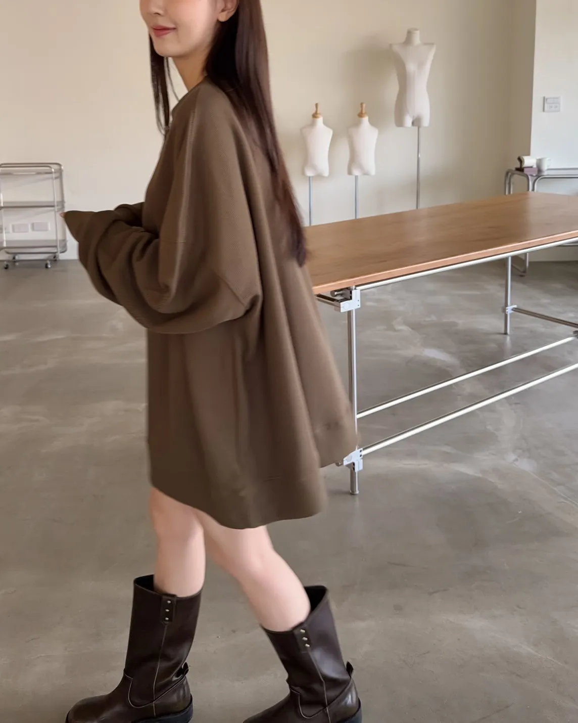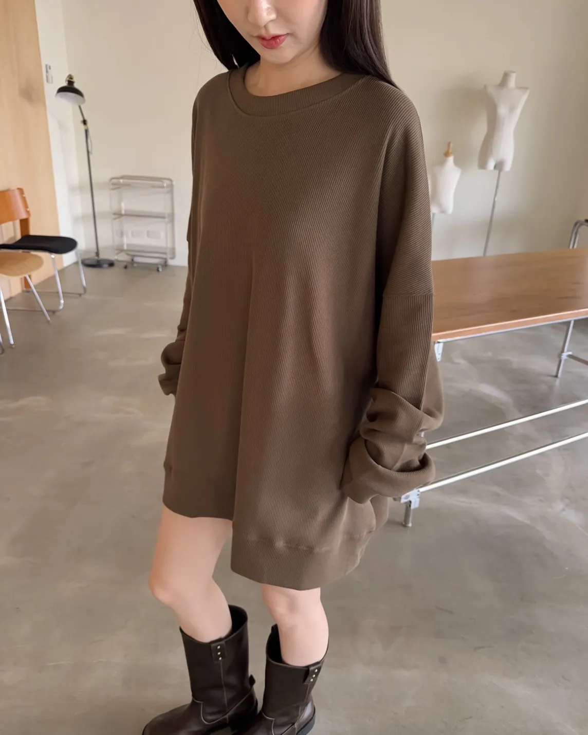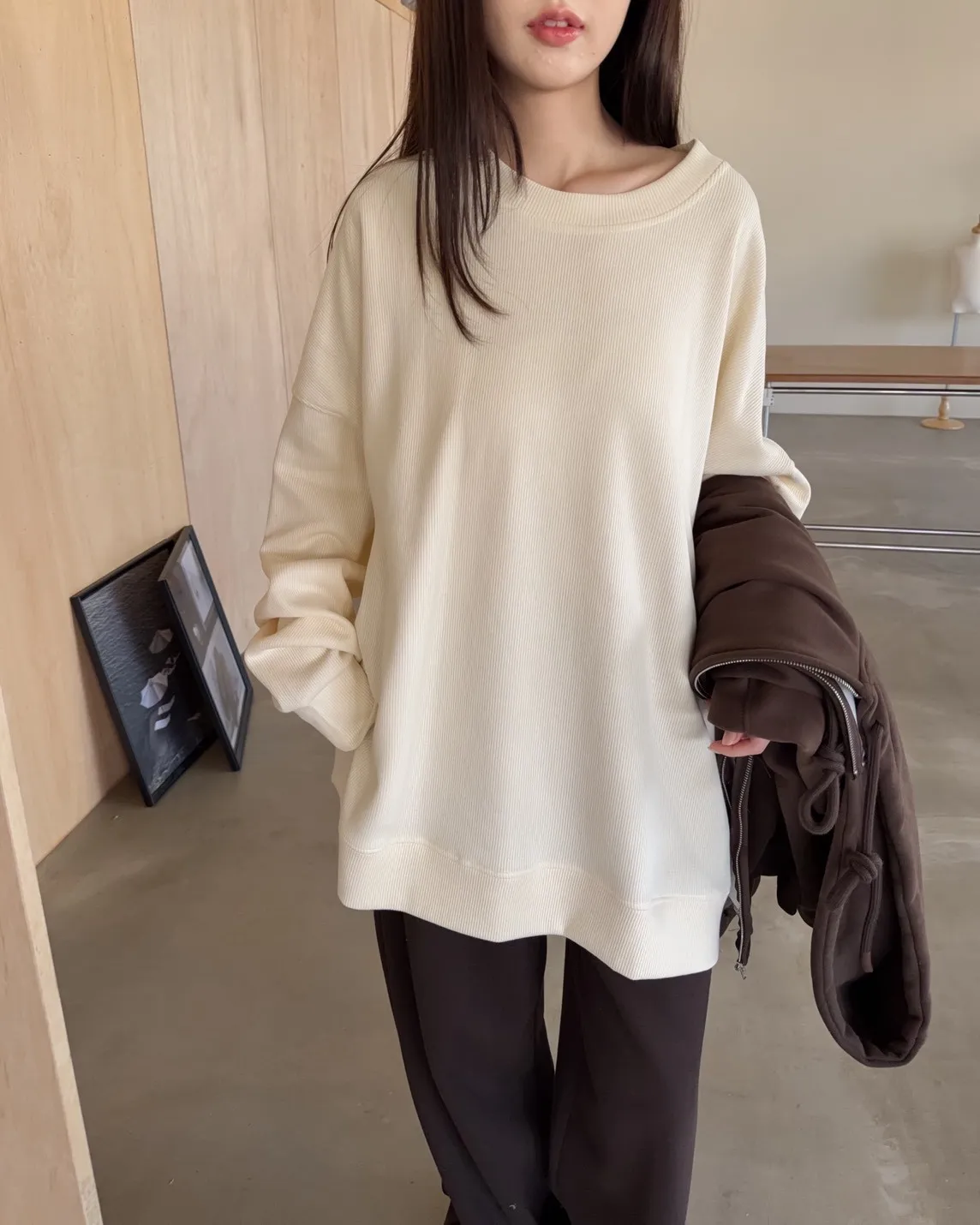 W0052超大件落肩坑紋上衣(米/咖啡/深灰/黑)