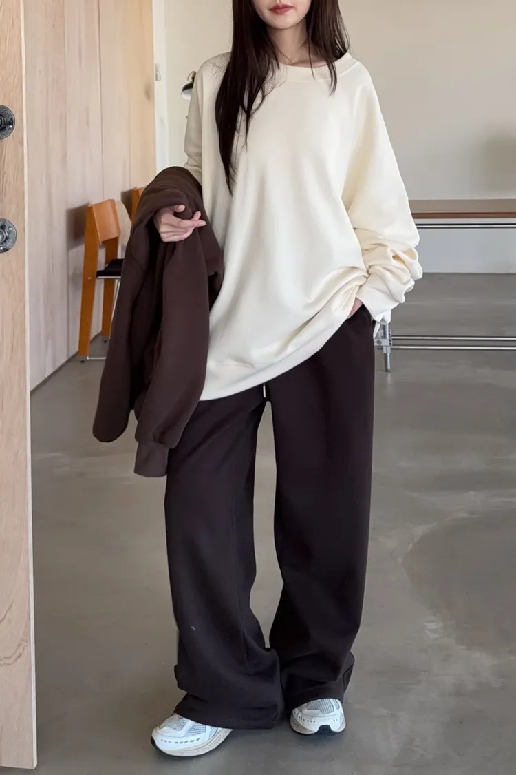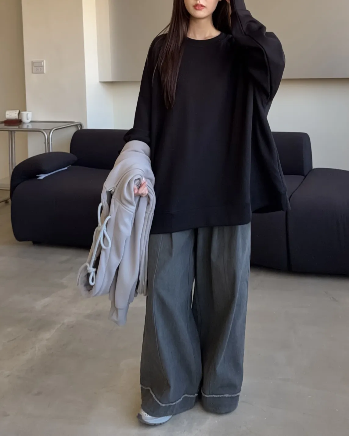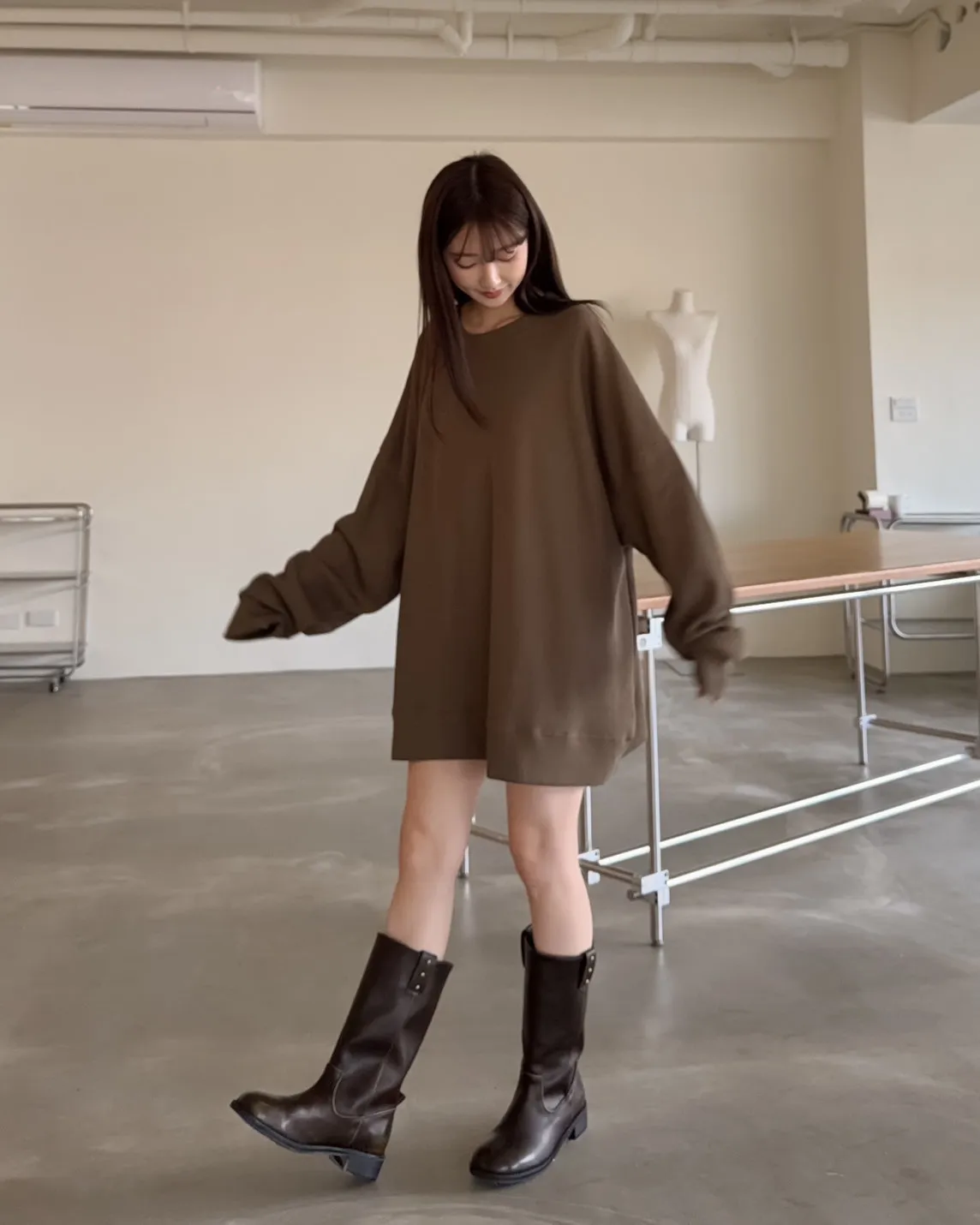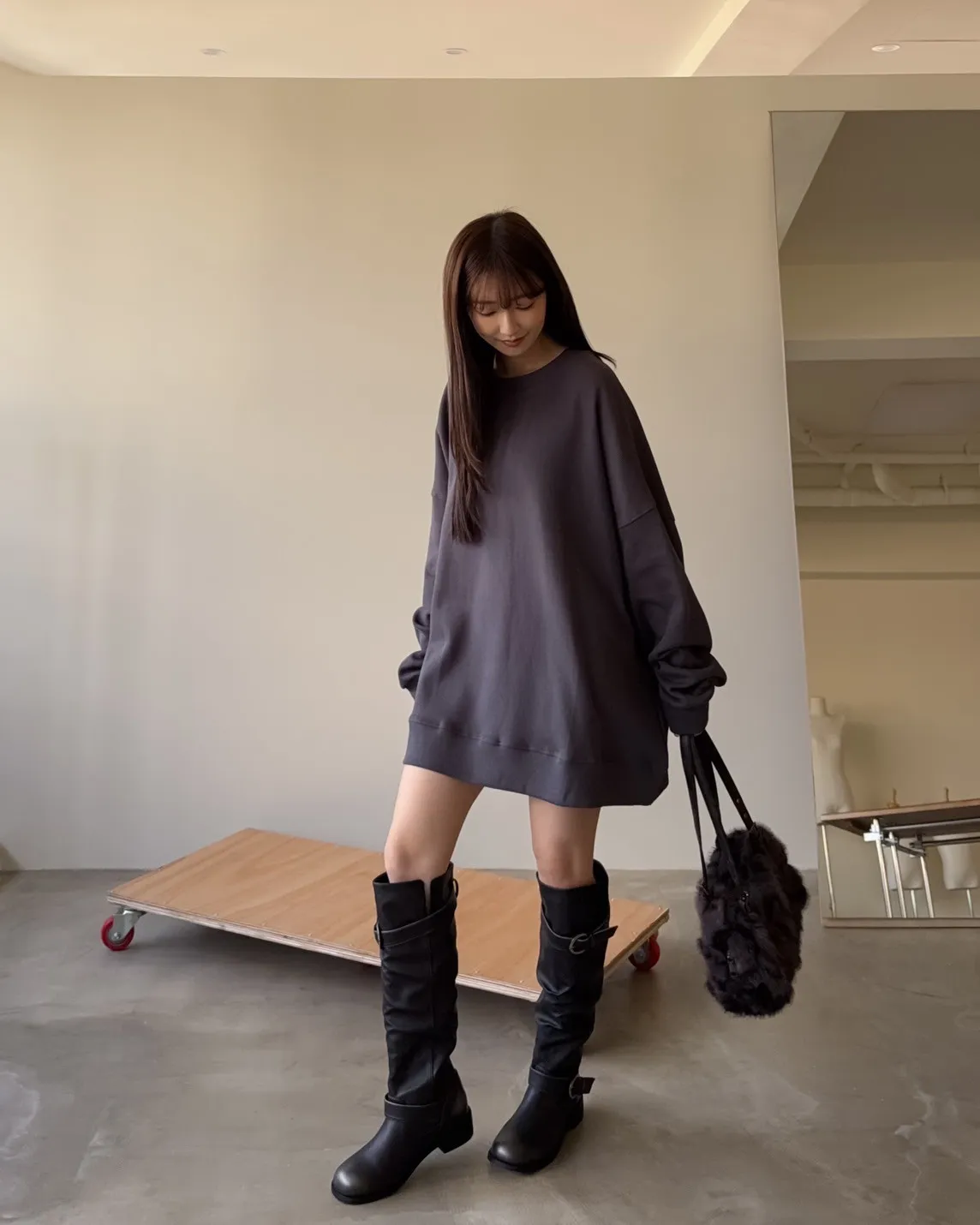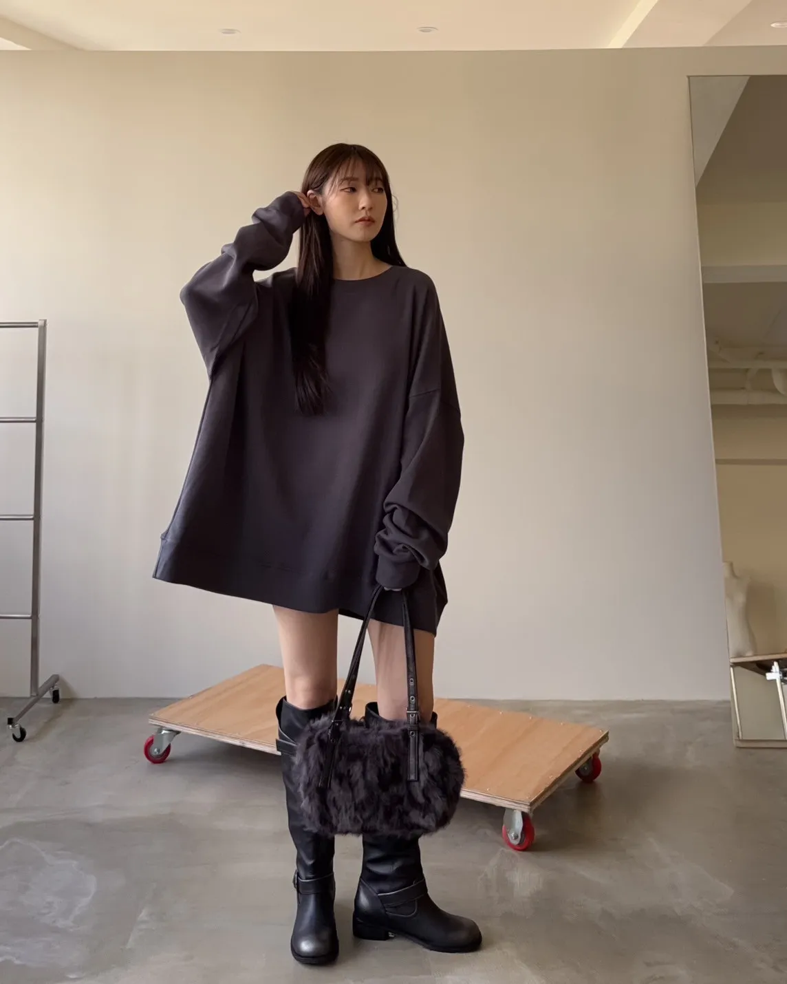 W0052超大件落肩坑紋上衣(米/咖啡/深灰/黑)
