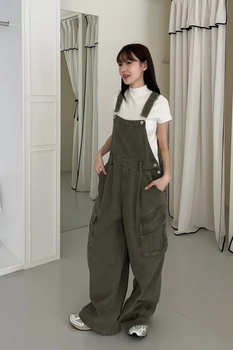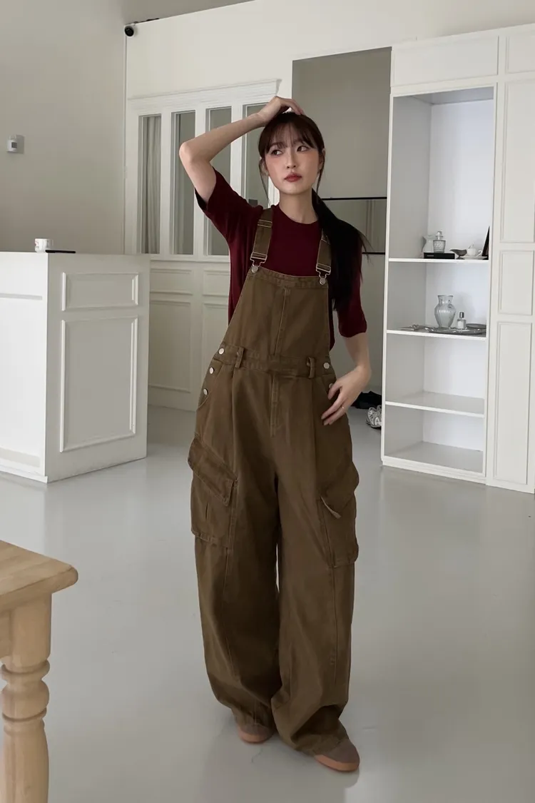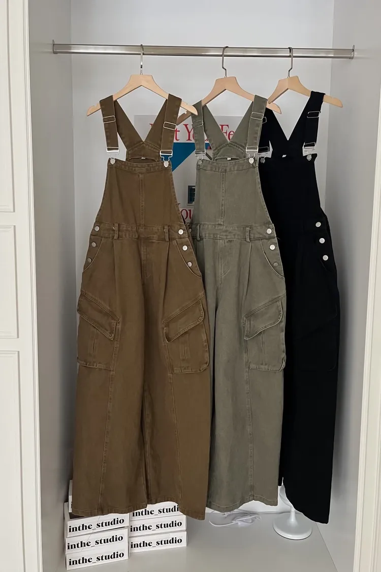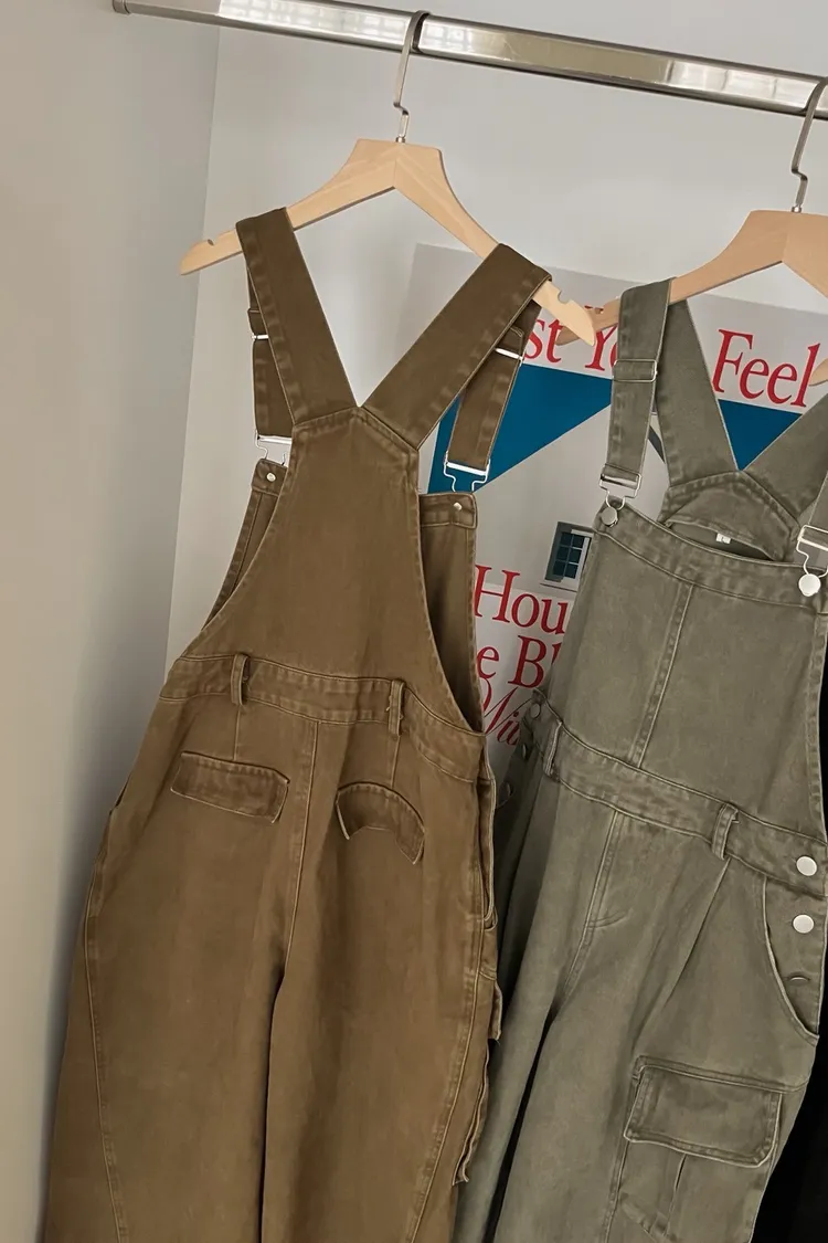 V0016油漆匠復古繭型吊帶褲(咖啡/灰綠/黑)(售完不補)