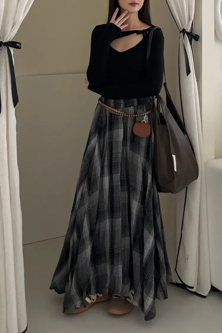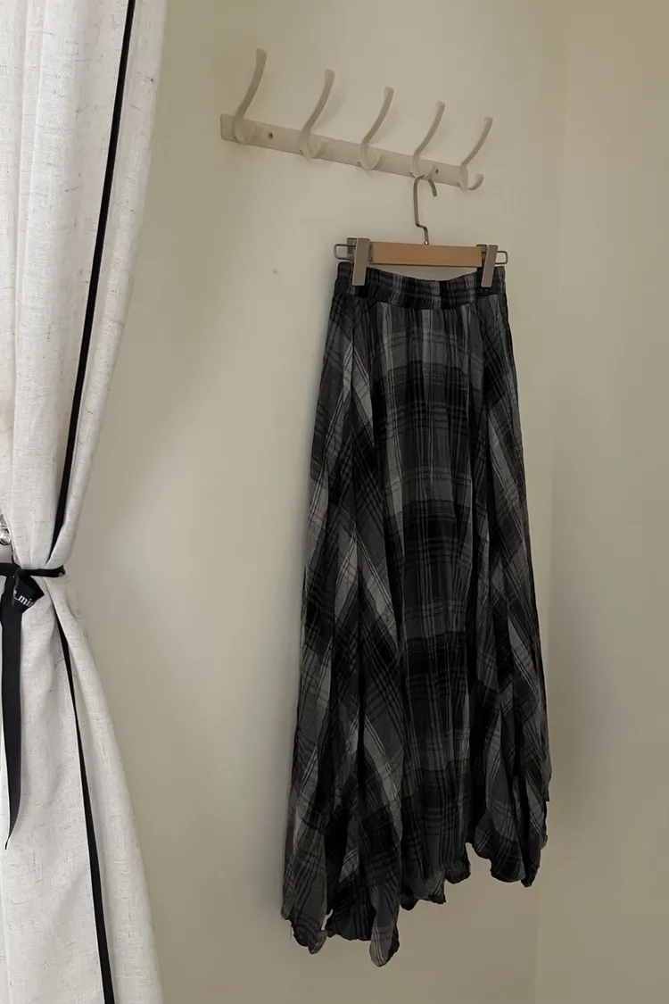 全鬆緊 建議尺寸S-XL 兩側口袋 有內裡 下擺不規則 格紋
