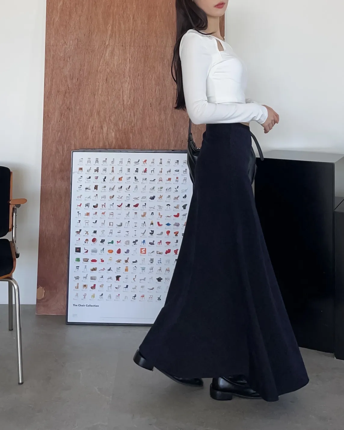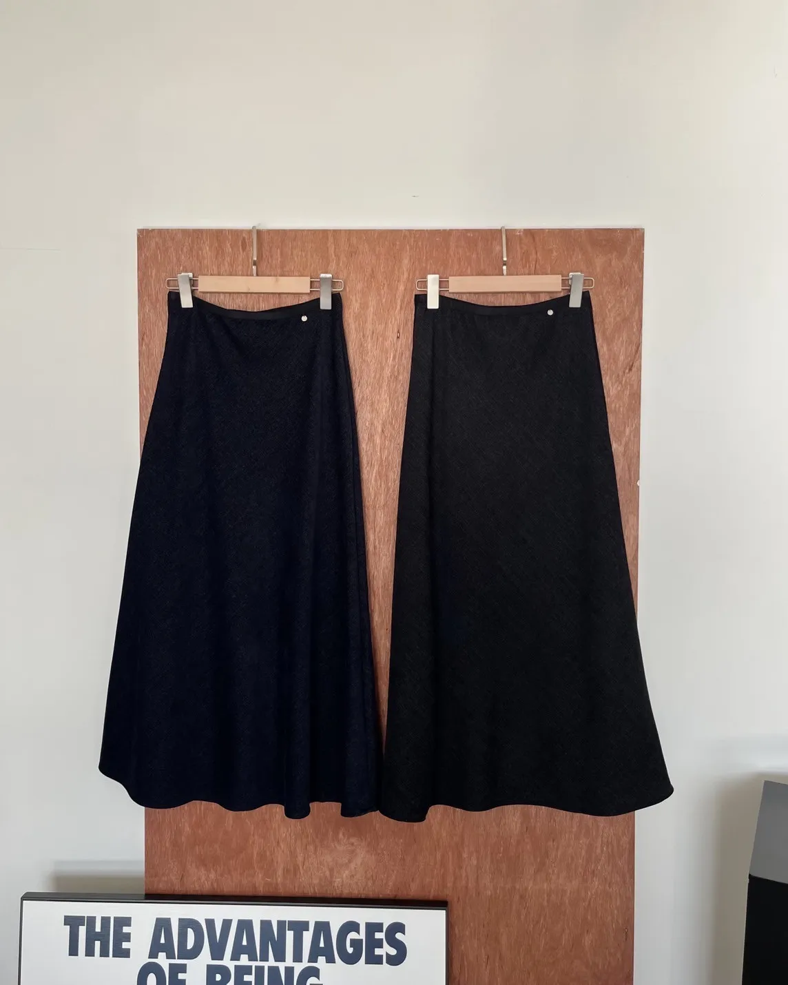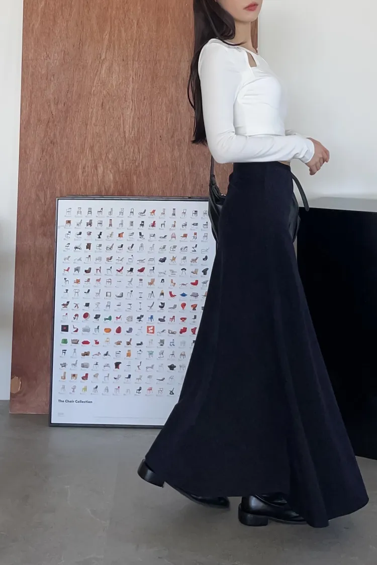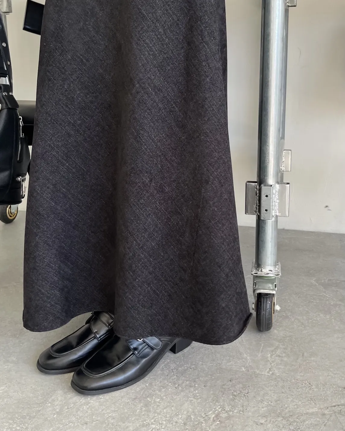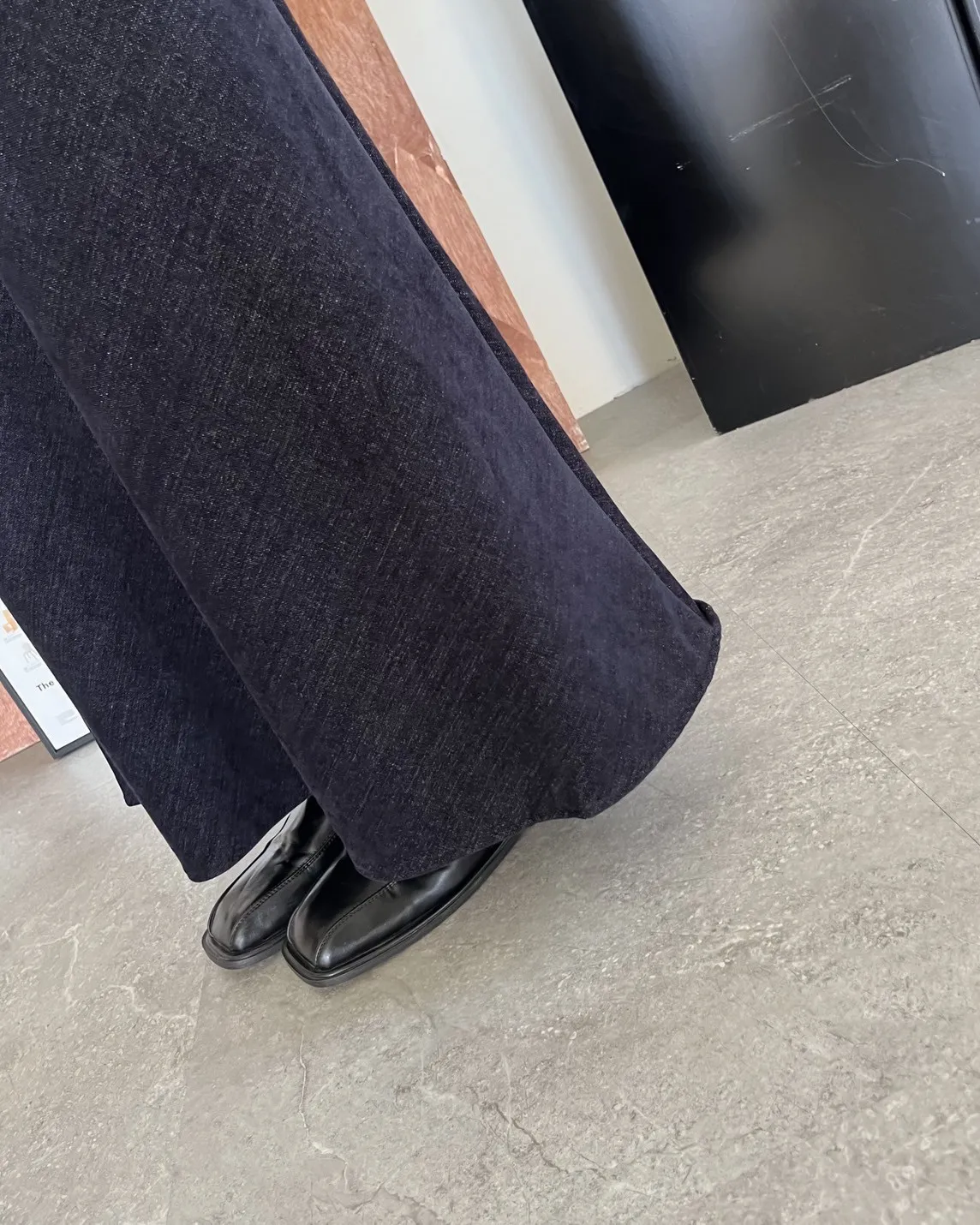 U0064小鐵標刷色磨毛寬魚尾裙(深藍/黑)