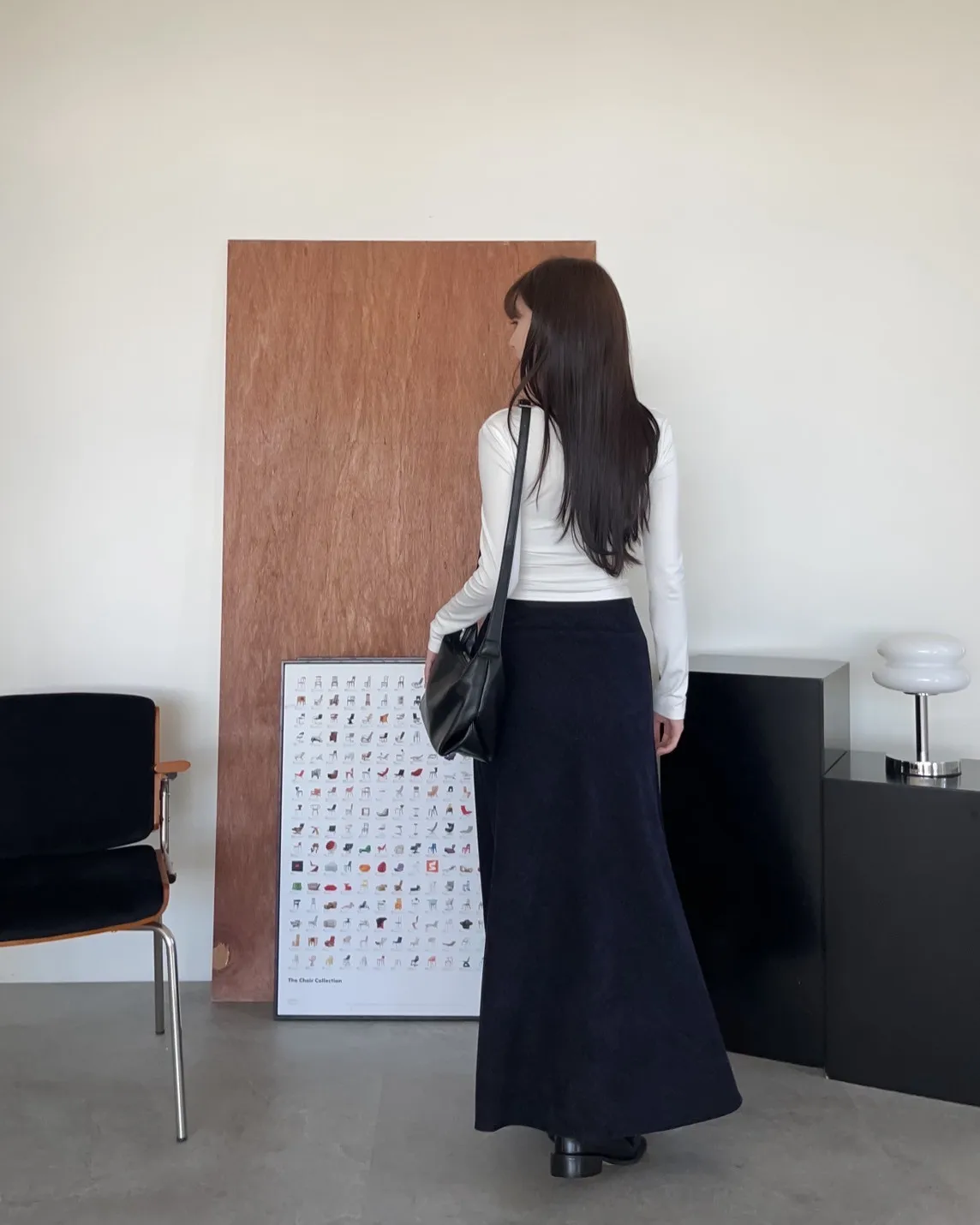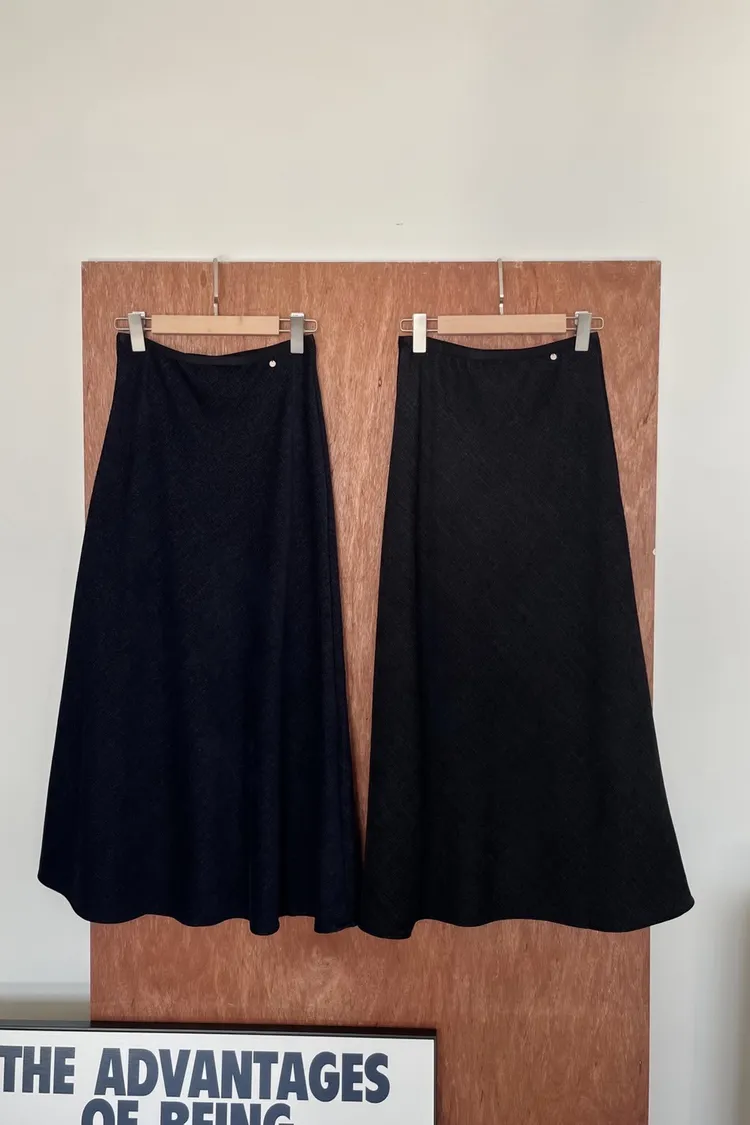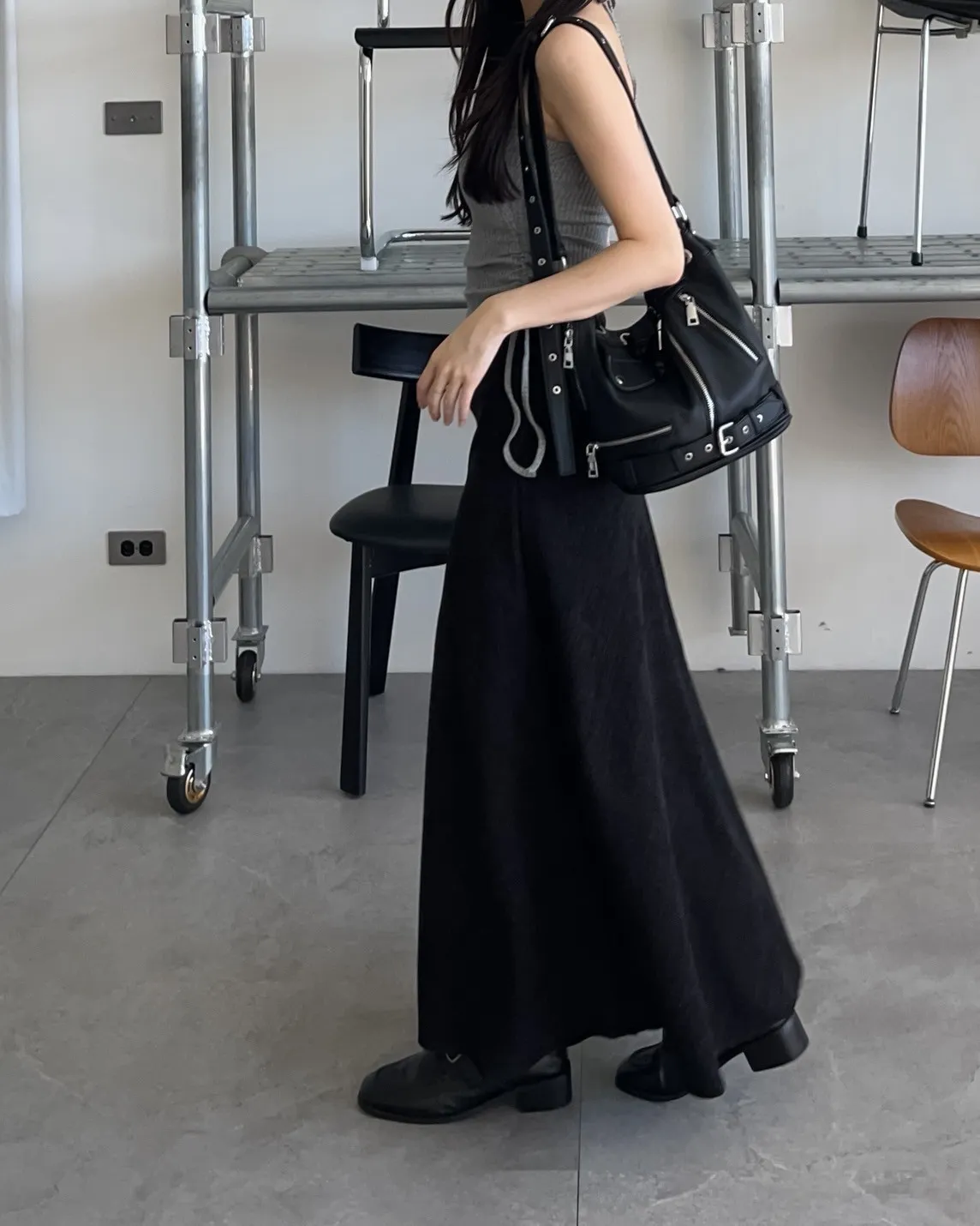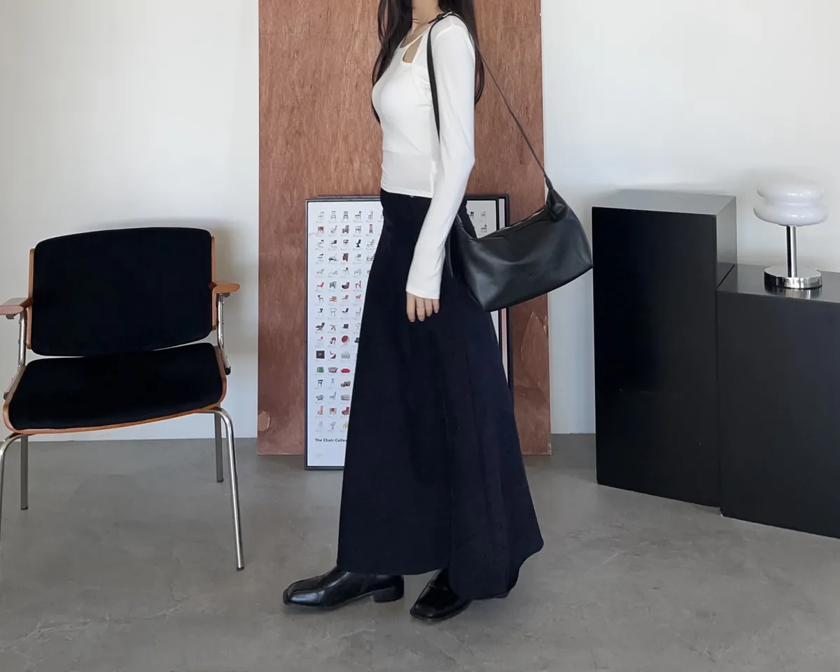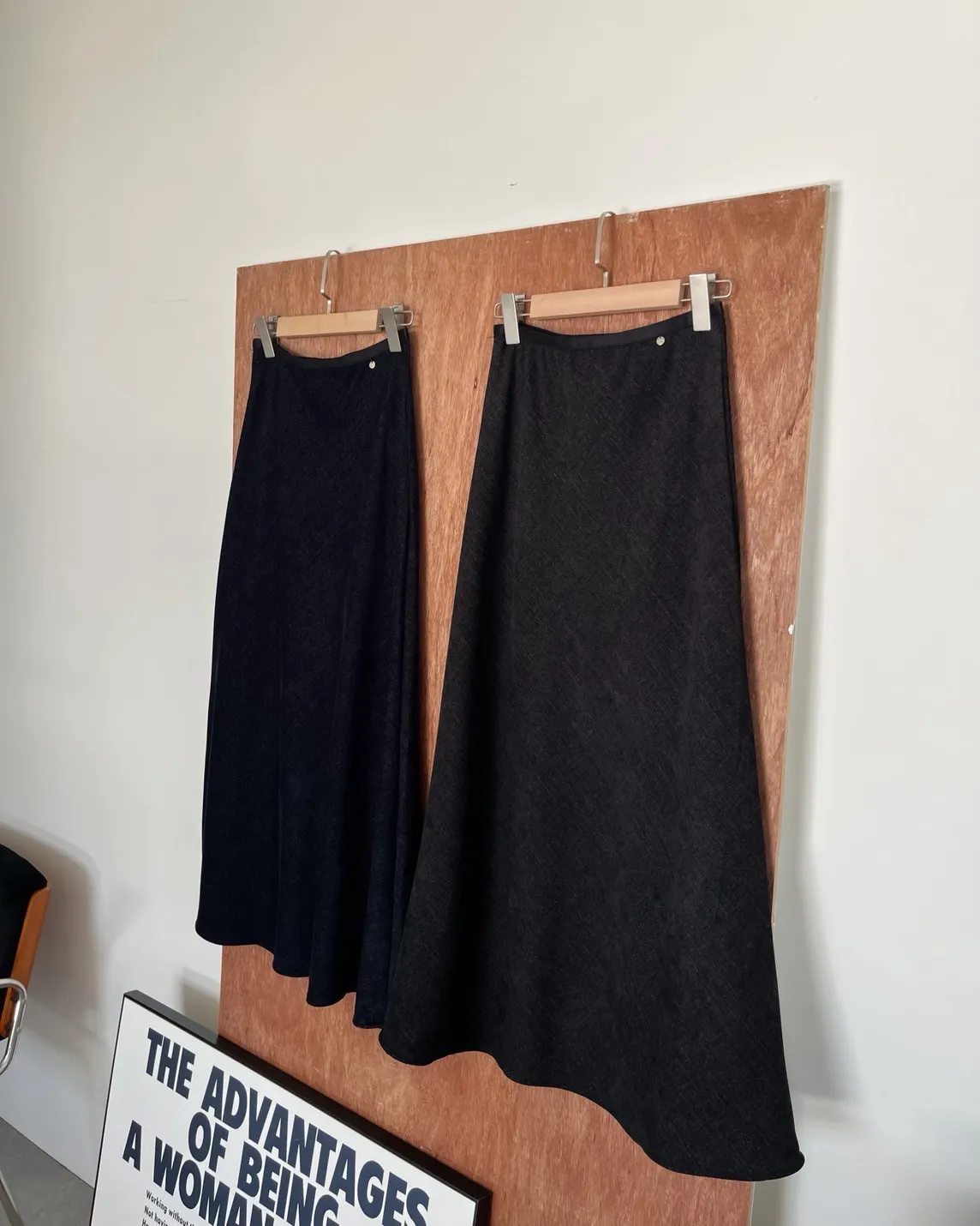 U0064小鐵標刷色磨毛寬魚尾裙(深藍/黑)