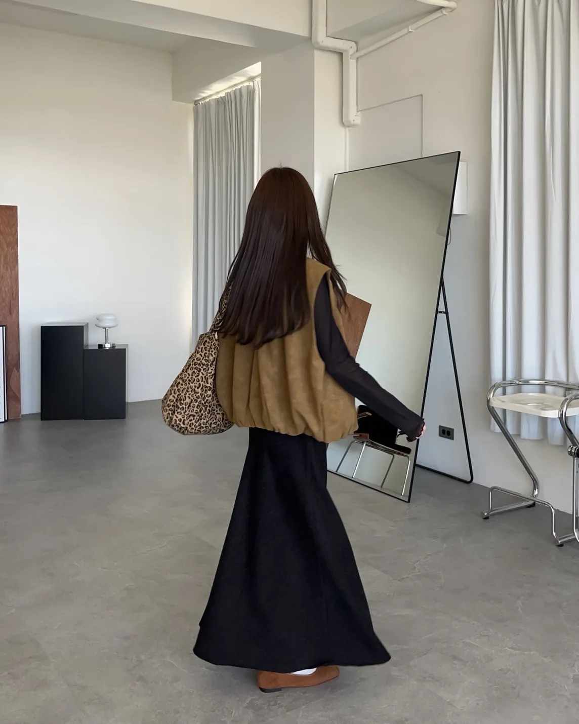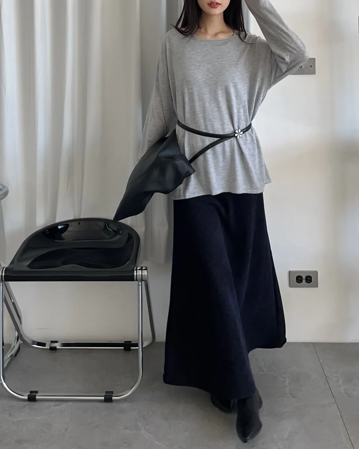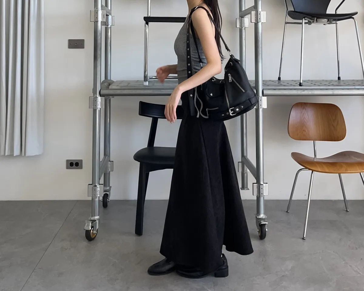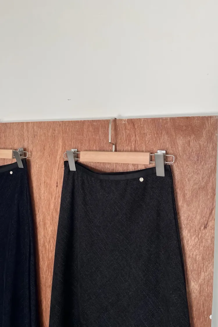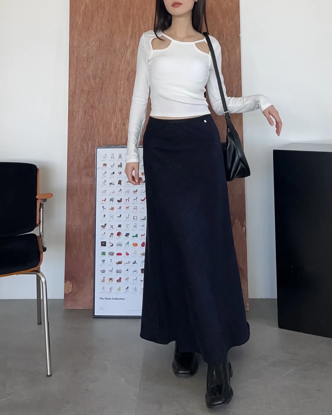 U0064小鐵標刷色磨毛寬魚尾裙(深藍/黑)