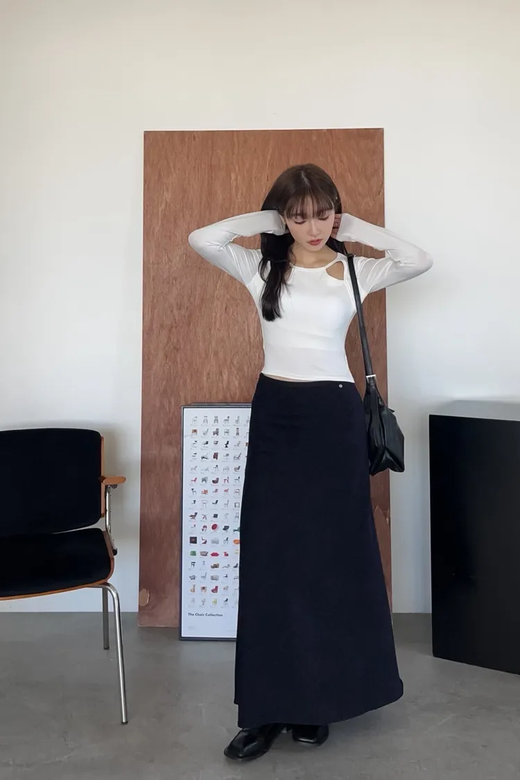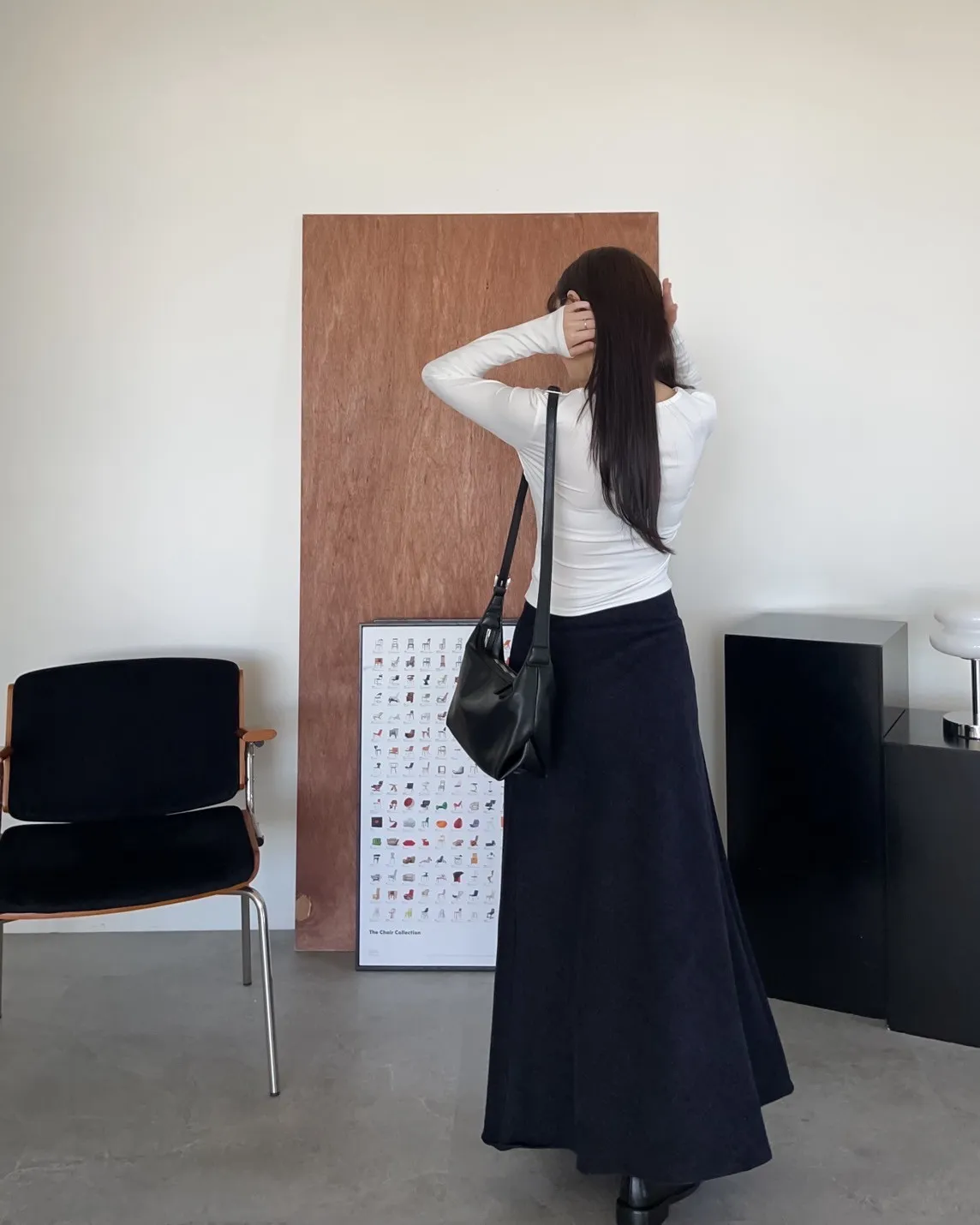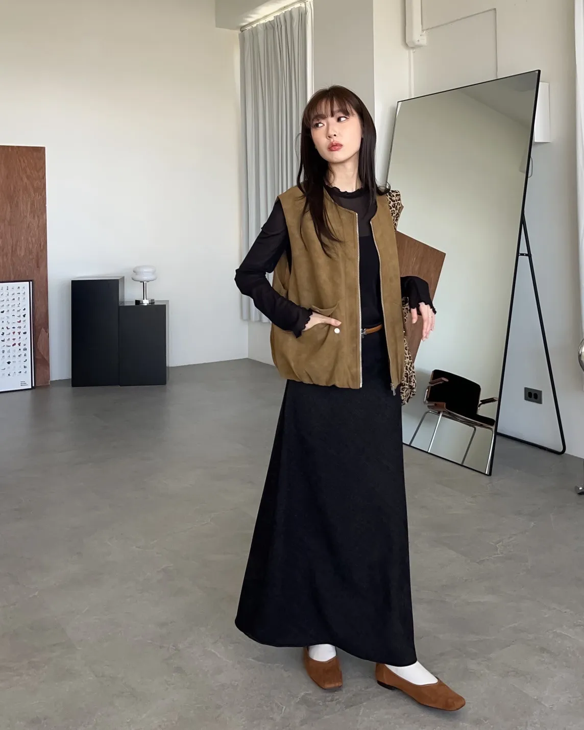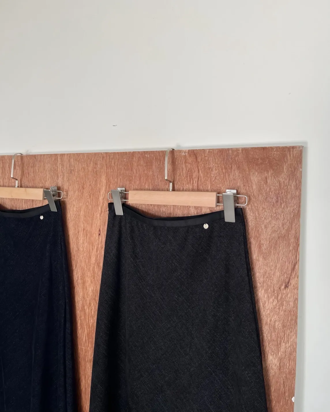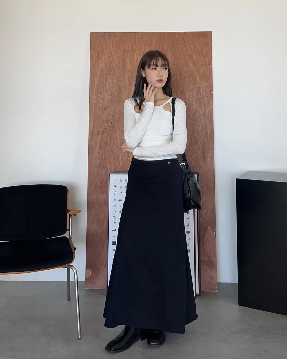 U0064小鐵標刷色磨毛寬魚尾裙(深藍/黑)