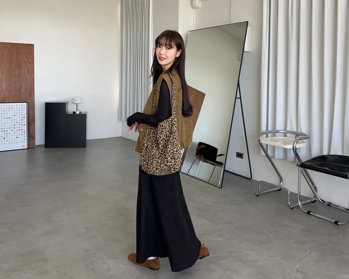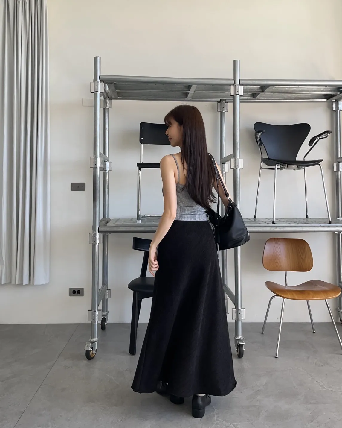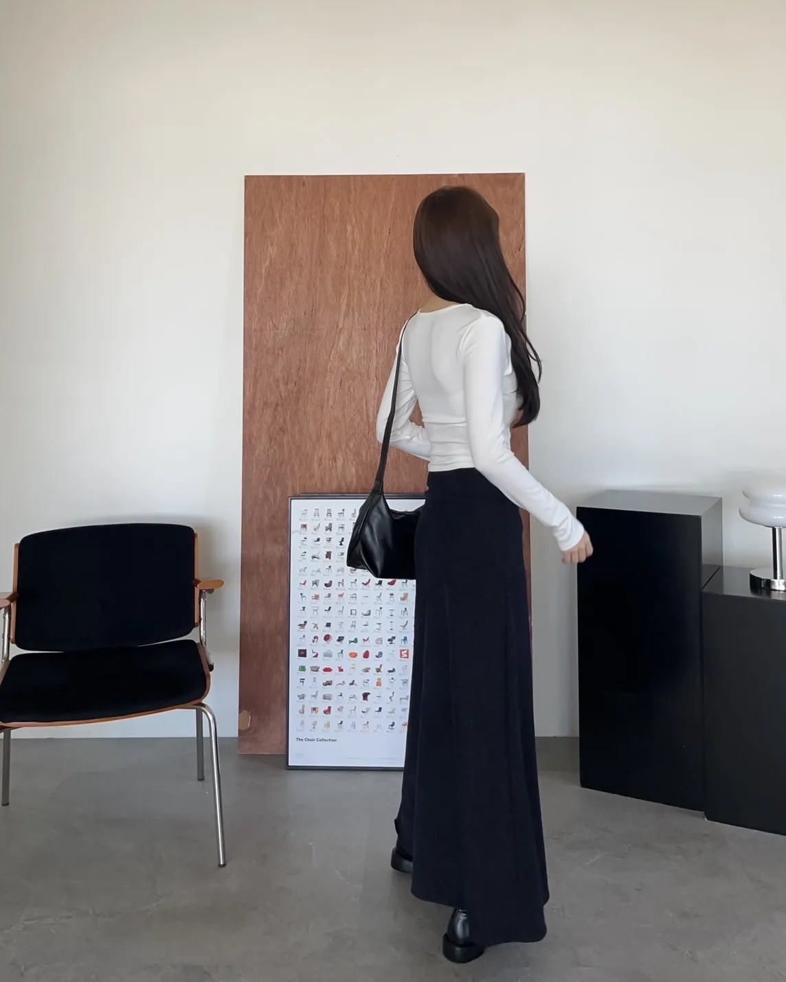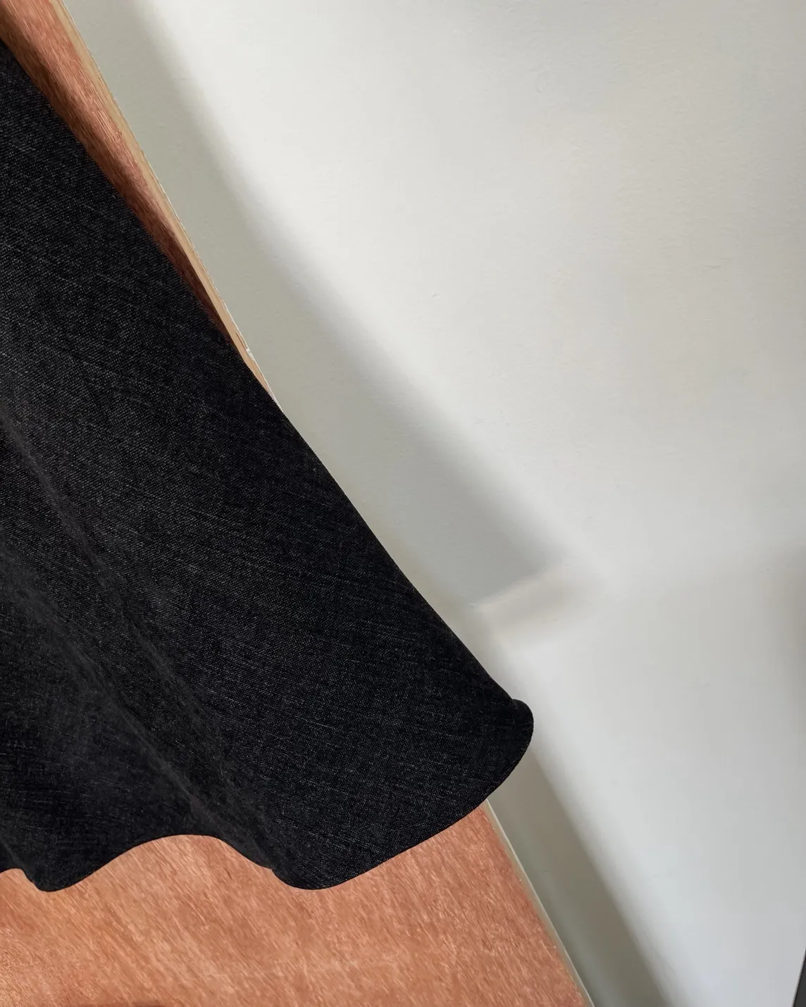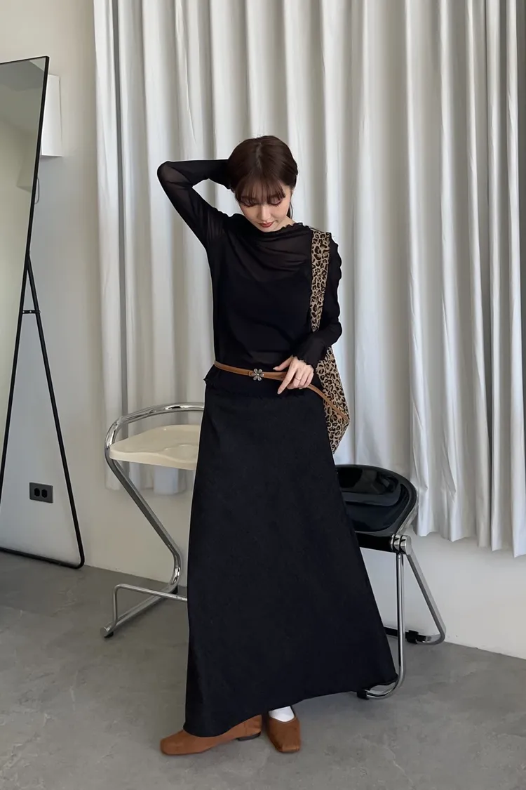 U0064小鐵標刷色磨毛寬魚尾裙(深藍/黑)