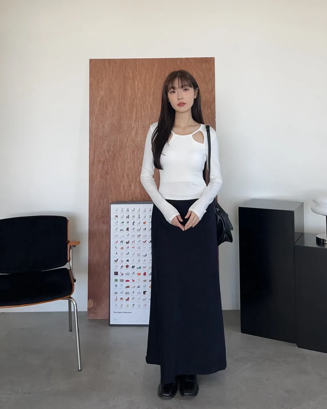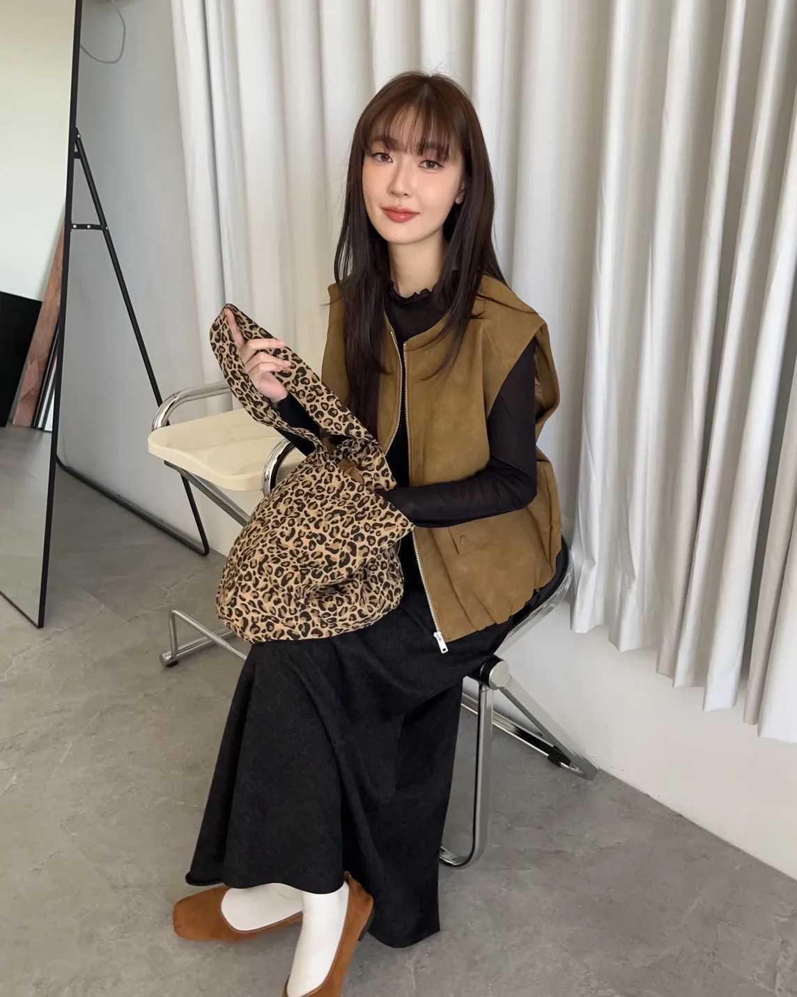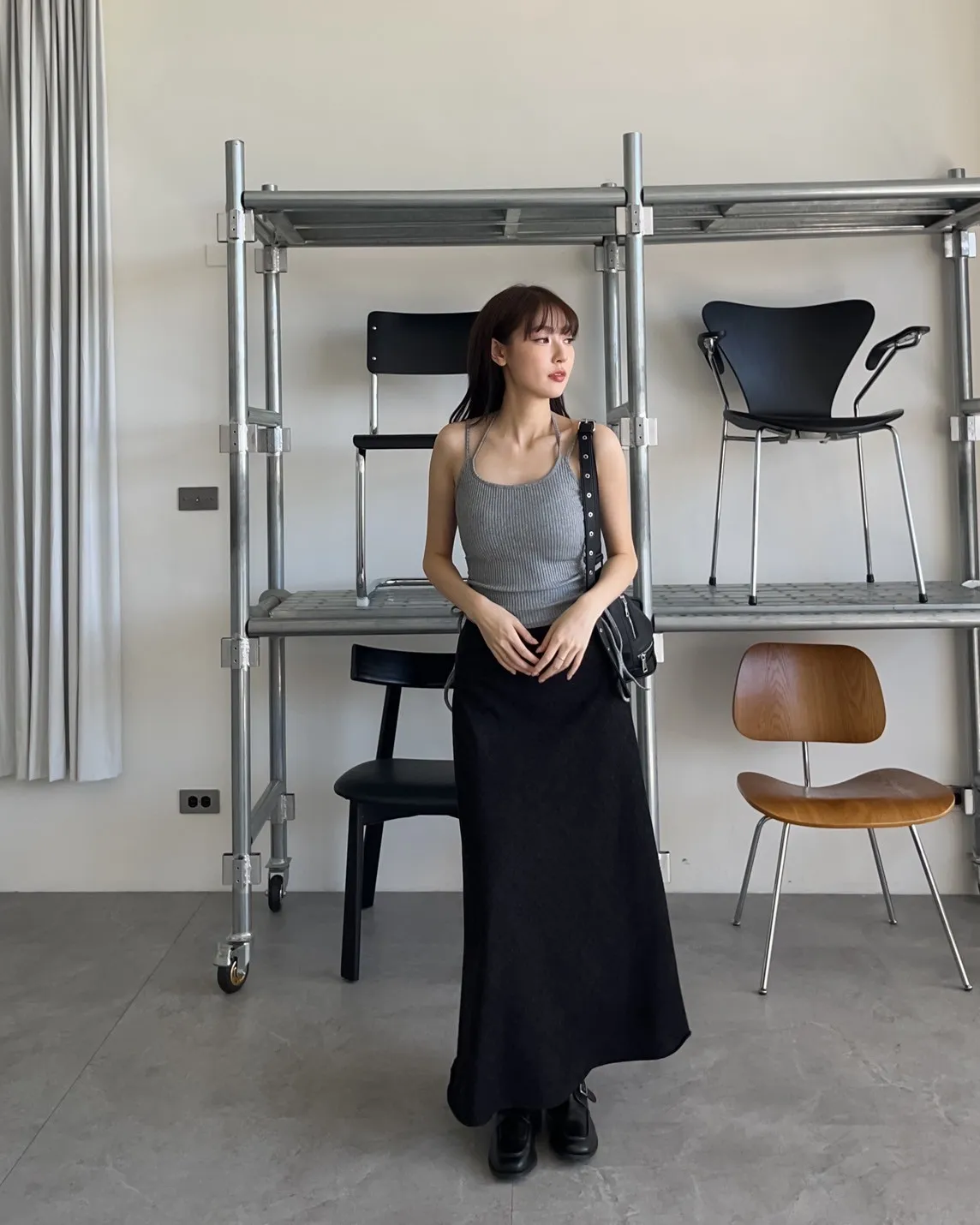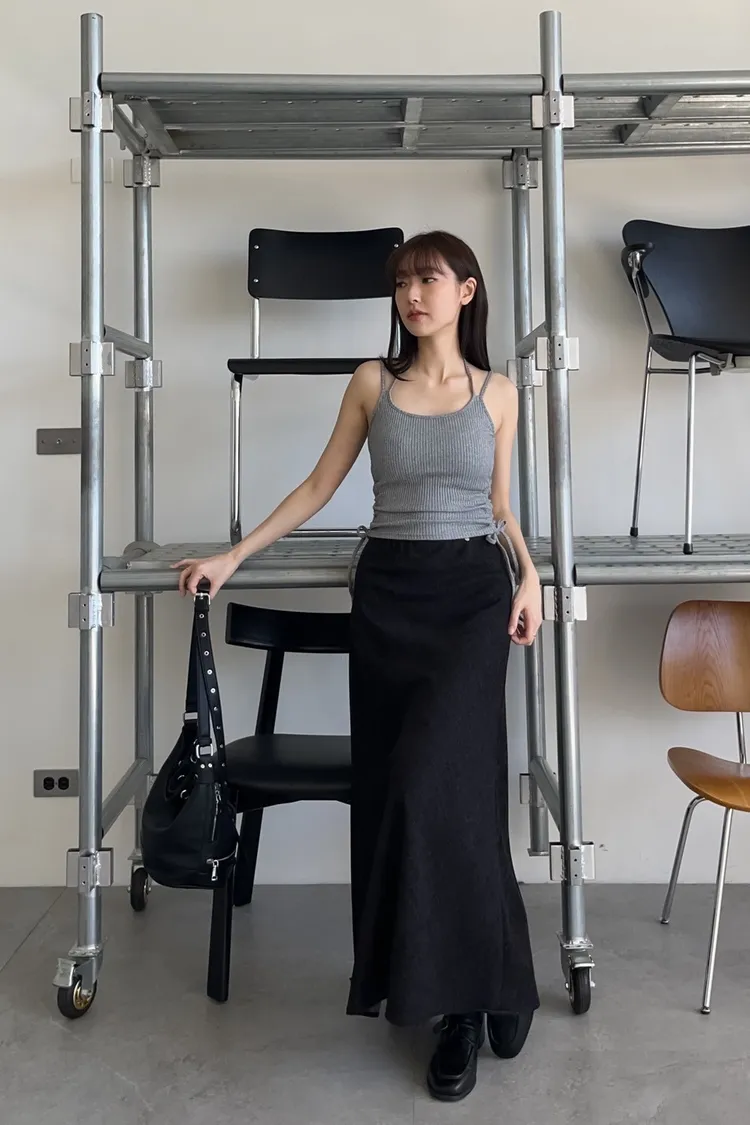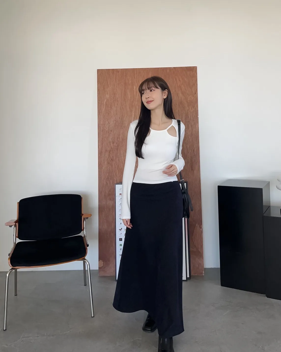 U0064小鐵標刷色磨毛寬魚尾裙(深藍/黑)