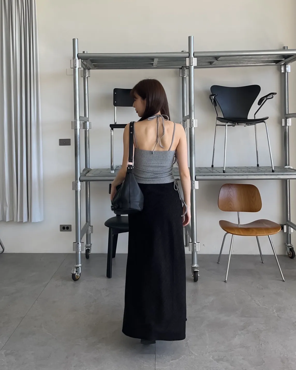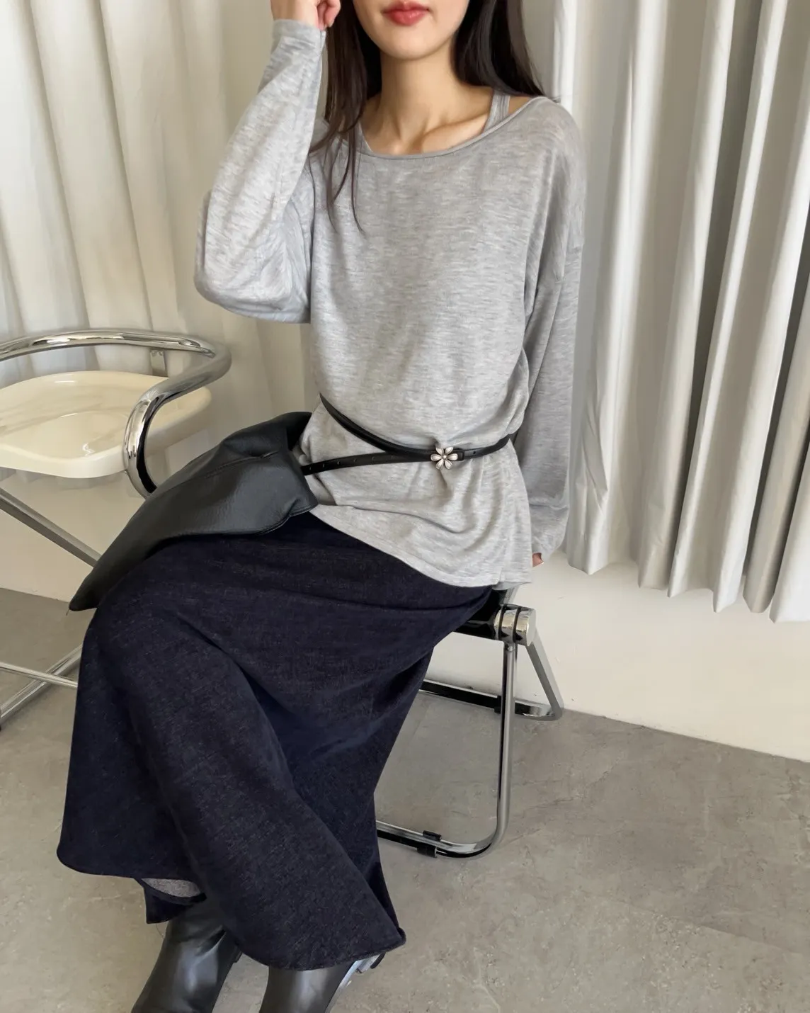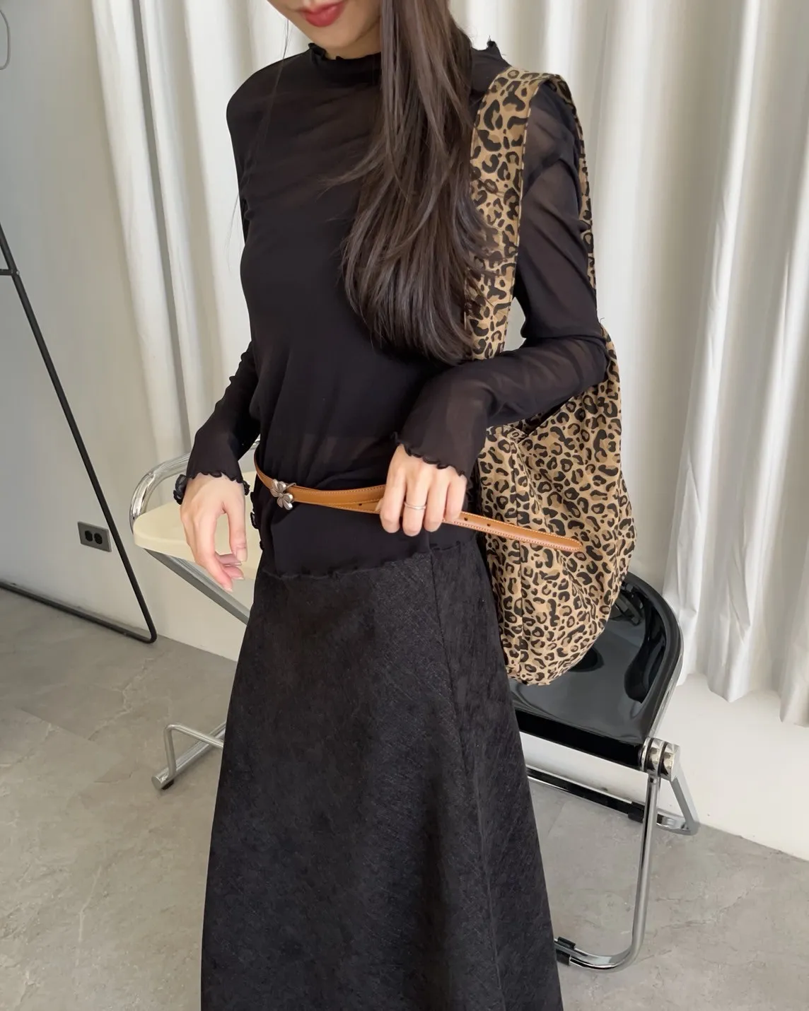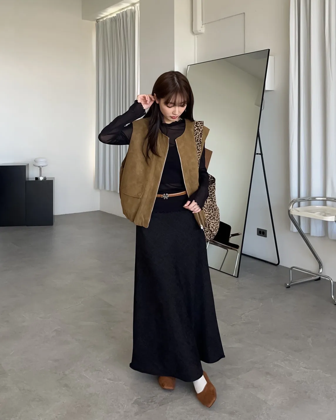 U0064小鐵標刷色磨毛寬魚尾裙(深藍/黑)