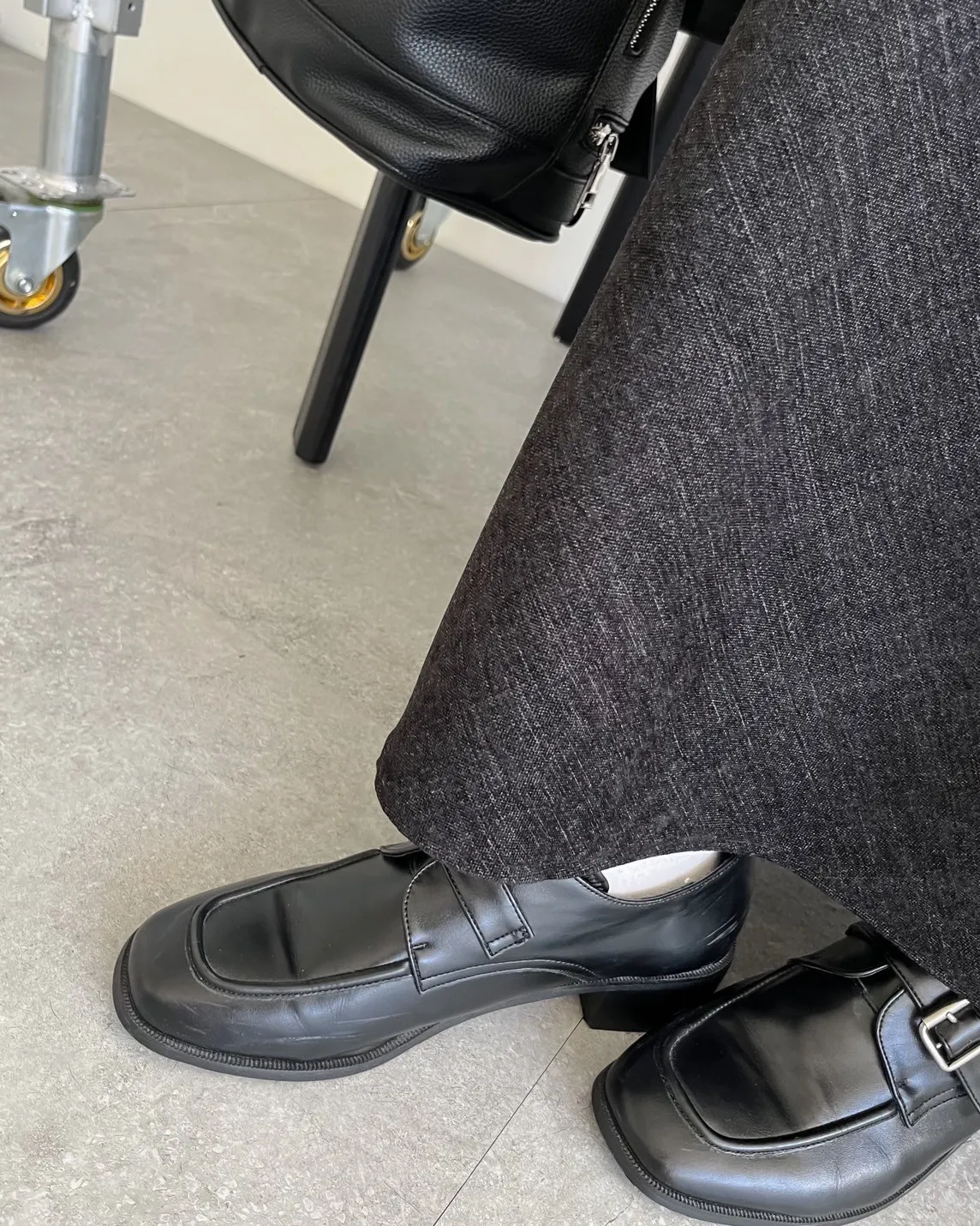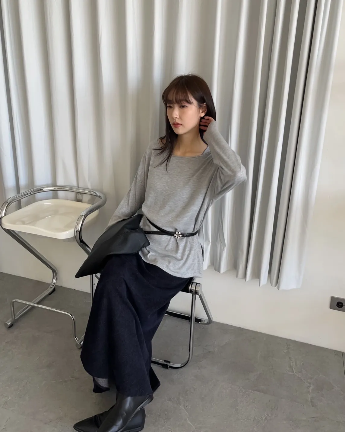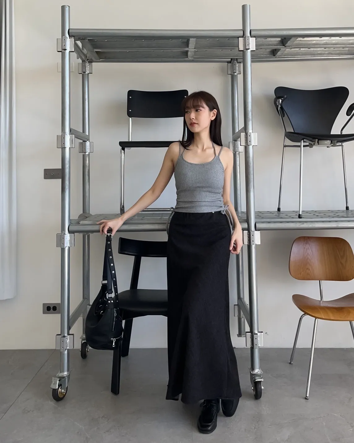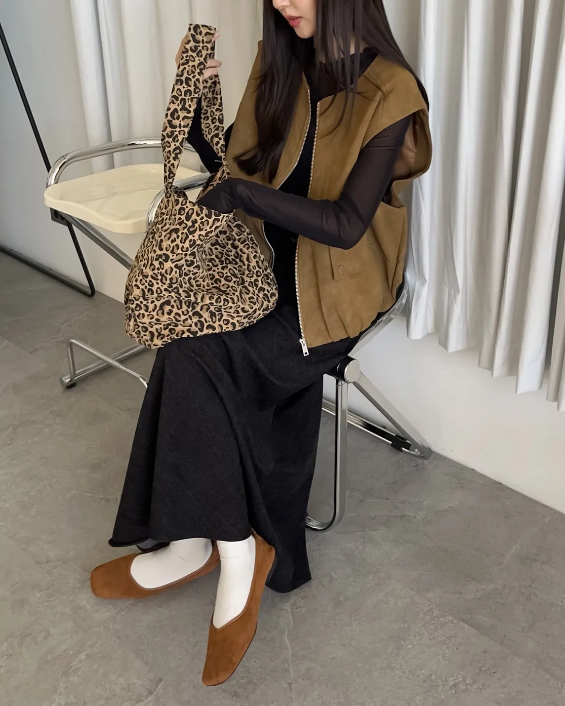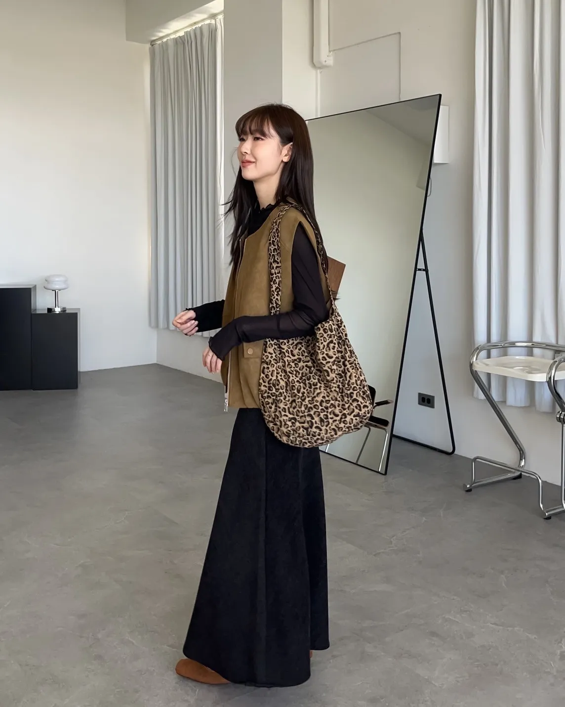 U0064小鐵標刷色磨毛寬魚尾裙(深藍/黑)