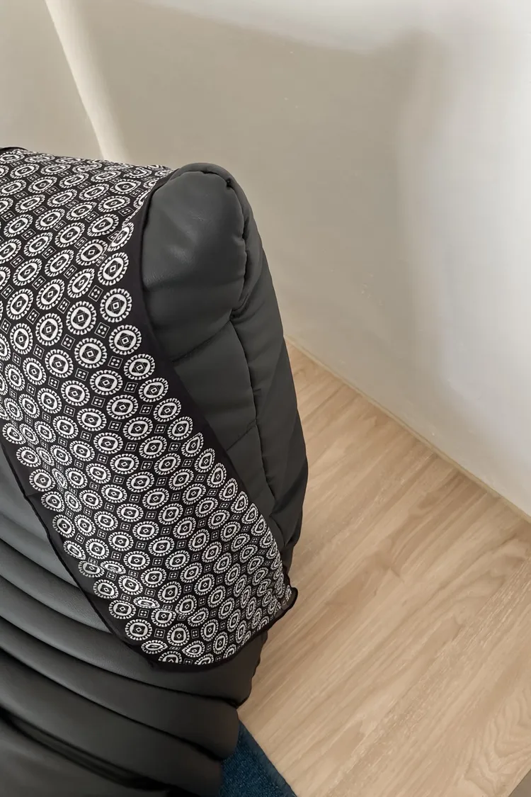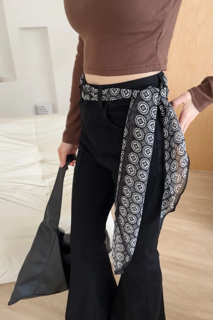 長方斜切角 黑底白色圓形圖騰 增加穿搭層次感!