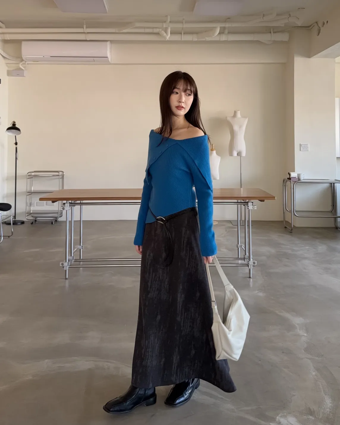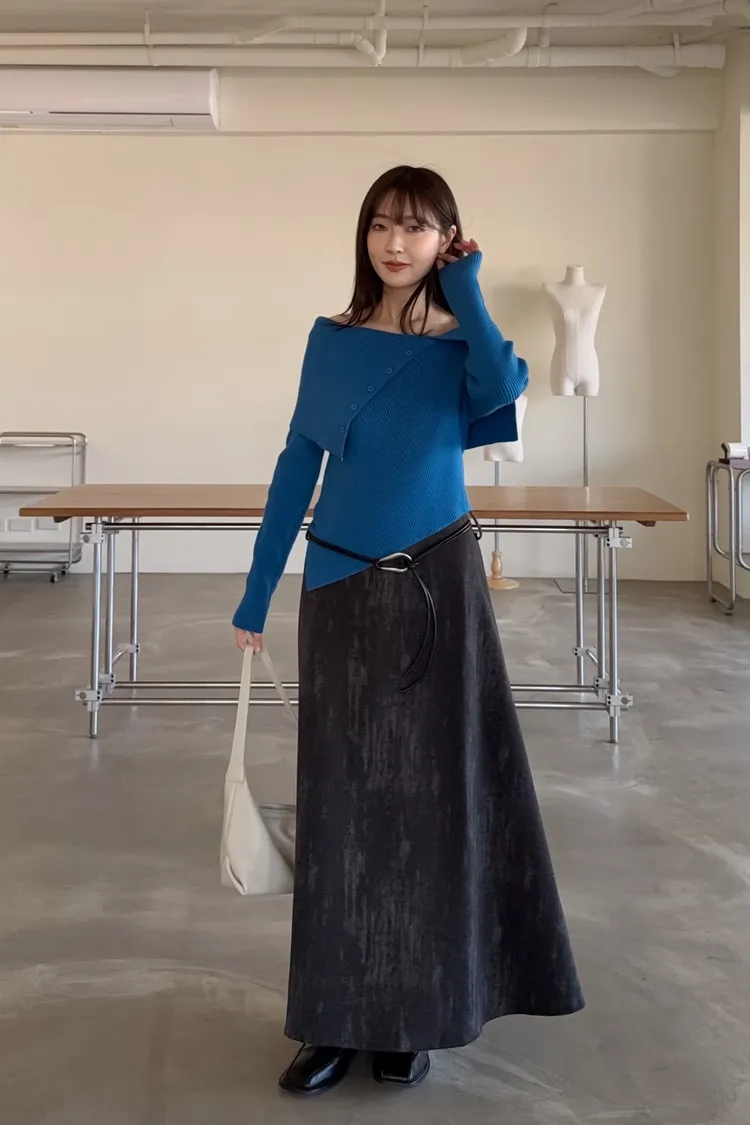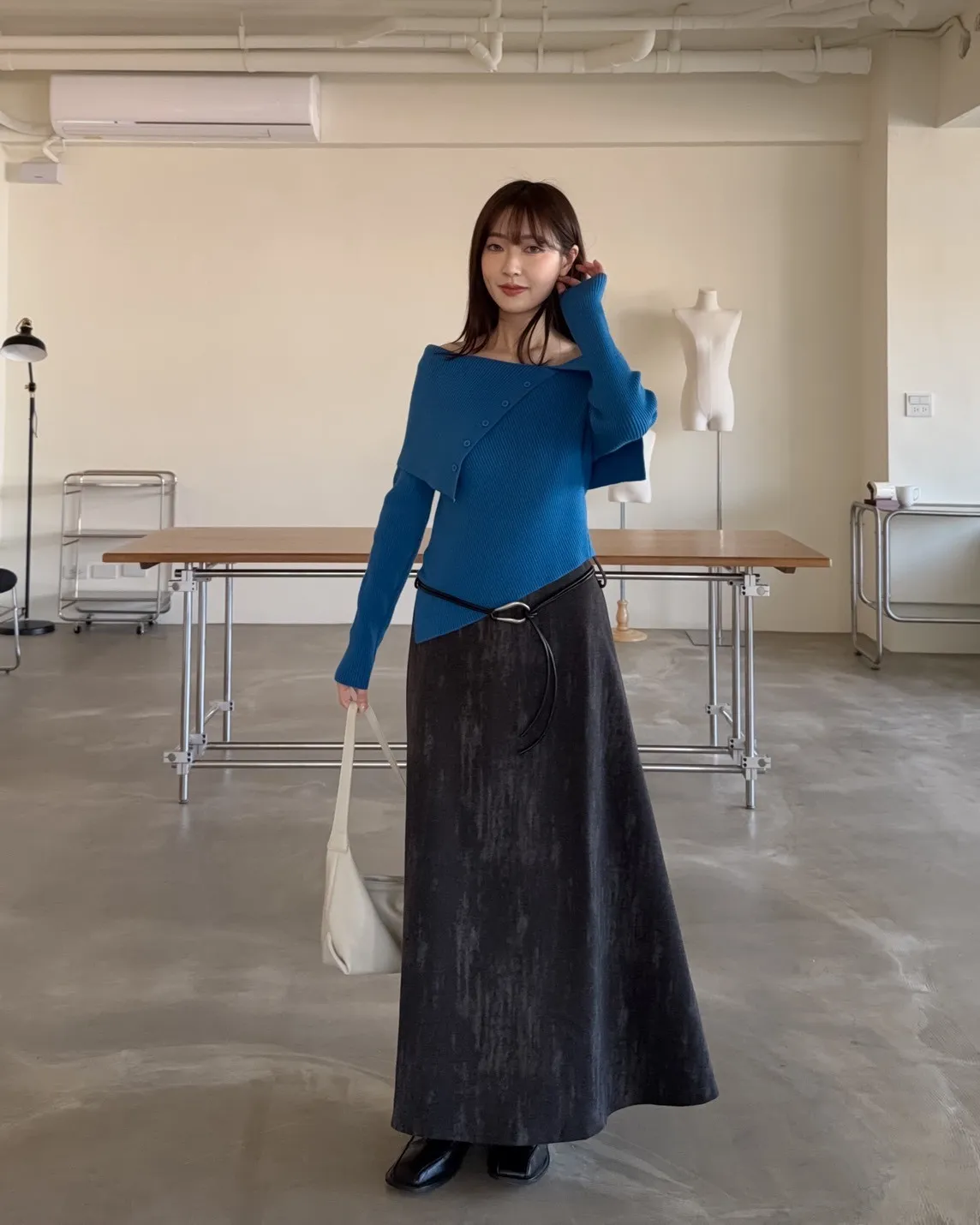 全鬆緊 建議尺寸S-大M 金屬扣環細腰帶 不規則造型扣環 渲染 毛呢 微彈性