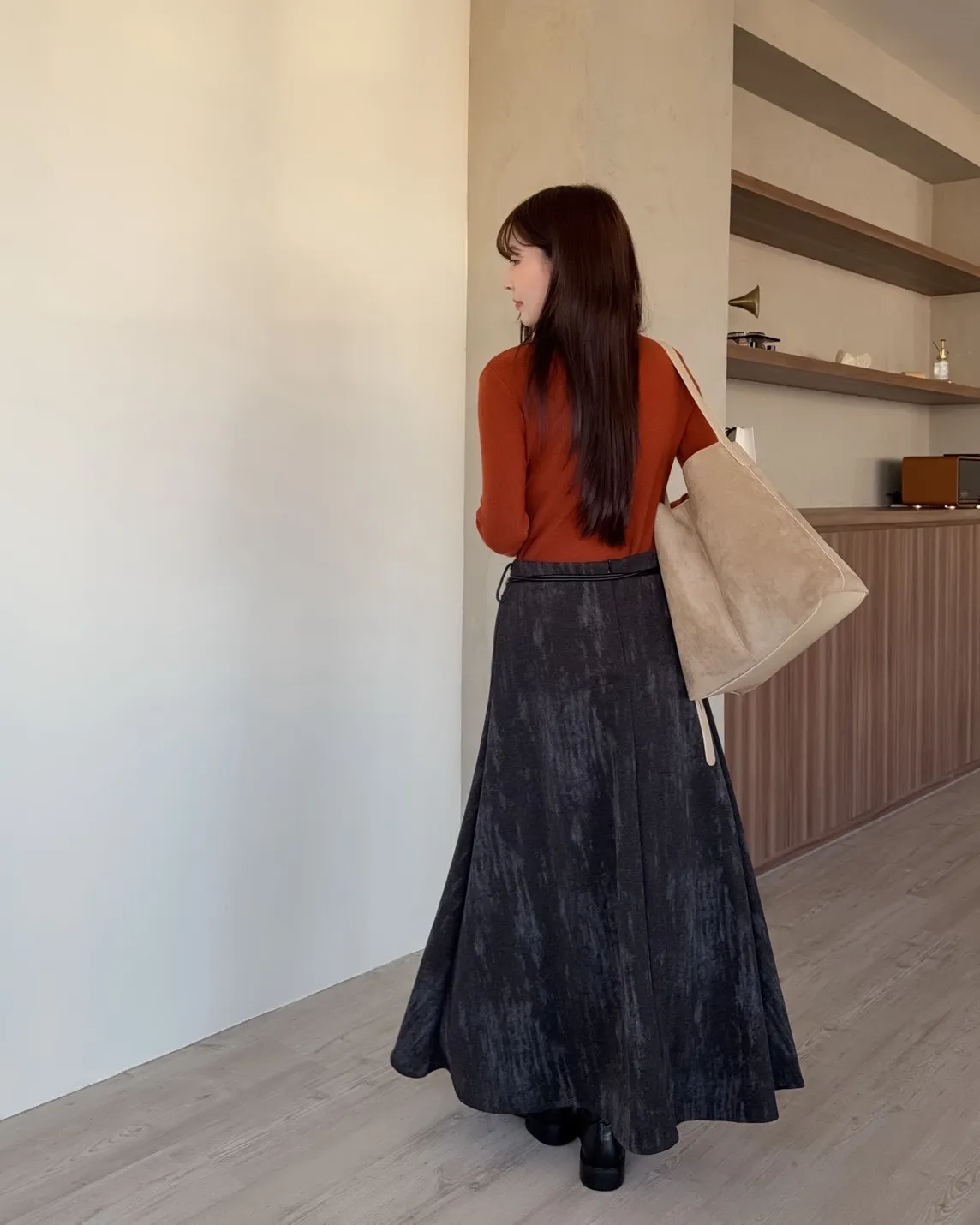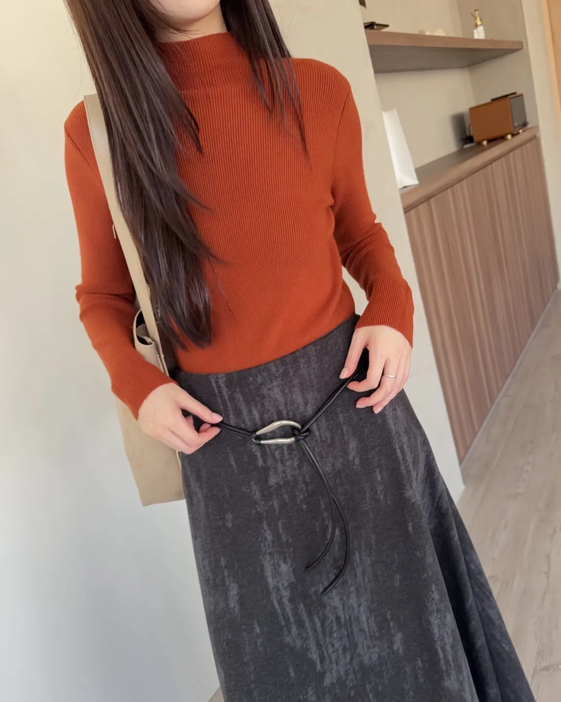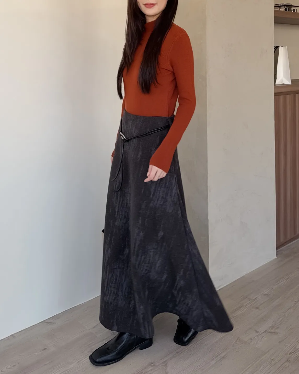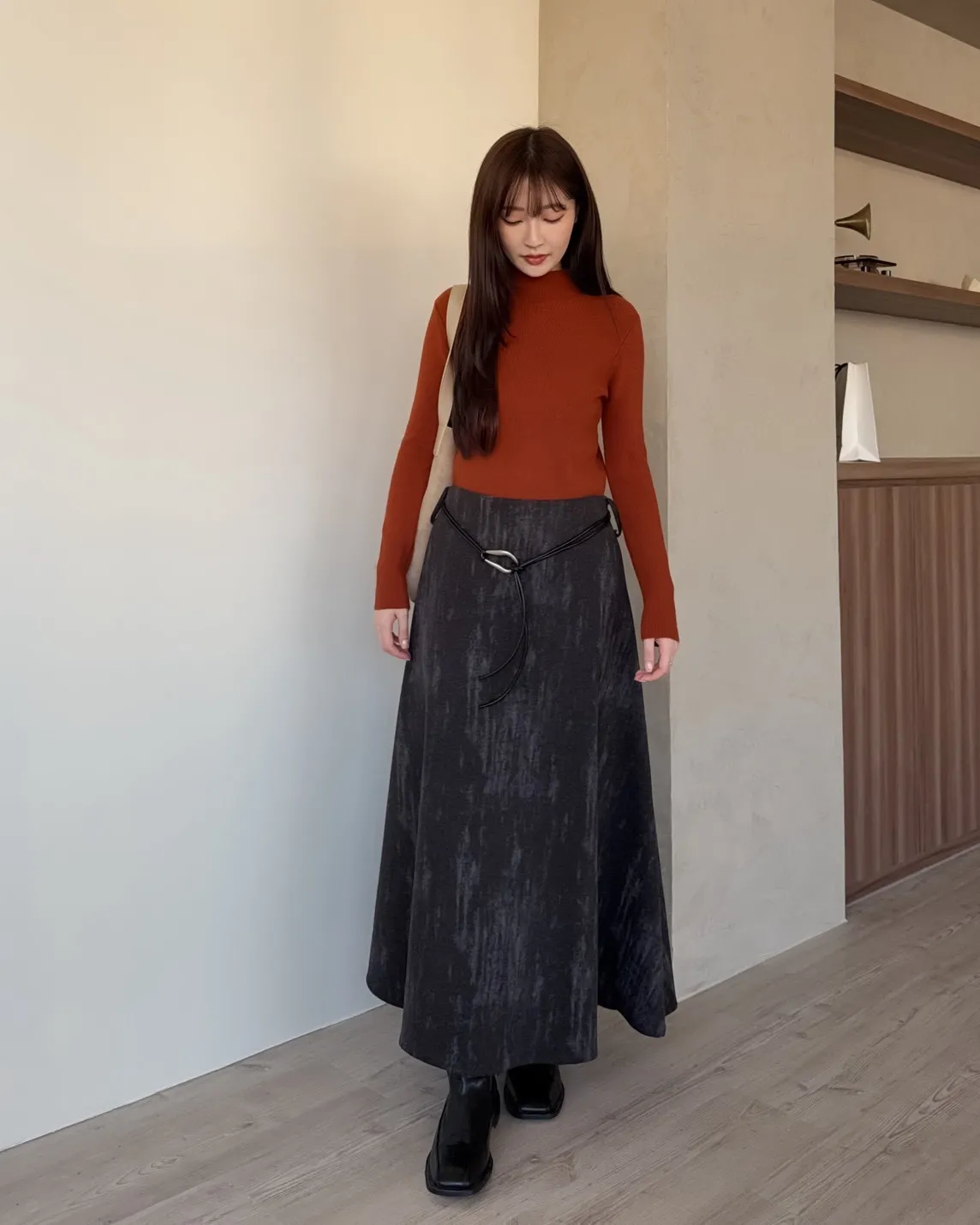 W0062(附金屬扣細腰帶)渲染傘擺毛呢裙