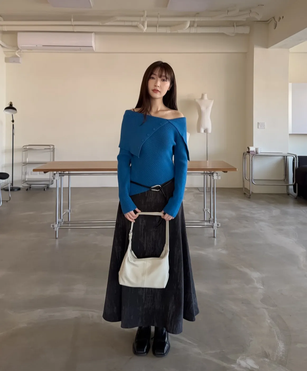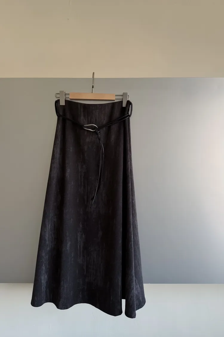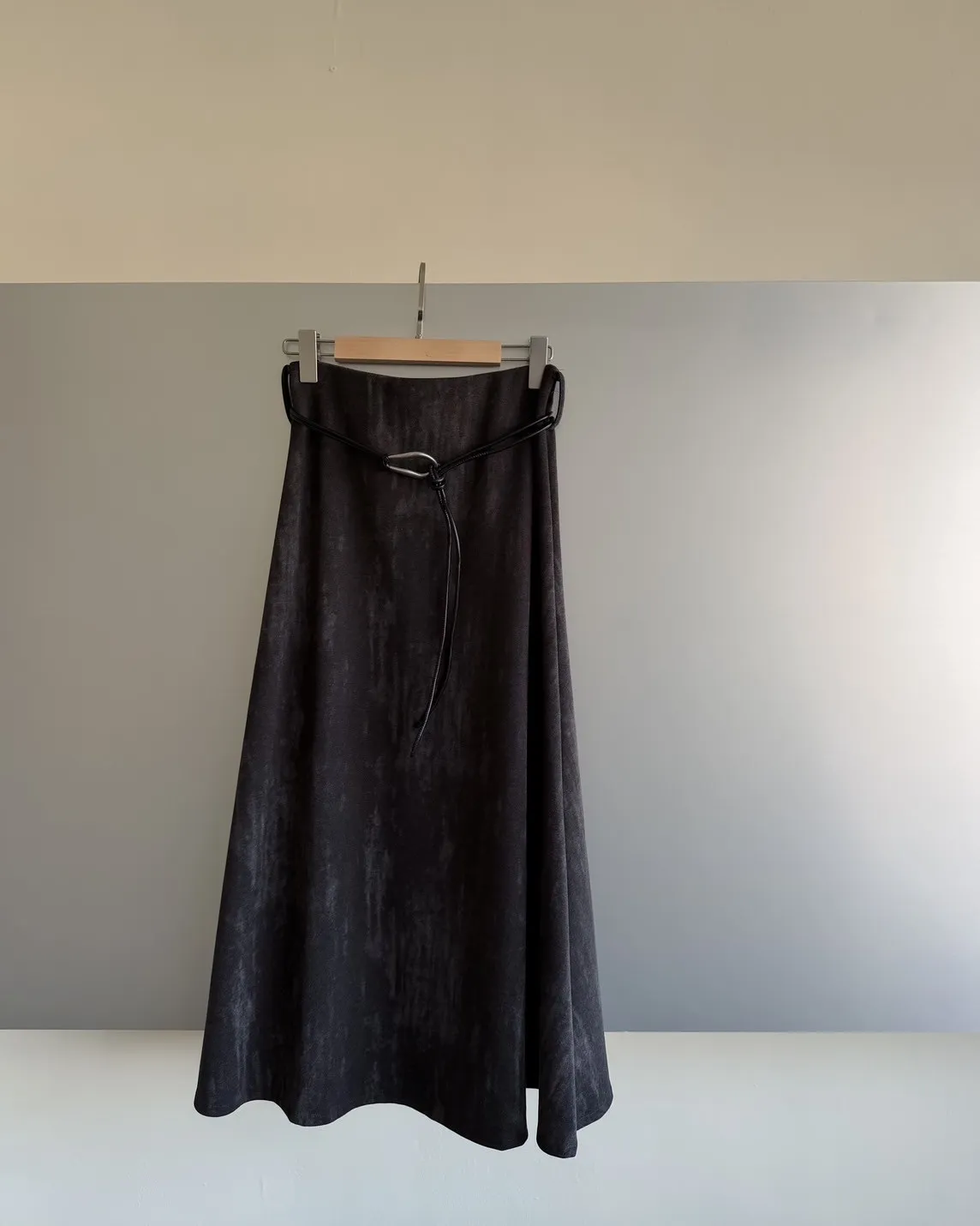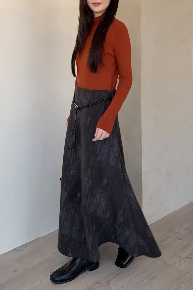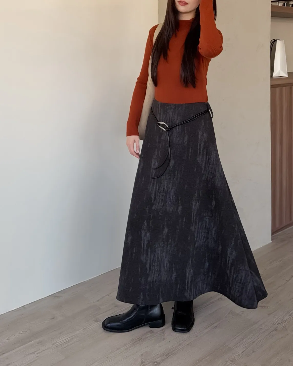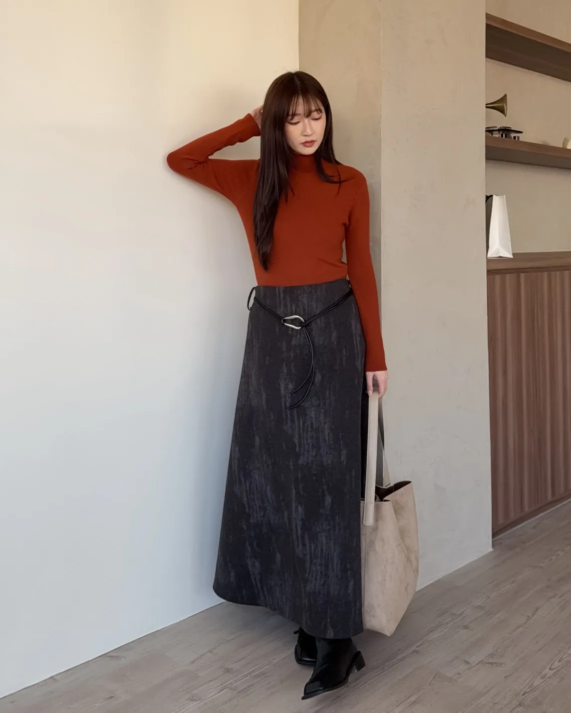 W0062(附金屬扣細腰帶)渲染傘擺毛呢裙
