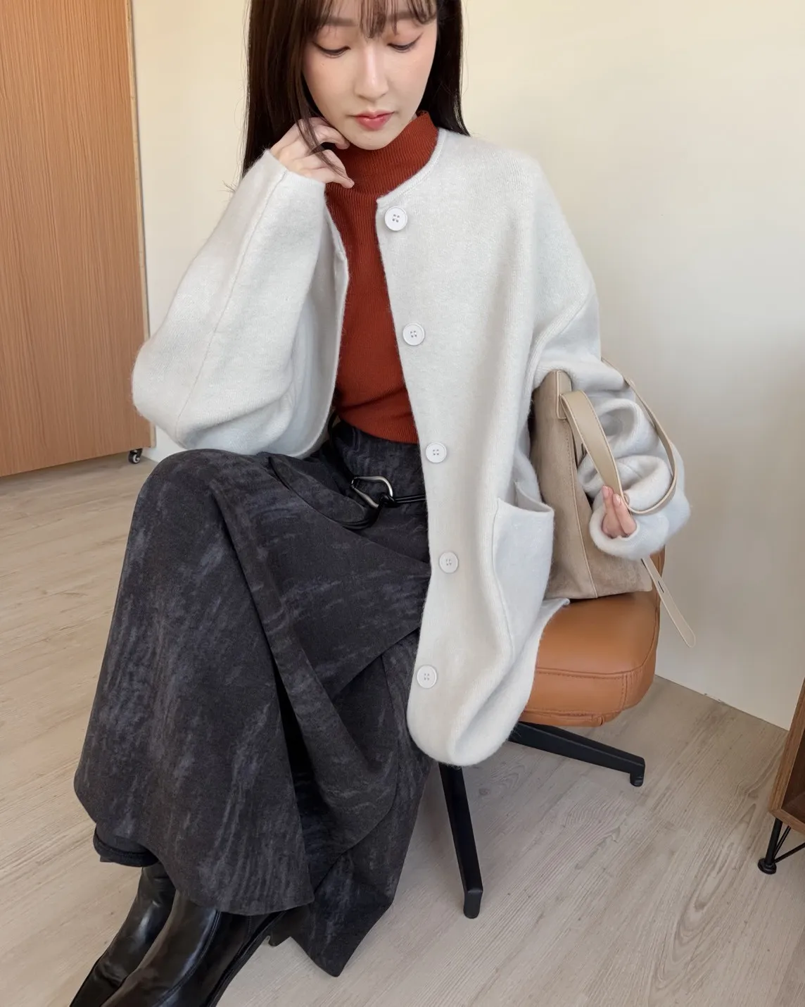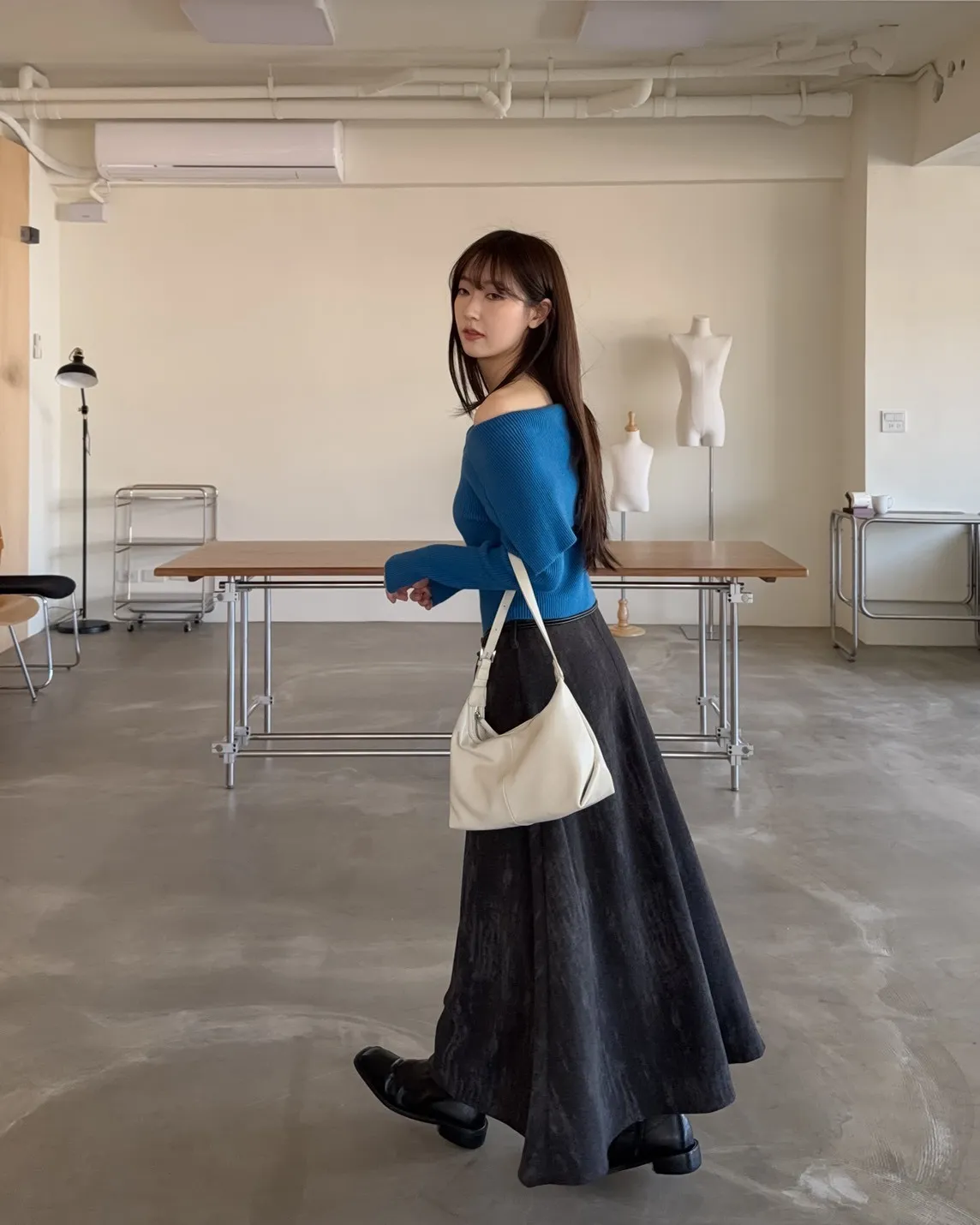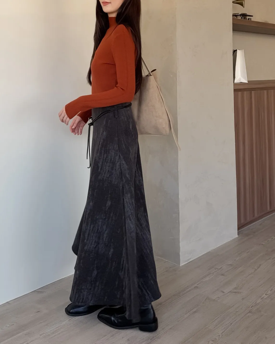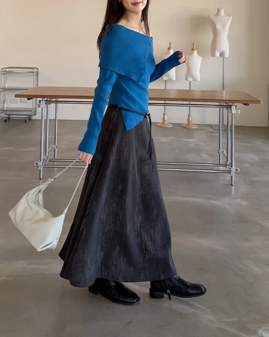 W0062(附金屬扣細腰帶)渲染傘擺毛呢裙