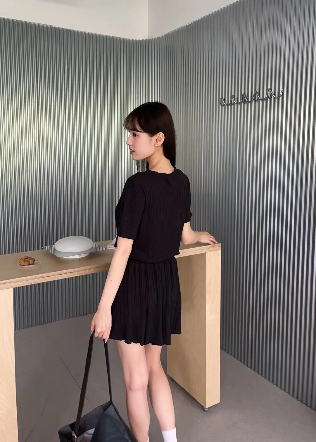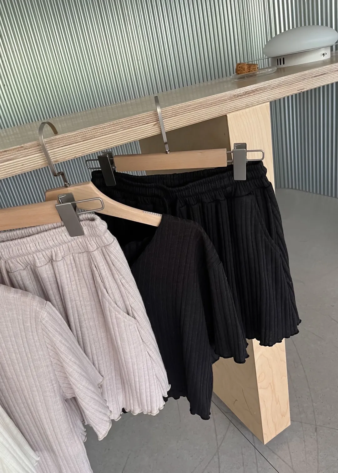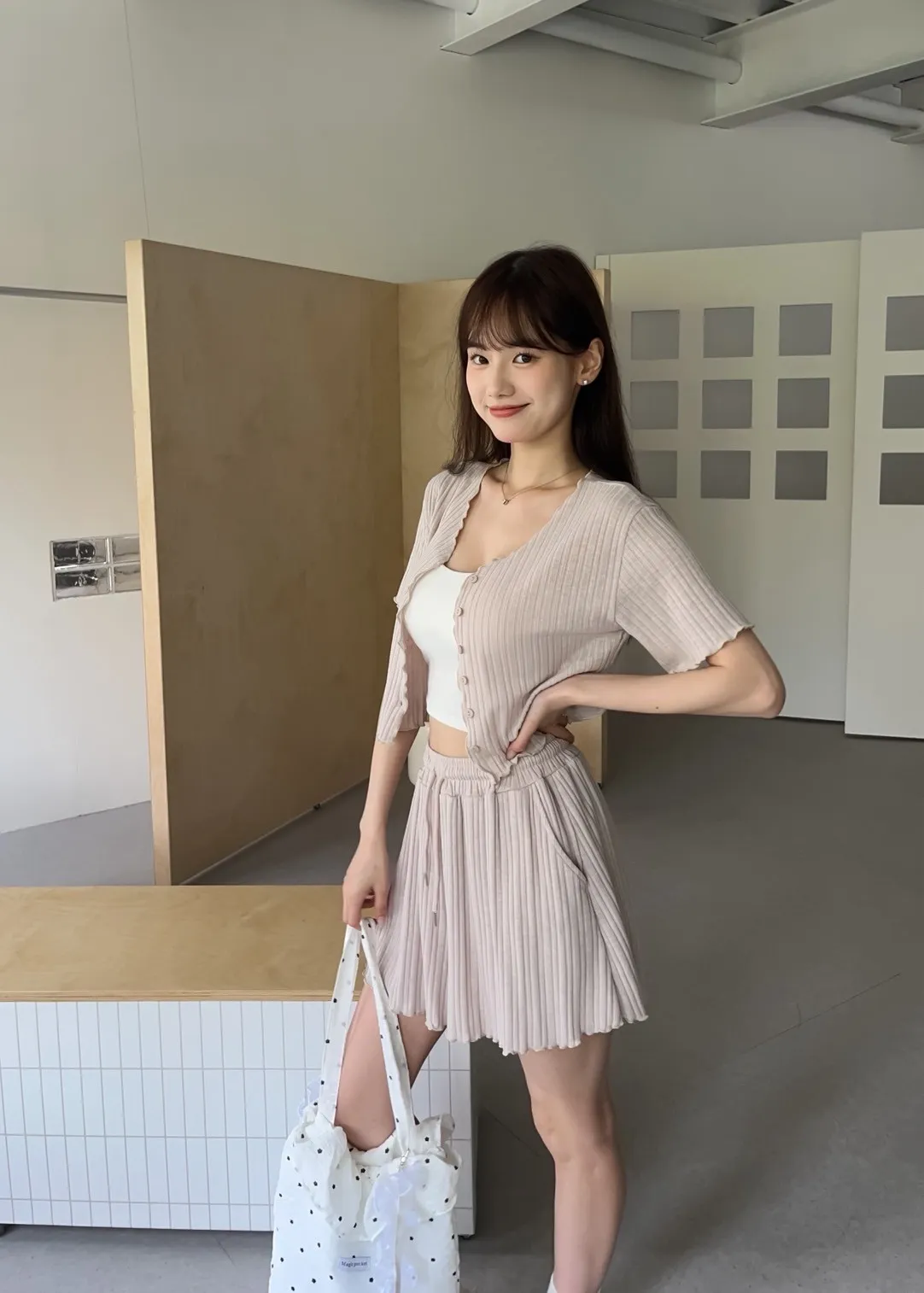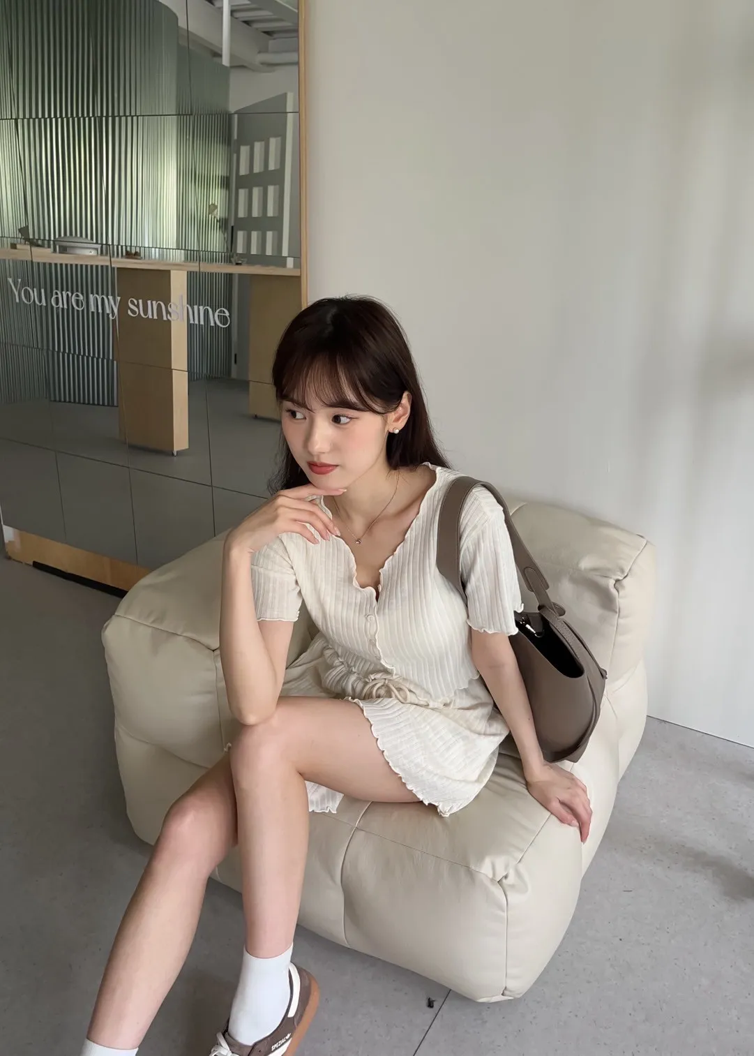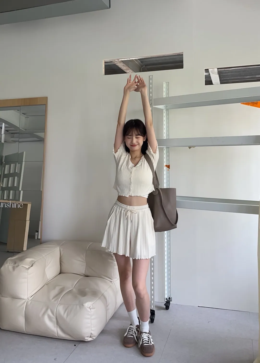 sm1504(She made)浪漫捲邊排扣上衣+捲邊短褲(米/藕粉/黑)(售完不補)