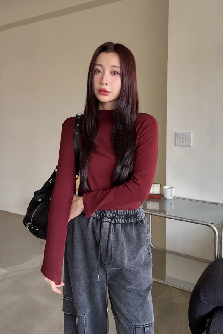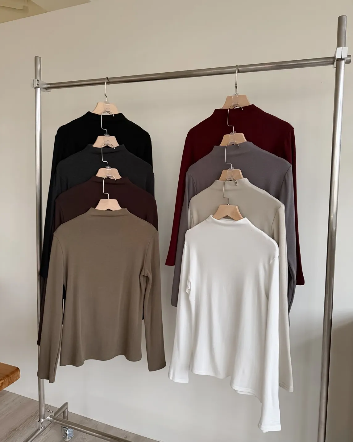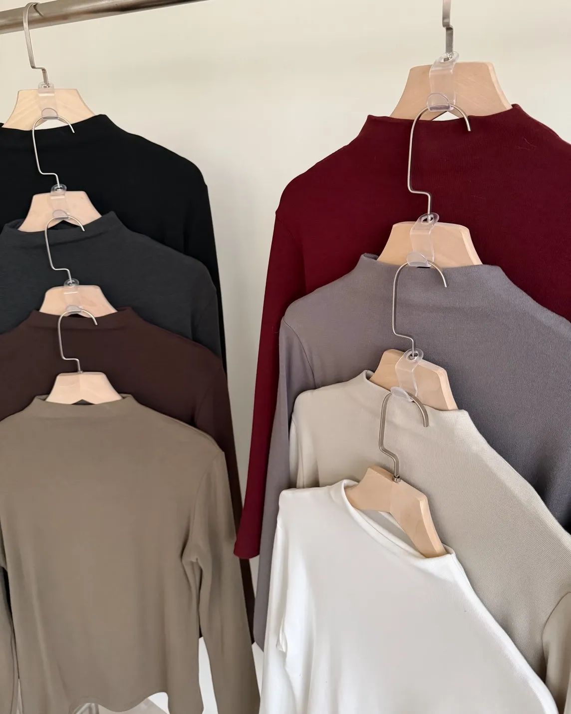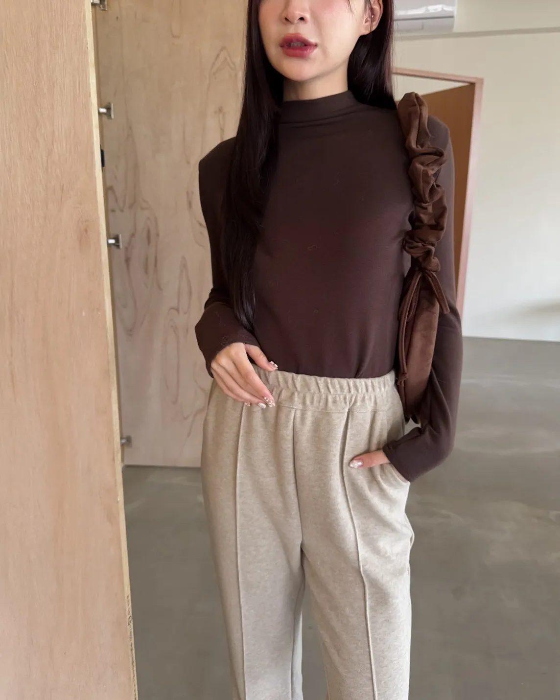 X0013(八色)低飽和刷絨小立領麻糬上衣(白/杏/咖啡/紅/淺灰/深灰/灰綠/黑)