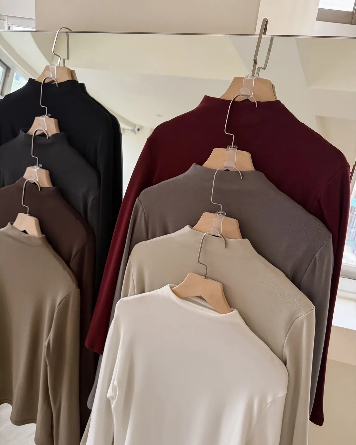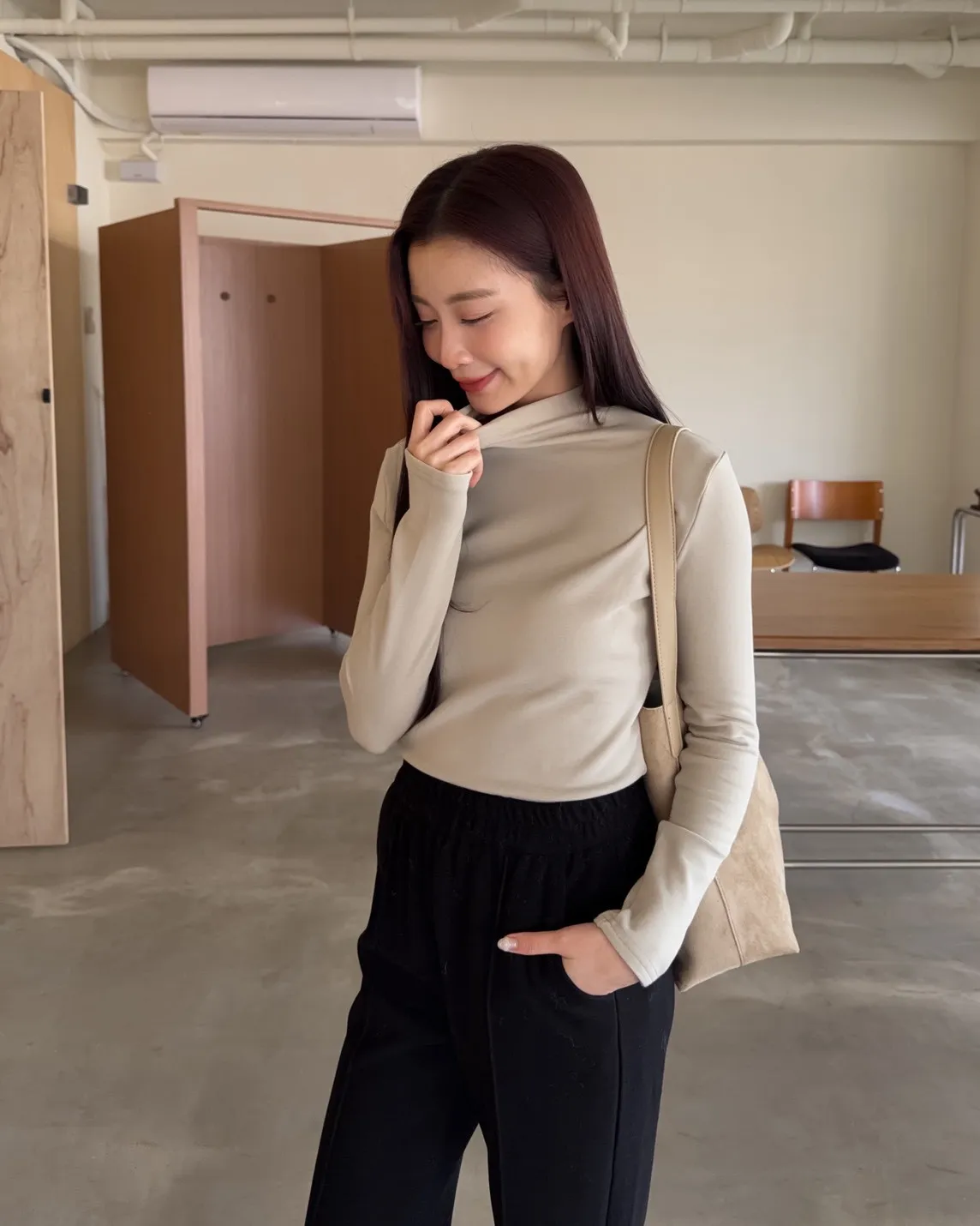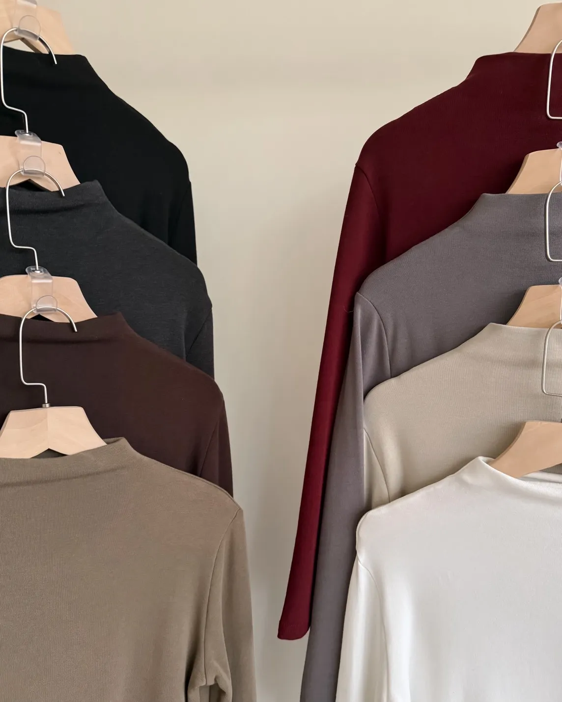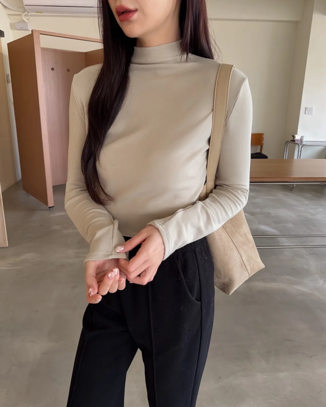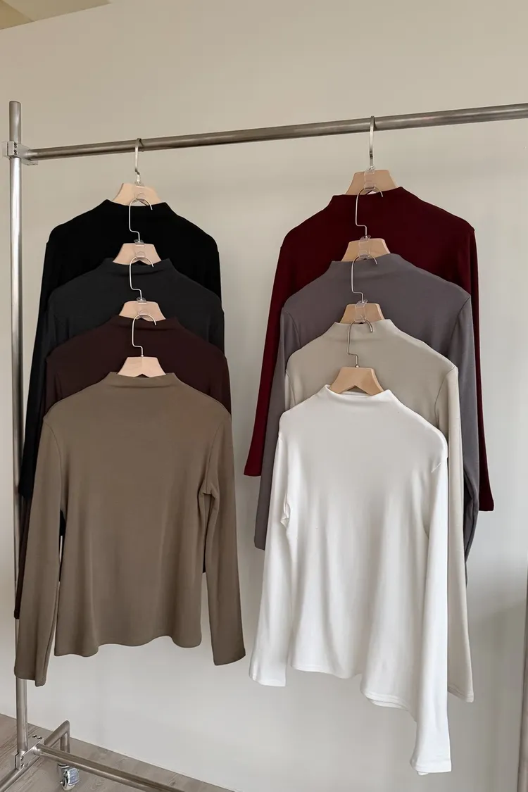 X0013(八色)低飽和刷絨小立領麻糬上衣(白/杏/咖啡/紅/淺灰/深灰/灰綠/黑)