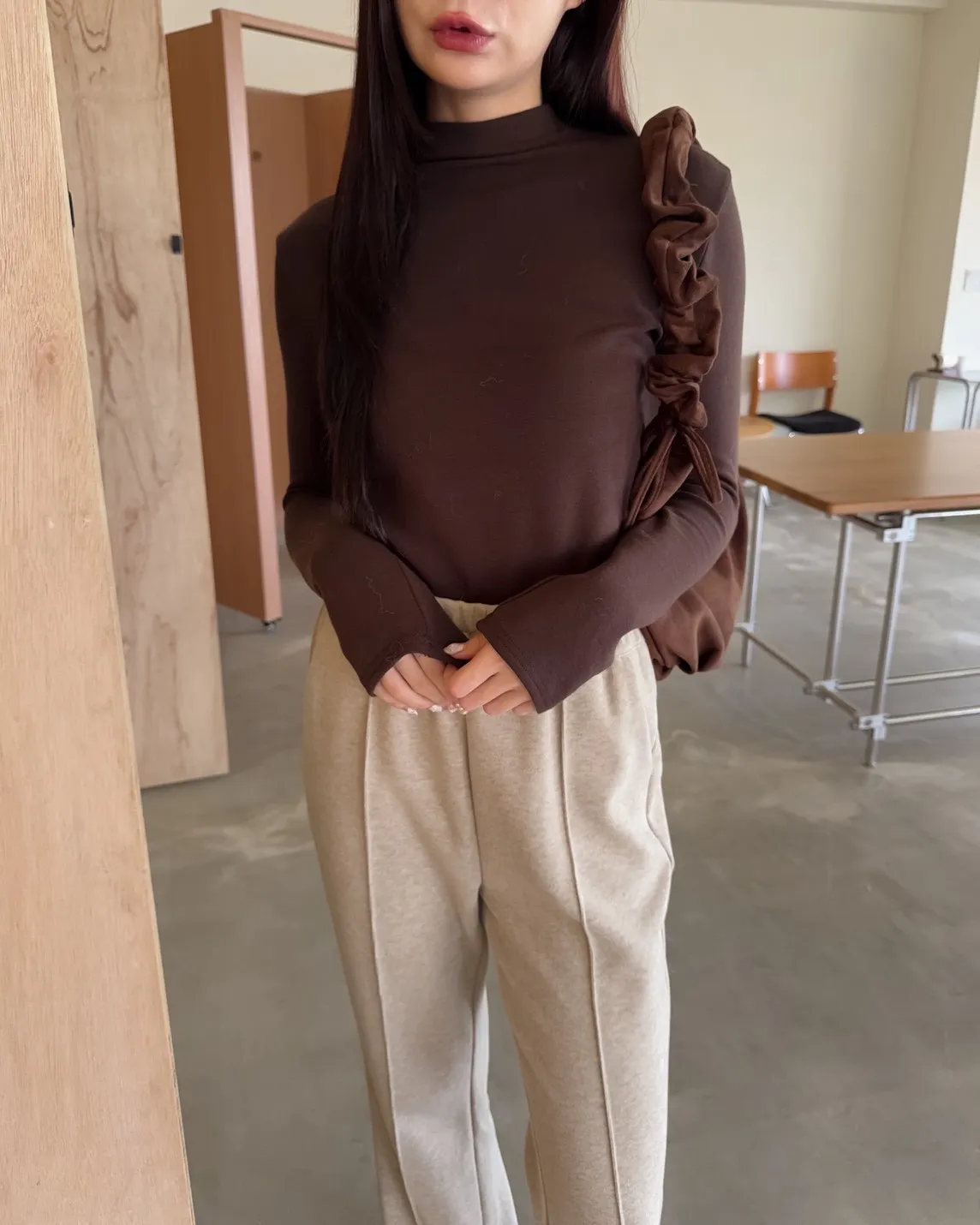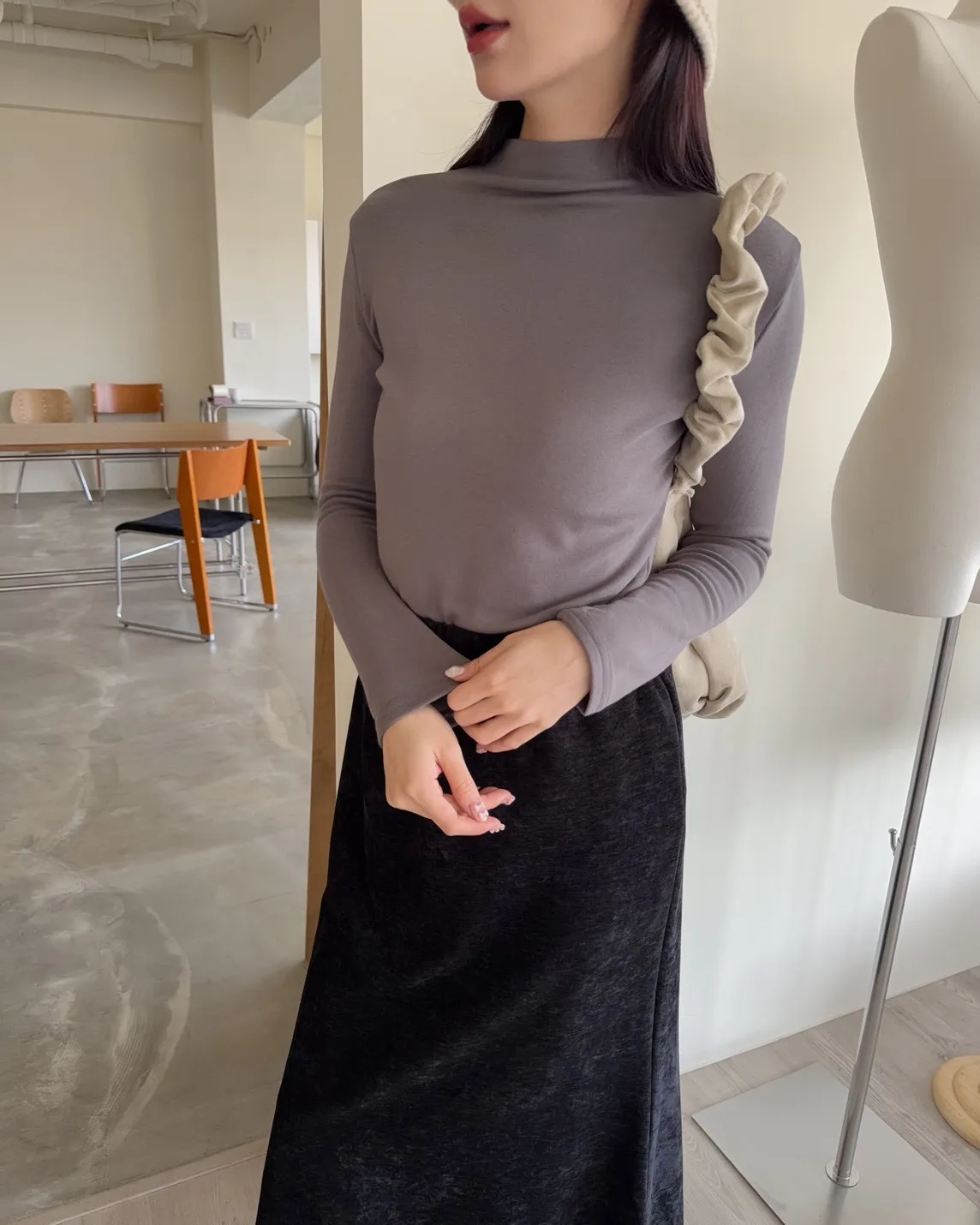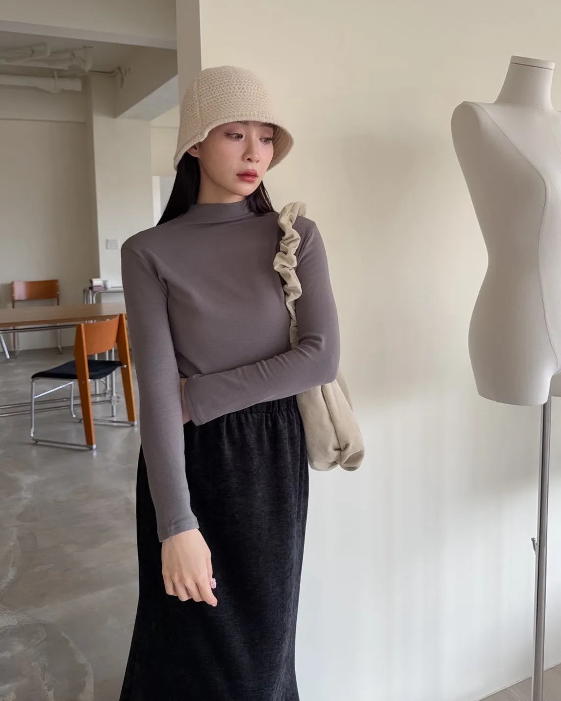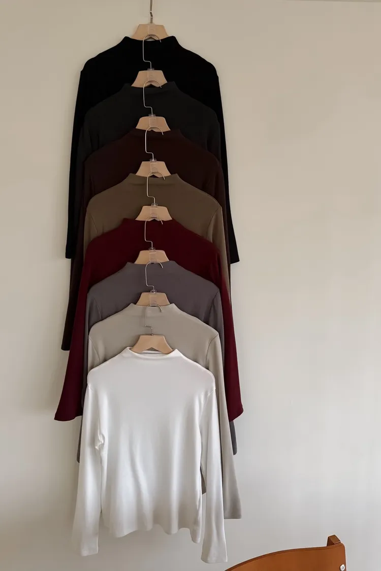 X0013(八色)低飽和刷絨小立領麻糬上衣(白/杏/咖啡/紅/淺灰/深灰/灰綠/黑)
