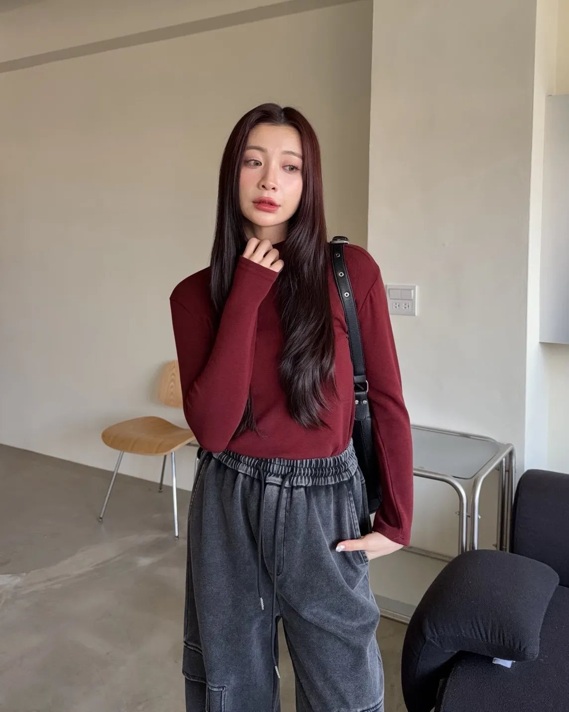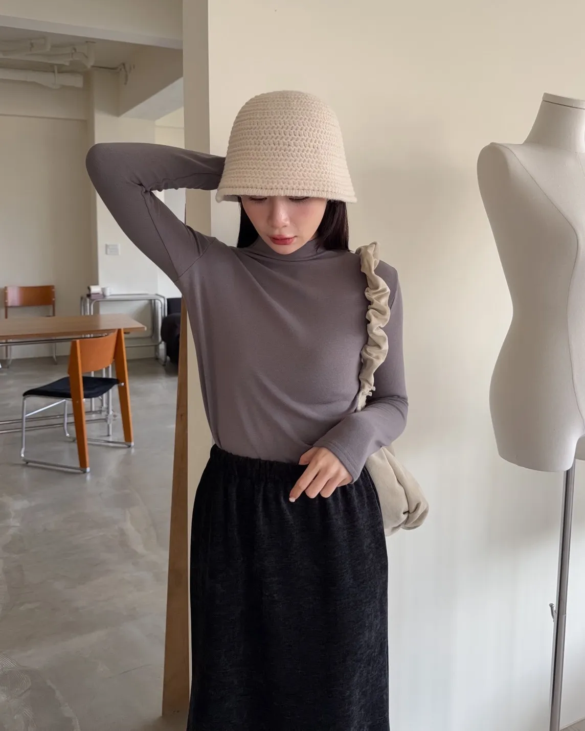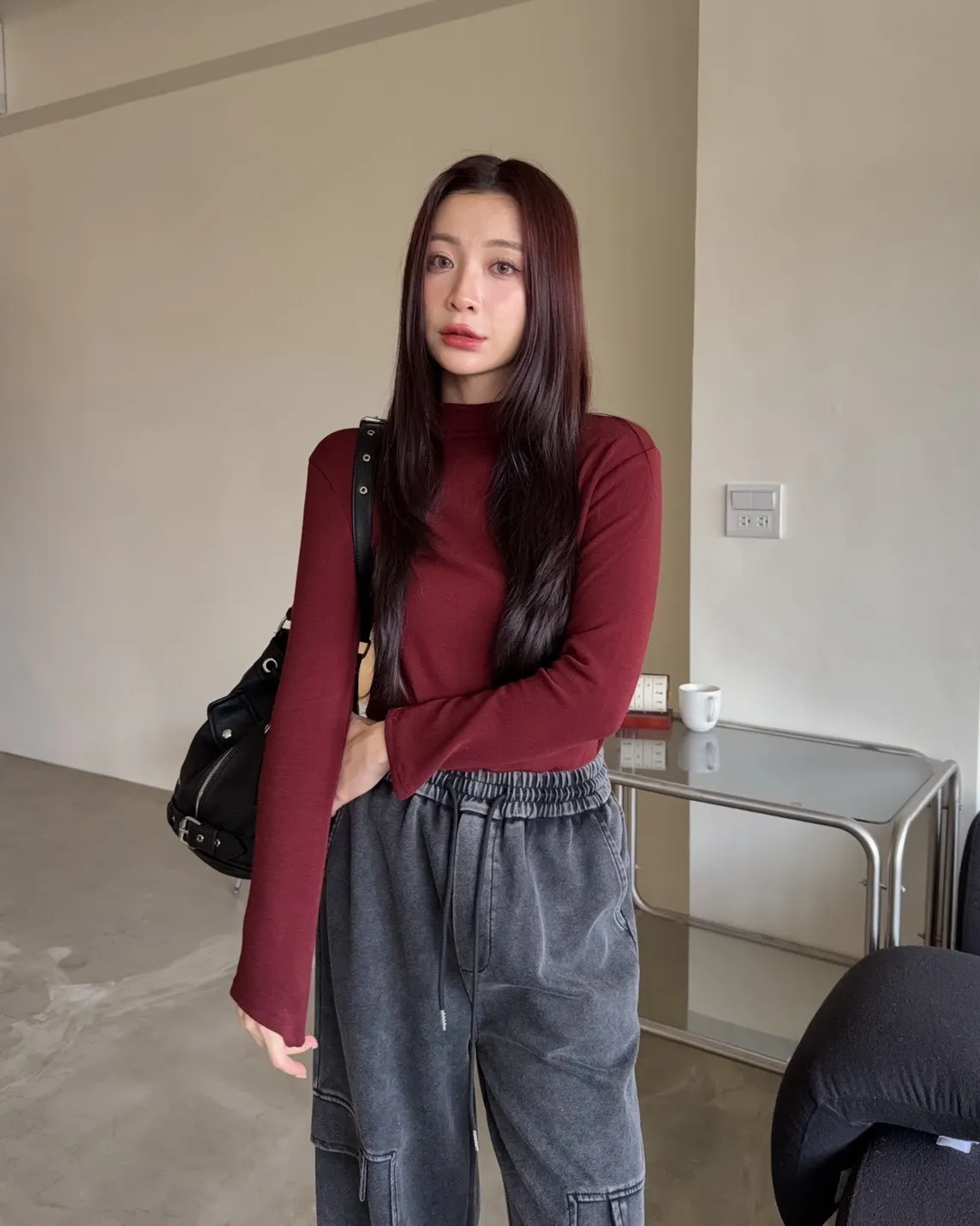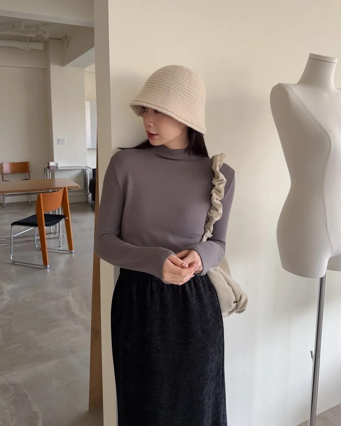 X0013(八色)低飽和刷絨小立領麻糬上衣(白/杏/咖啡/紅/淺灰/深灰/灰綠/黑)