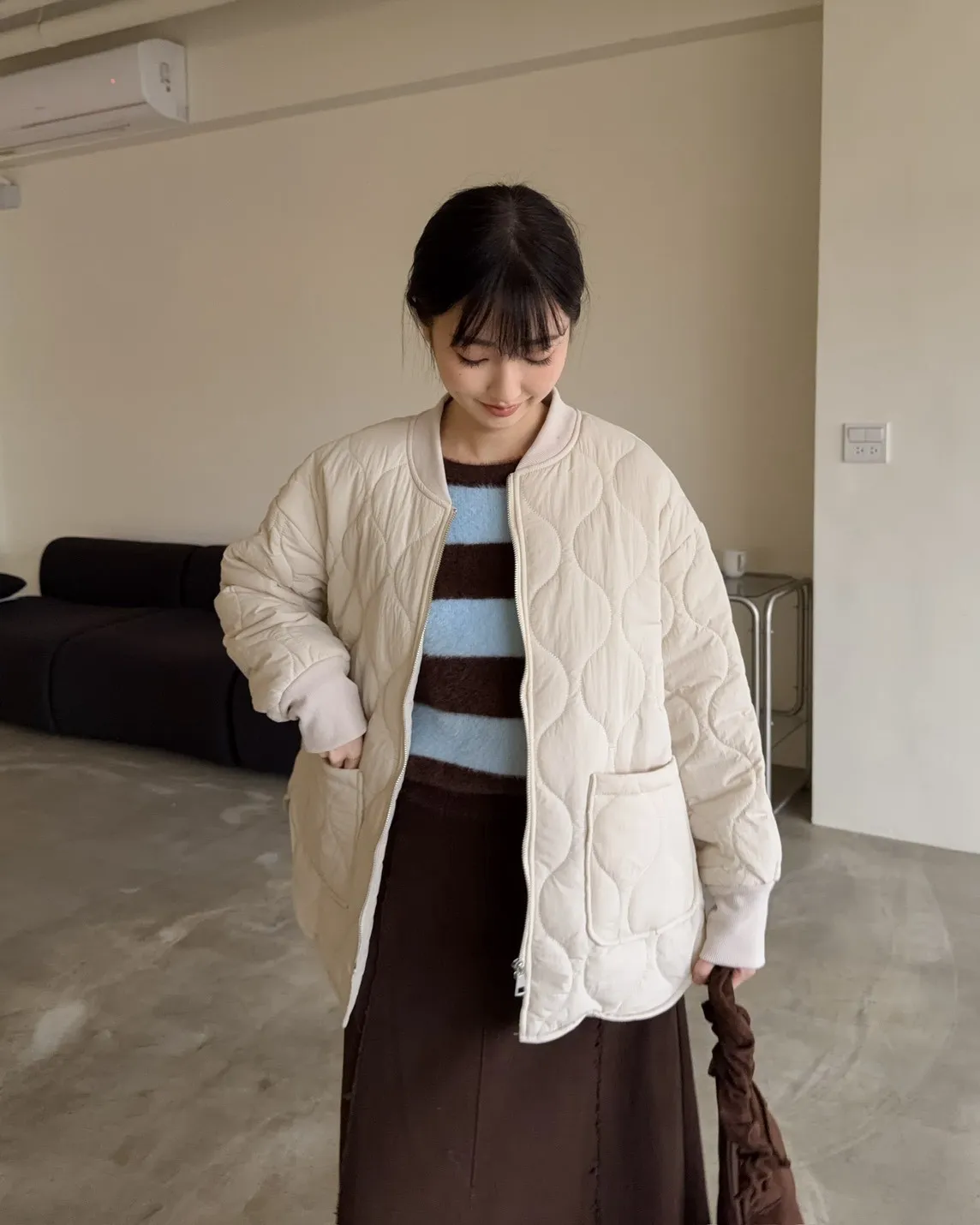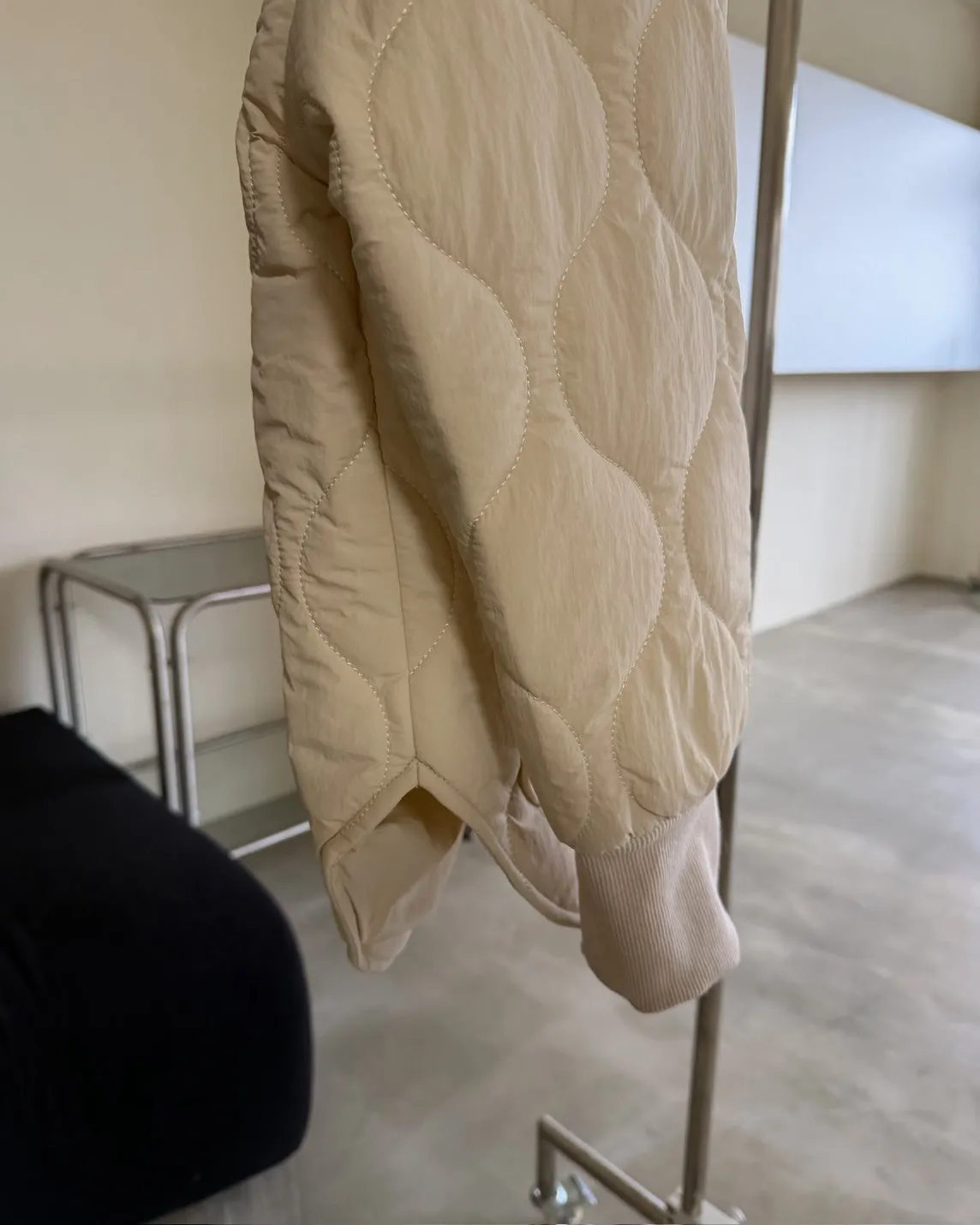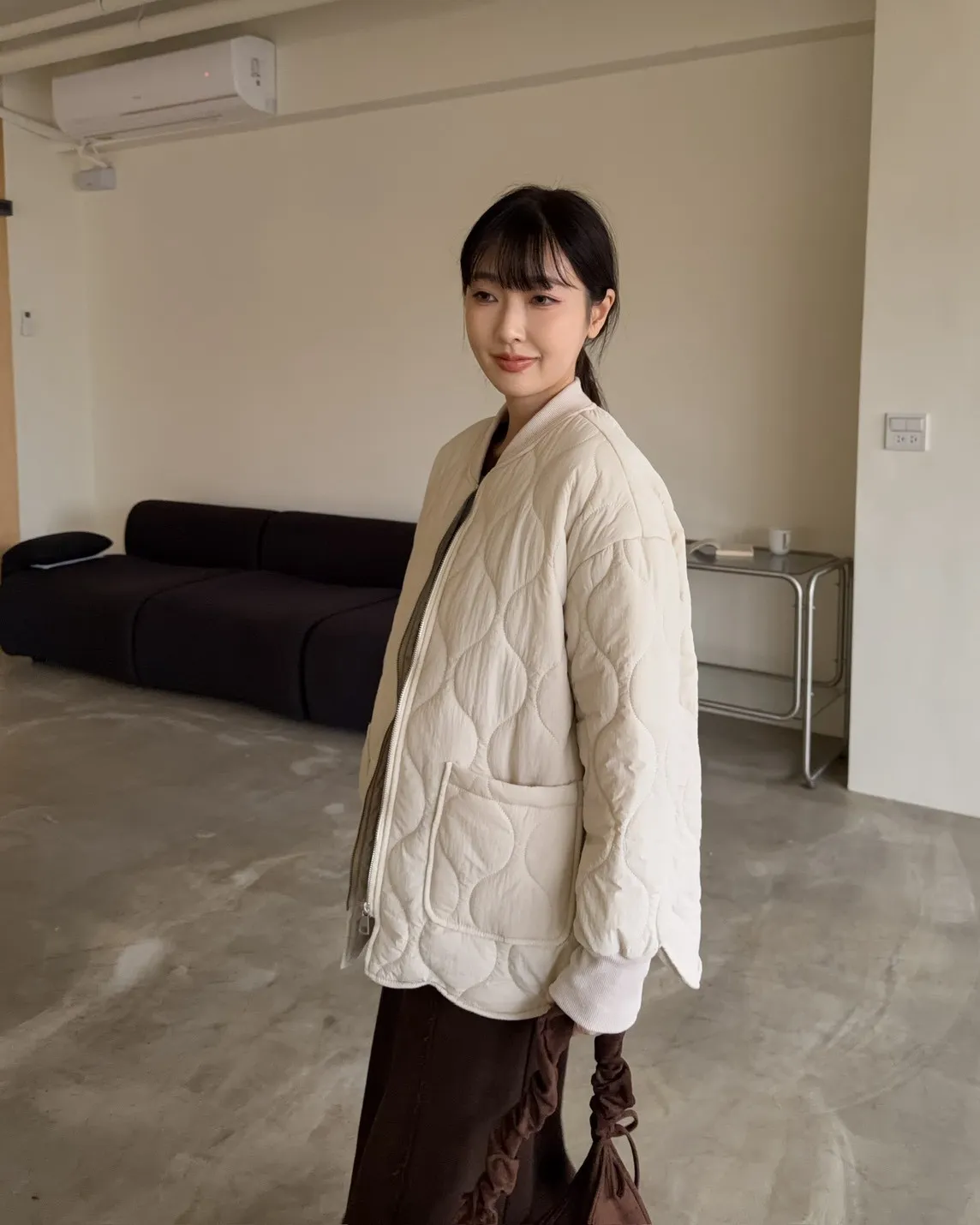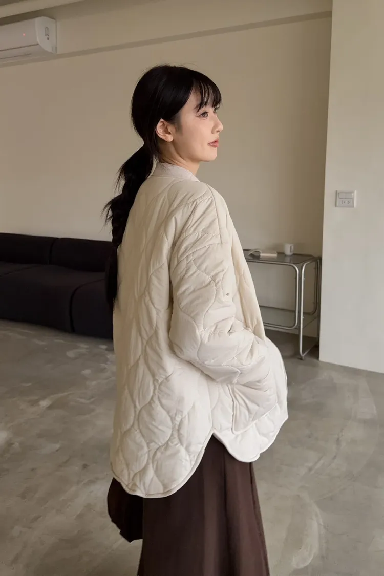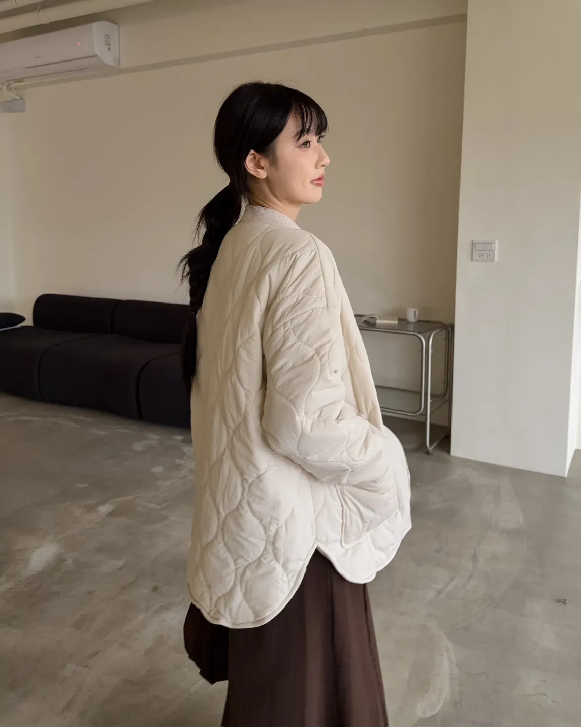 Y0023日系衍縫無領鋪棉外套(杏/黑)