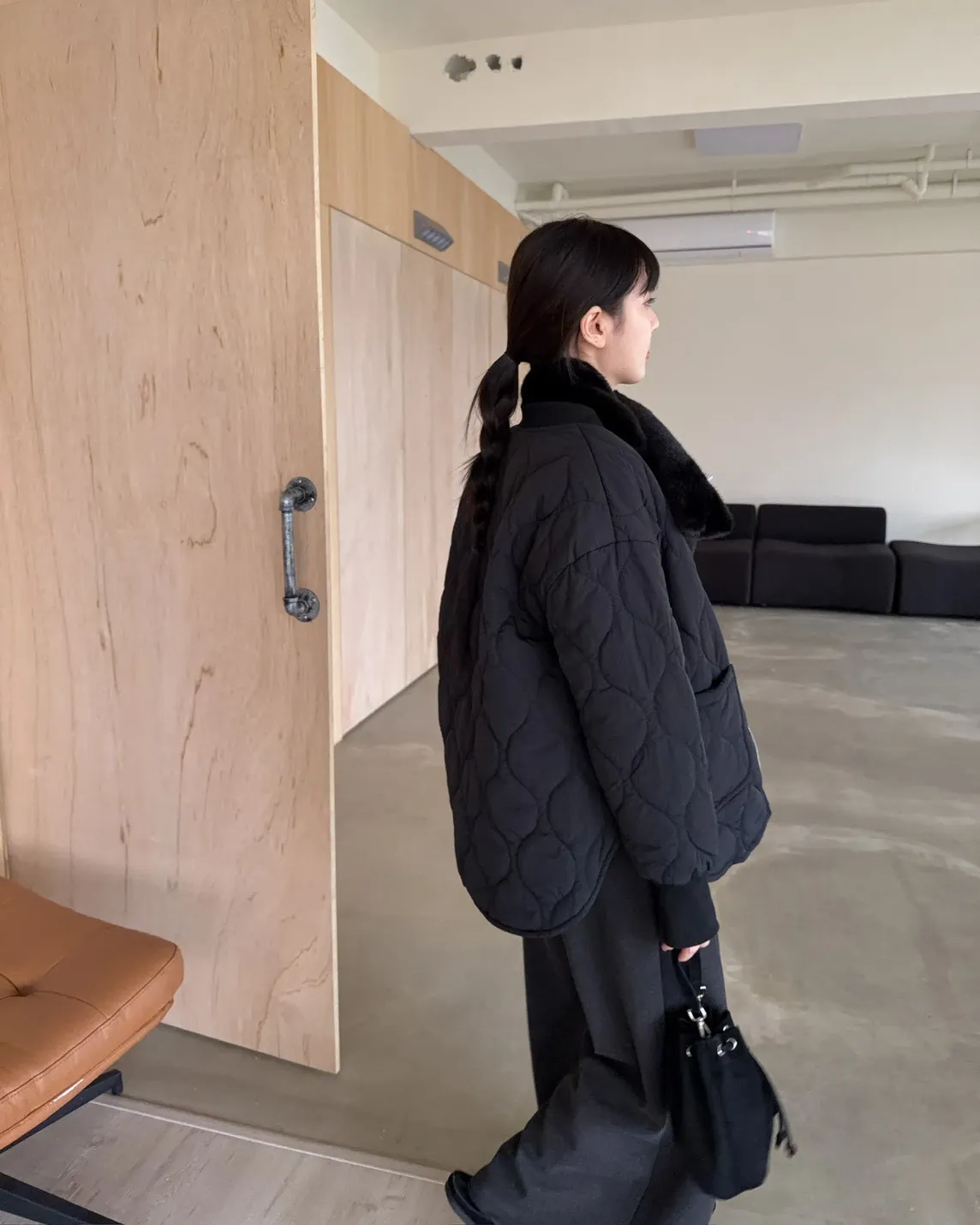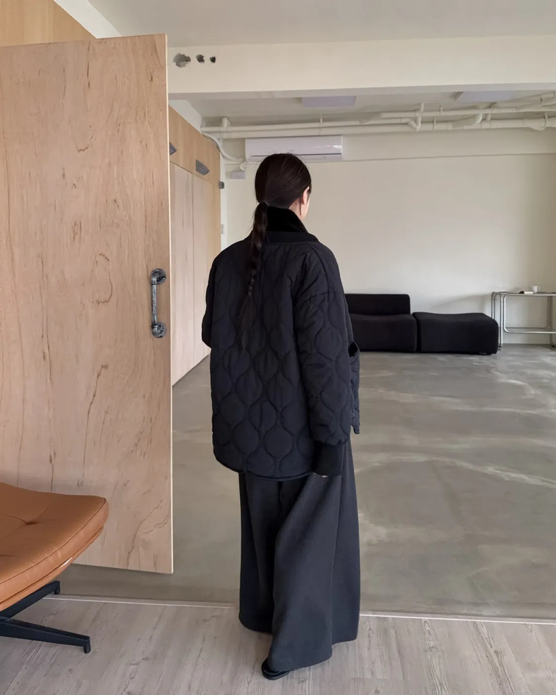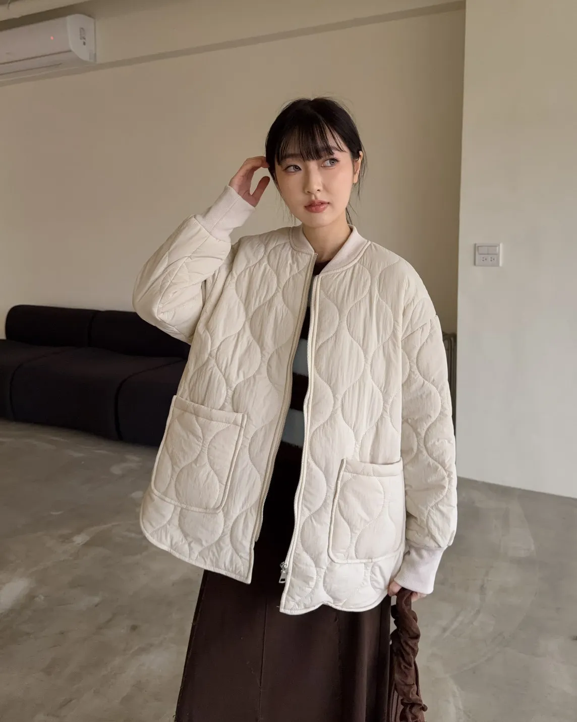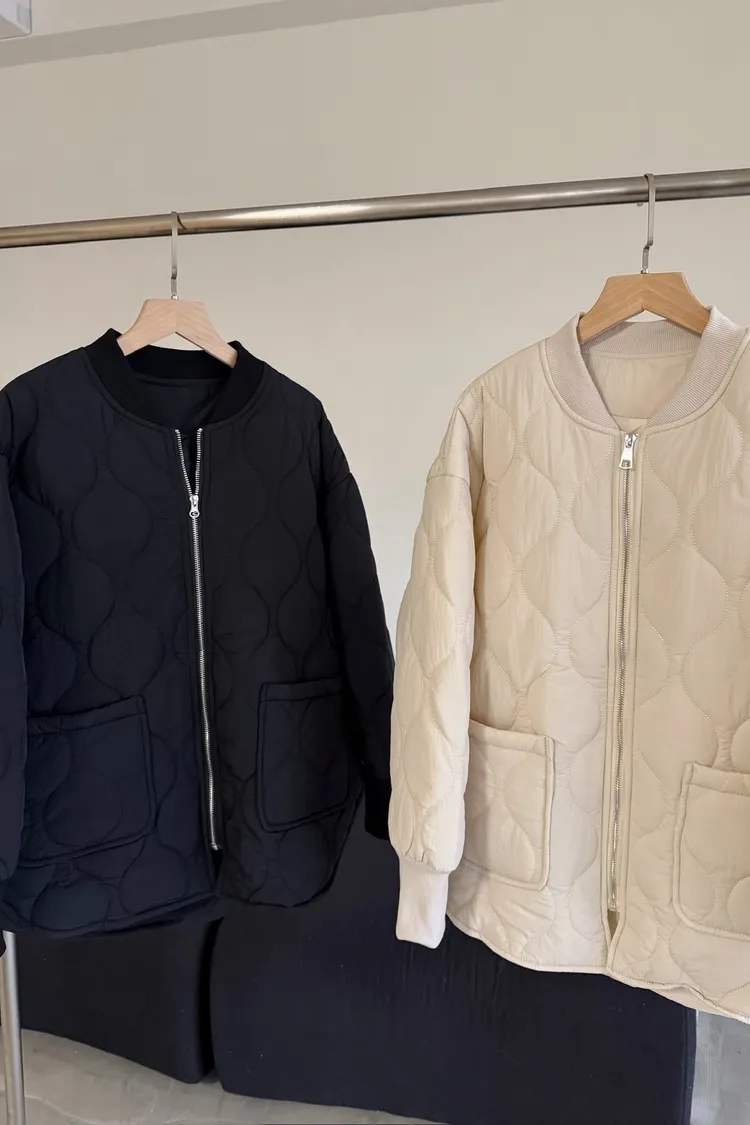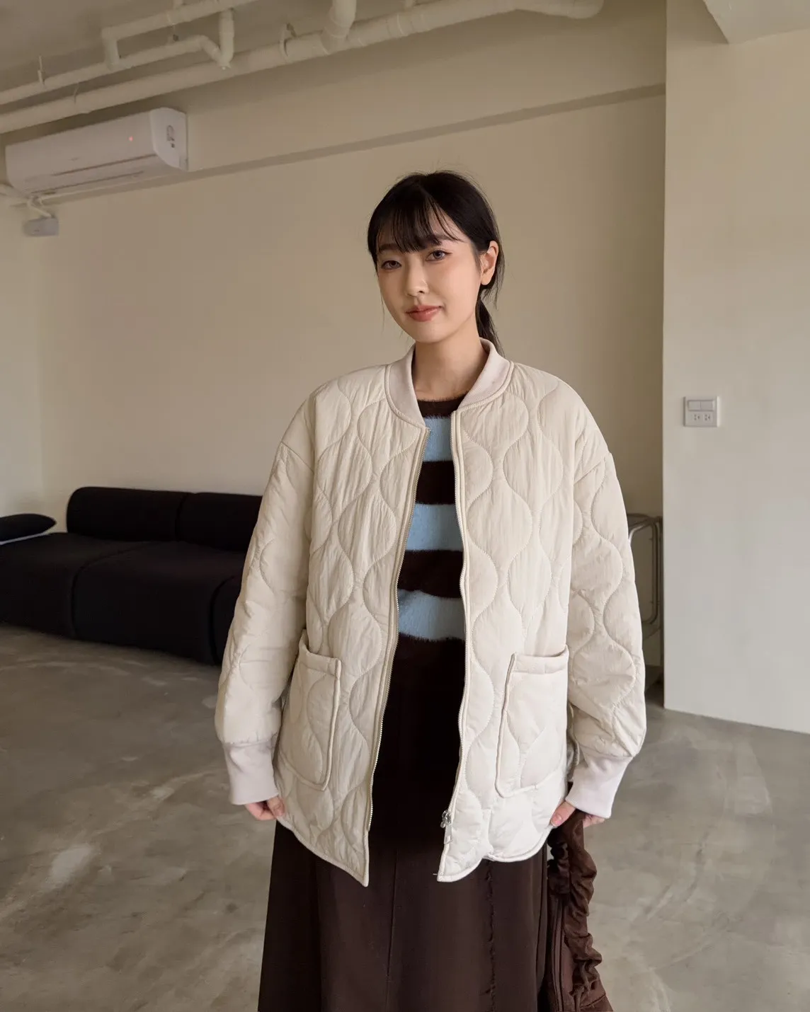 Y0023日系衍縫無領鋪棉外套(杏/黑)