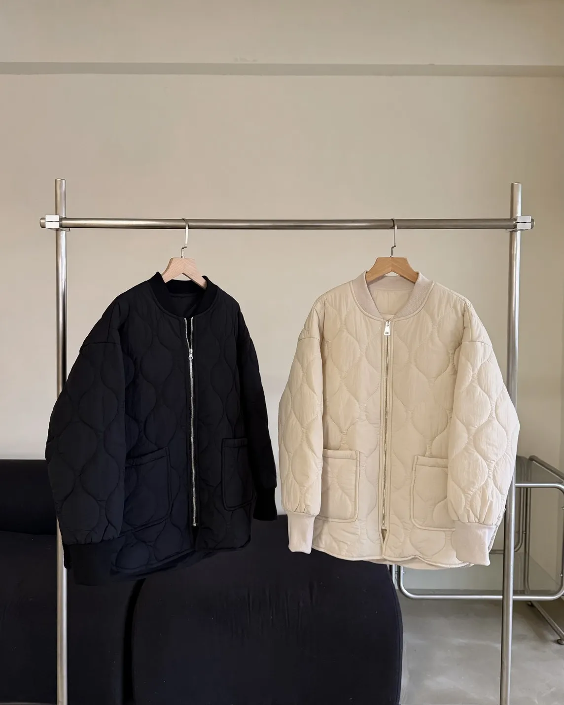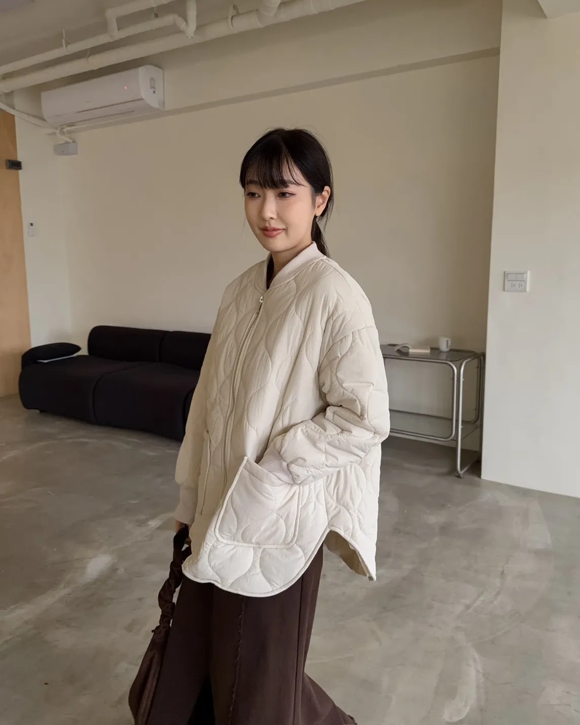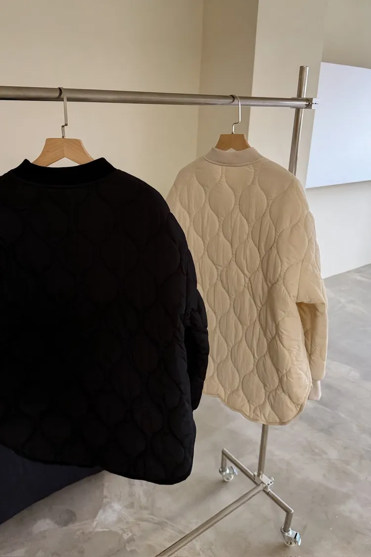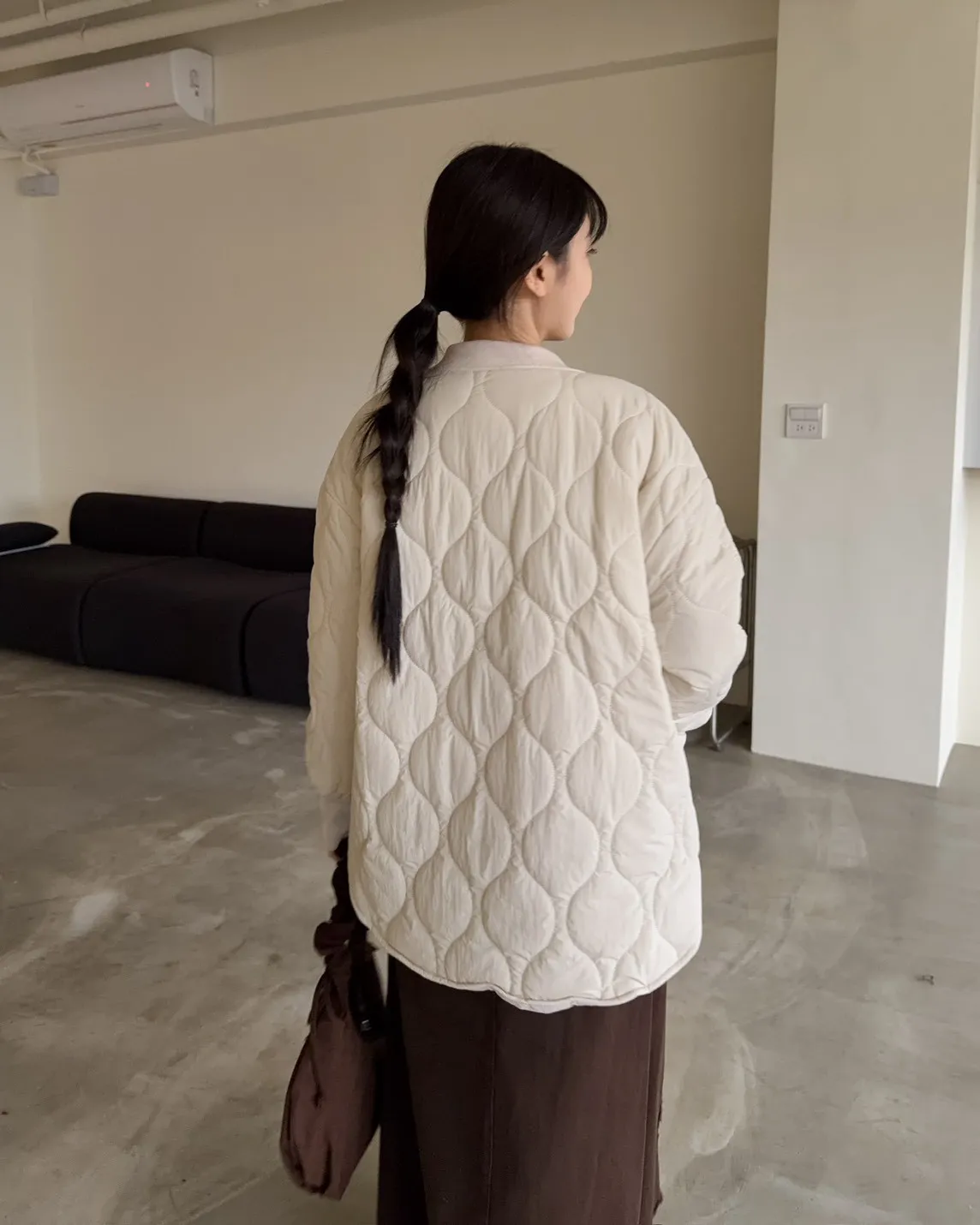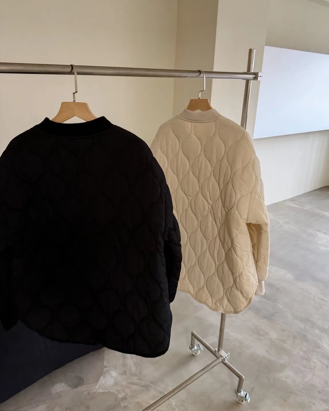 Y0023日系衍縫無領鋪棉外套(杏/黑)