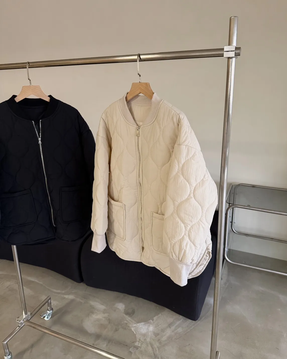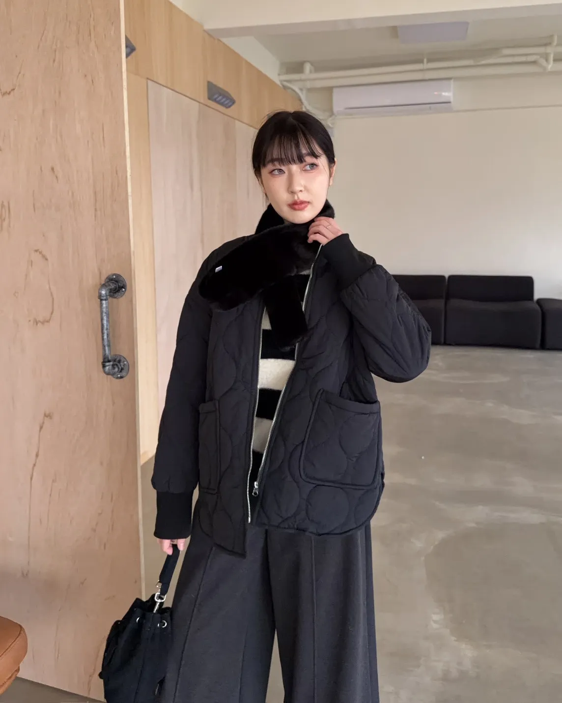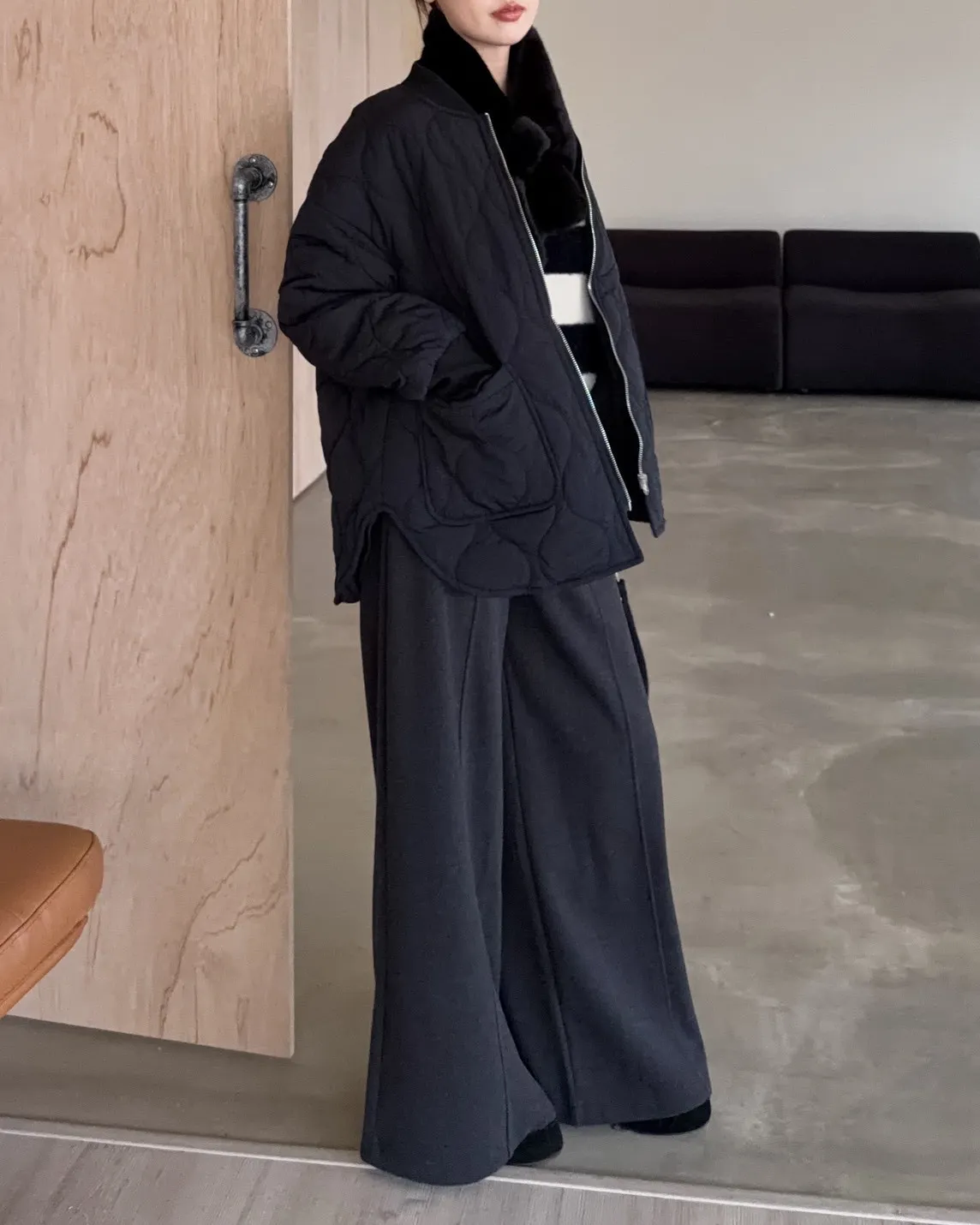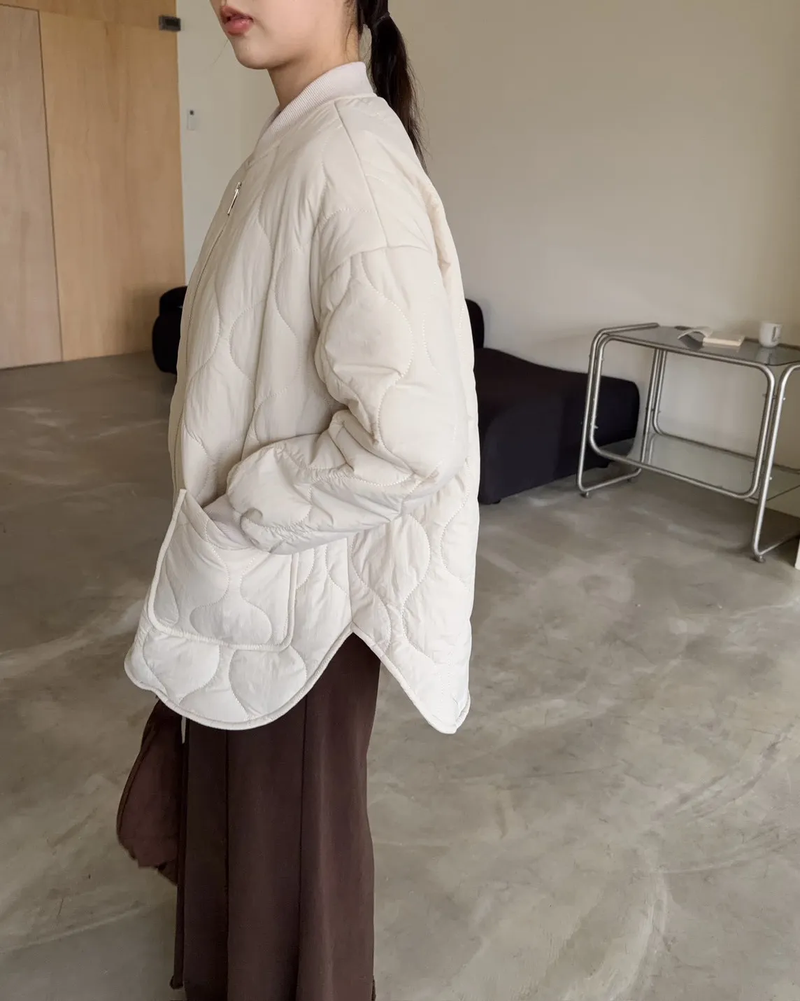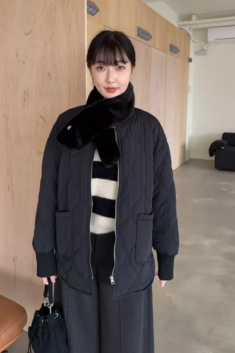 Y0023日系衍縫無領鋪棉外套(杏/黑)