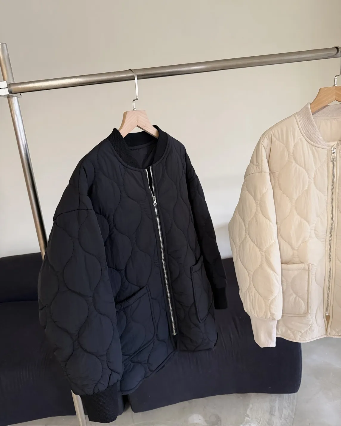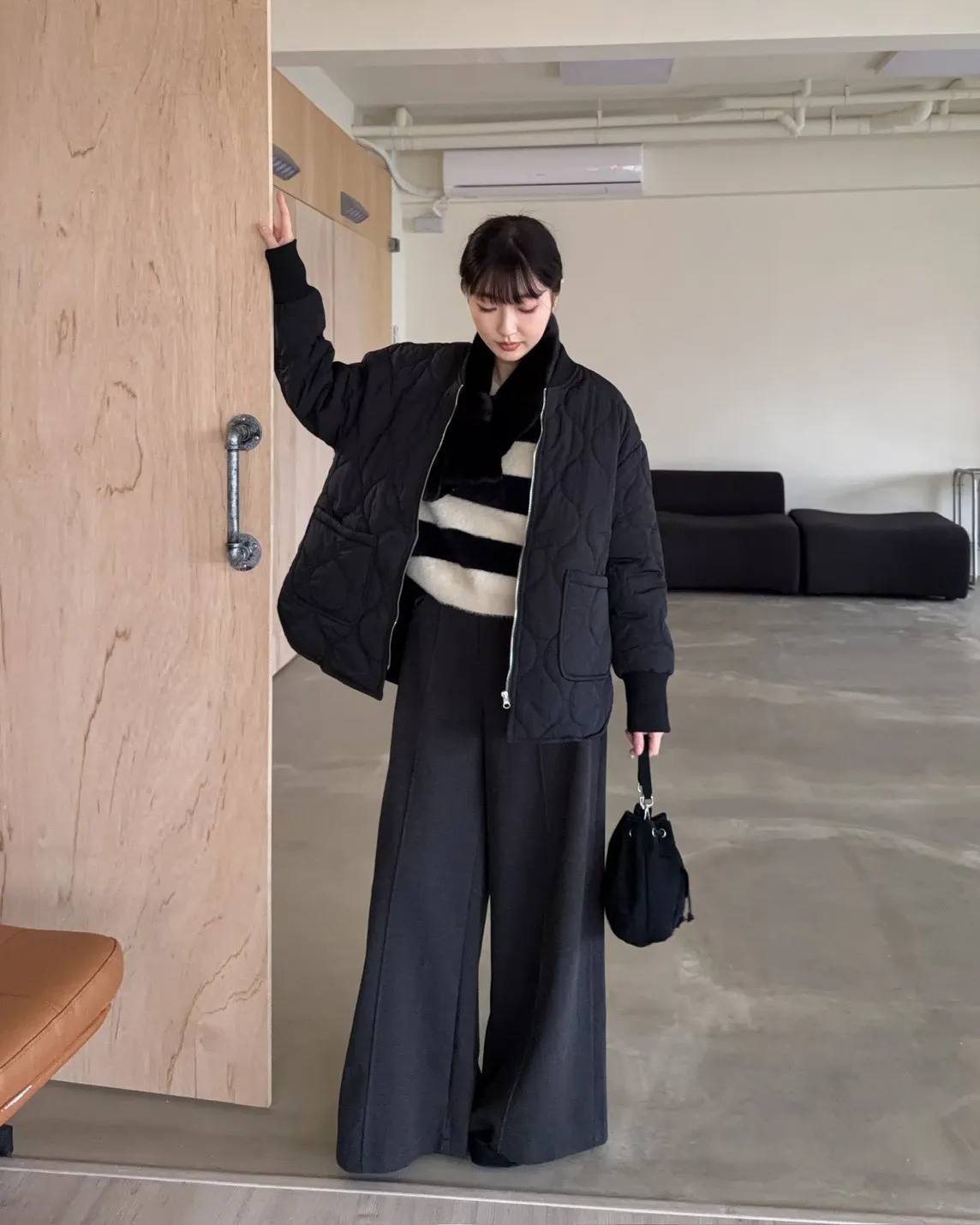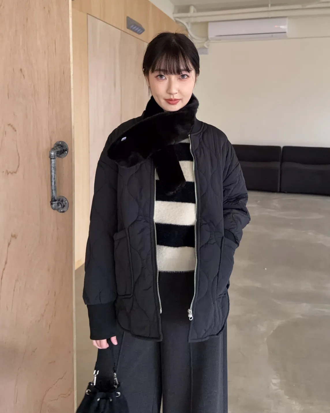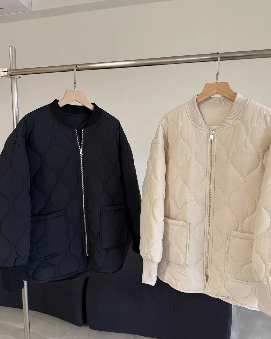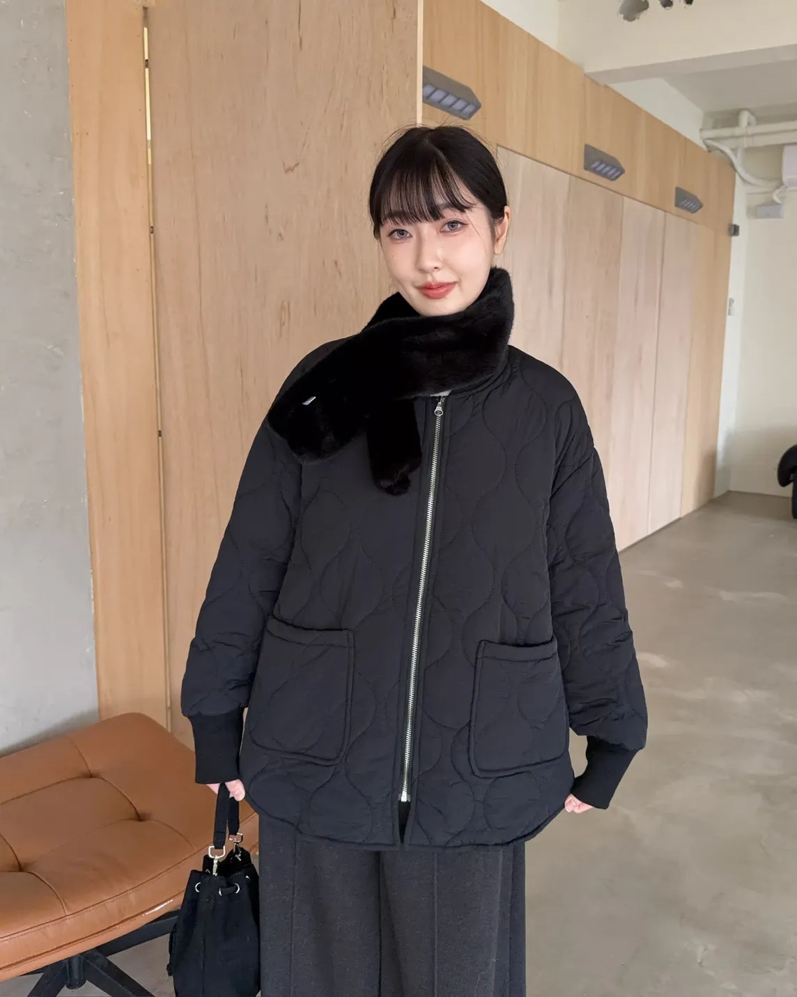 Y0023日系衍縫無領鋪棉外套(杏/黑)