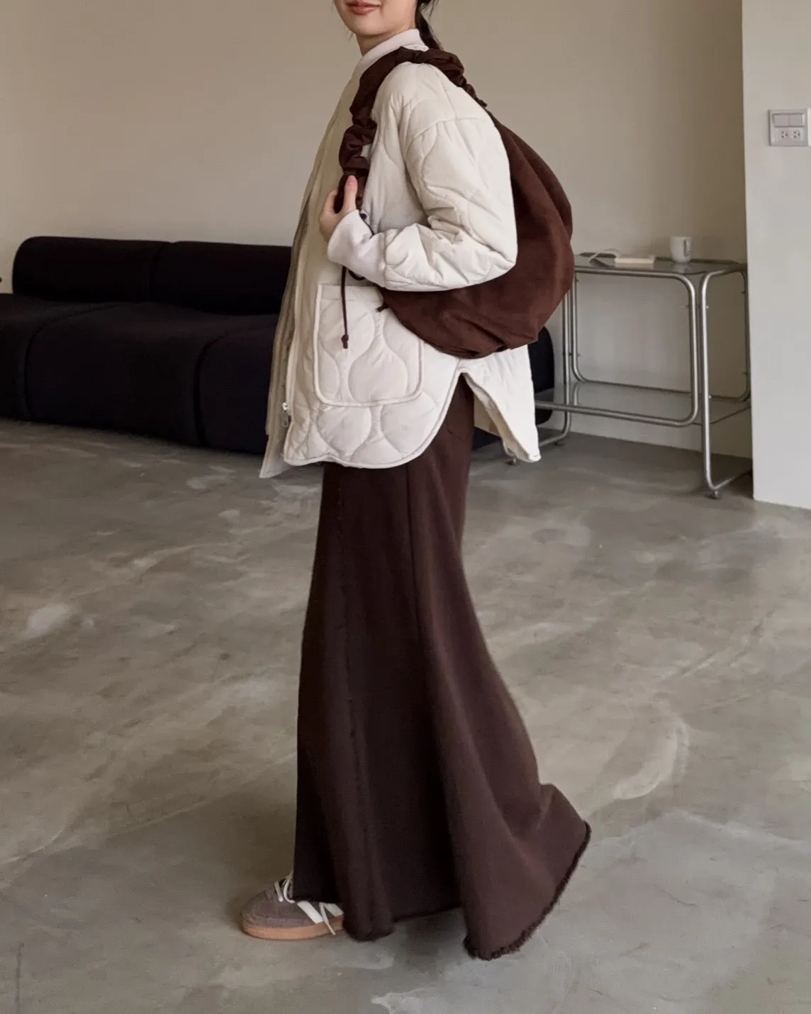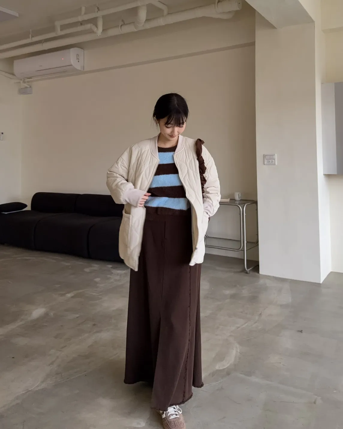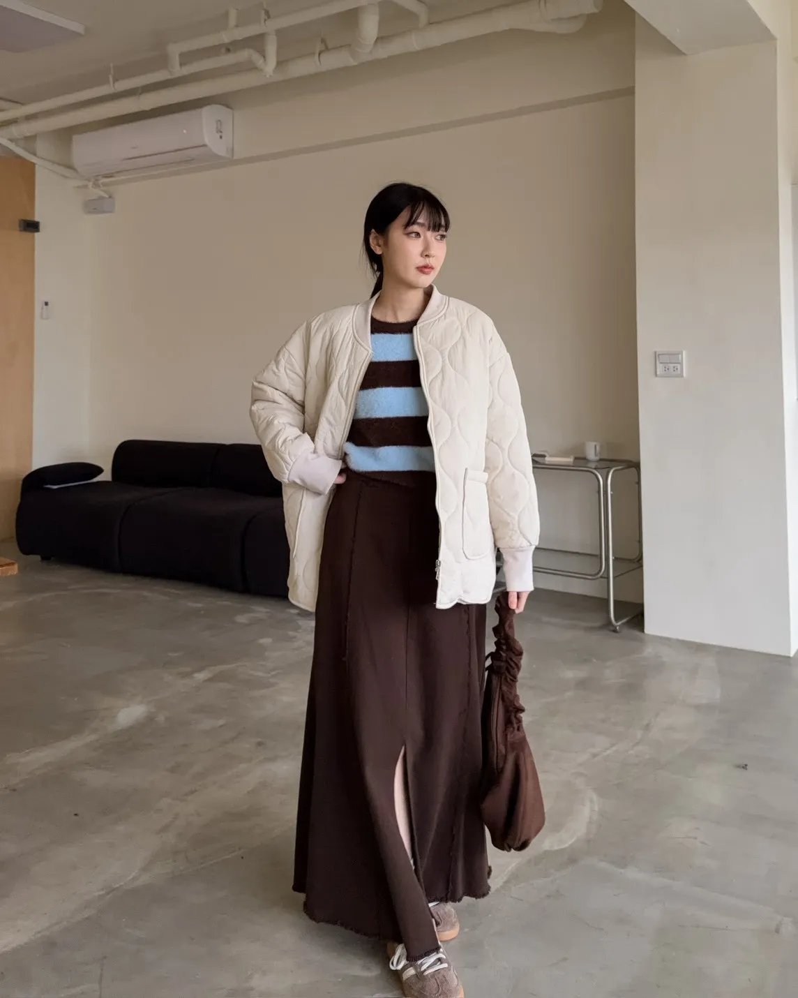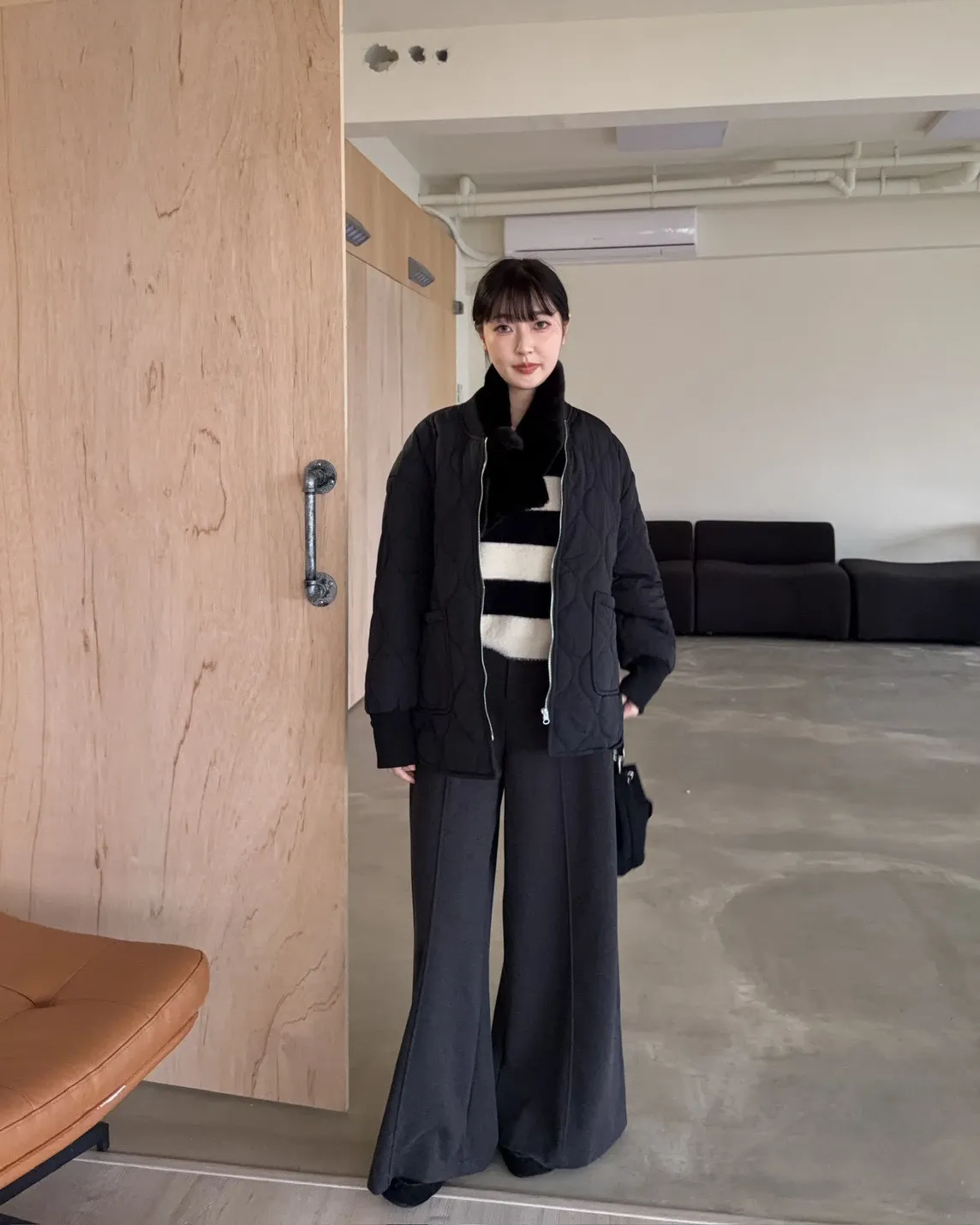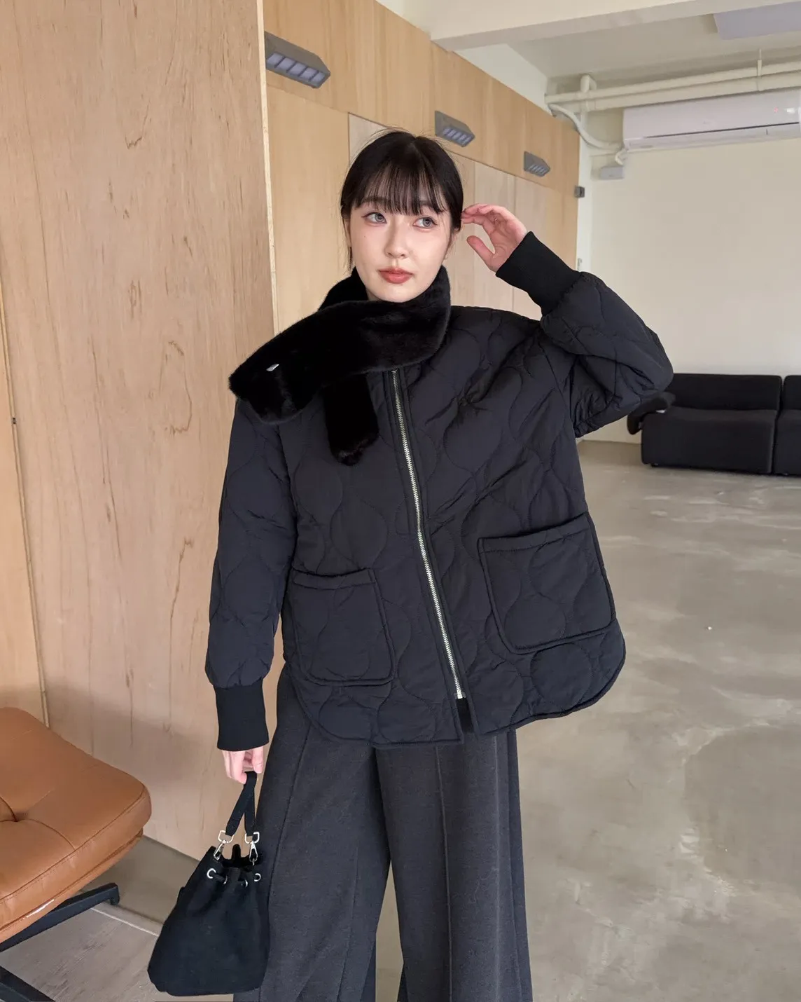 Y0023日系衍縫無領鋪棉外套(杏/黑)