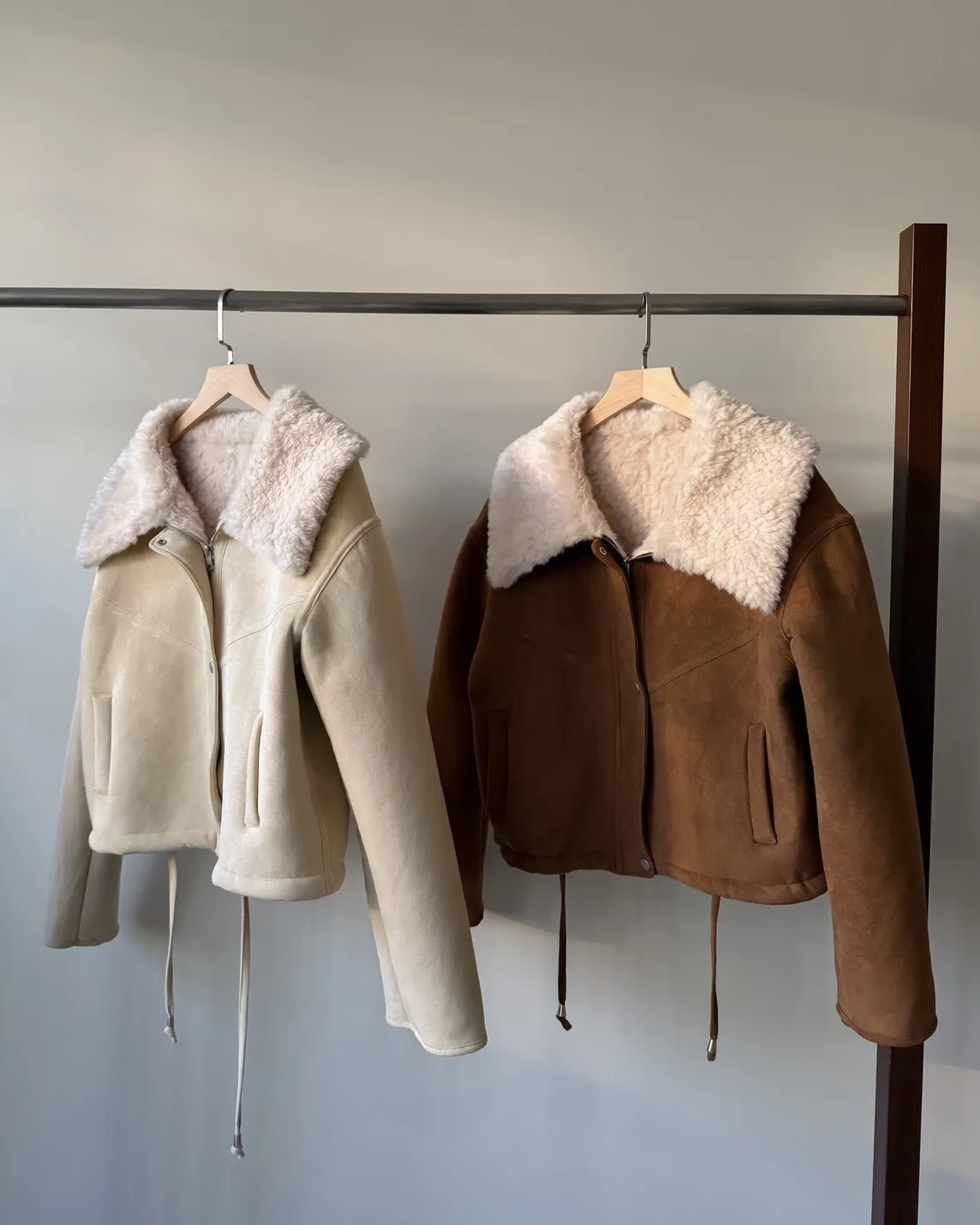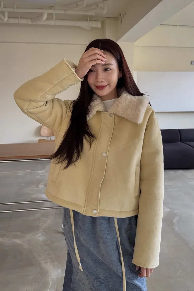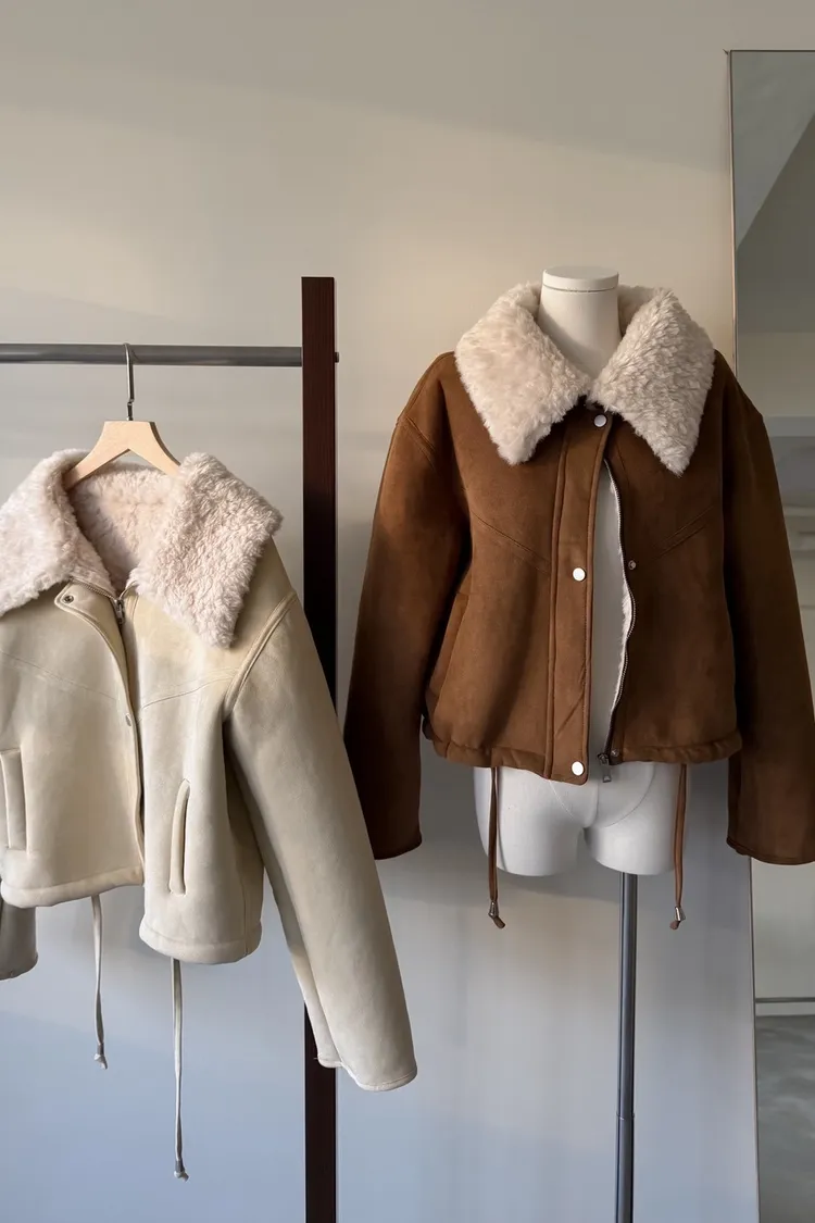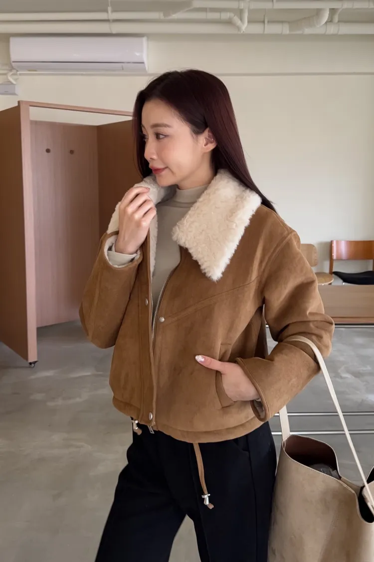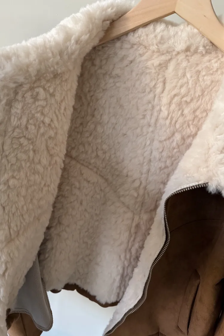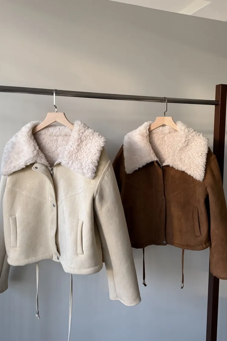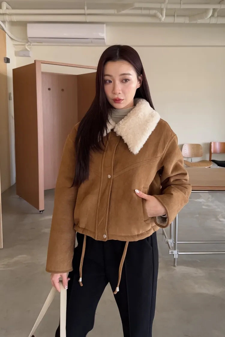 X0018冬日暖暖鋪毛翻領麂皮外套(杏/咖啡)(售完不補)