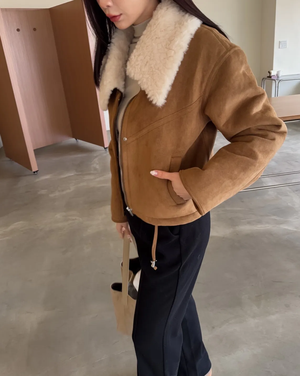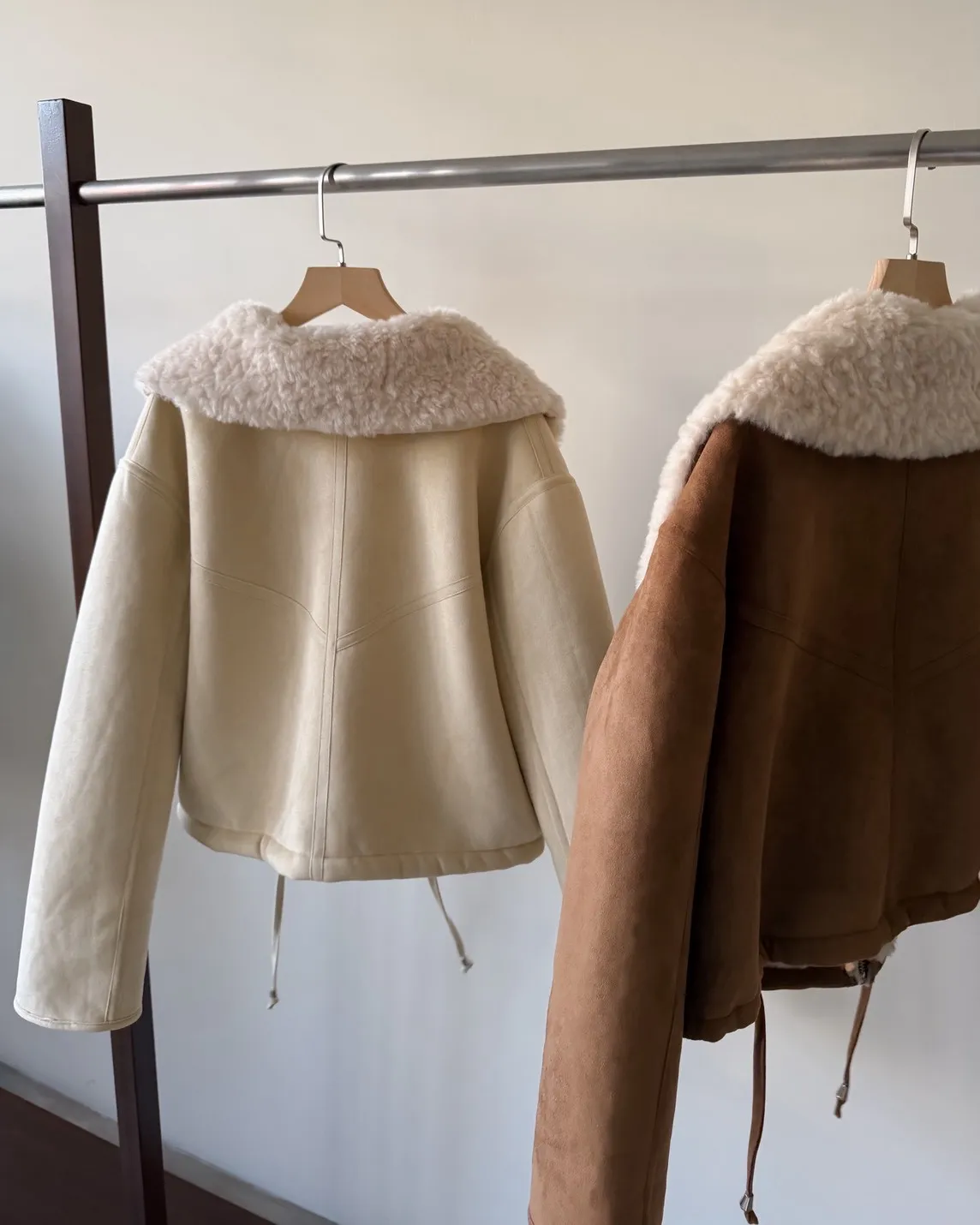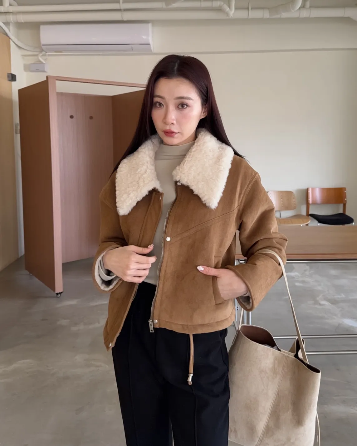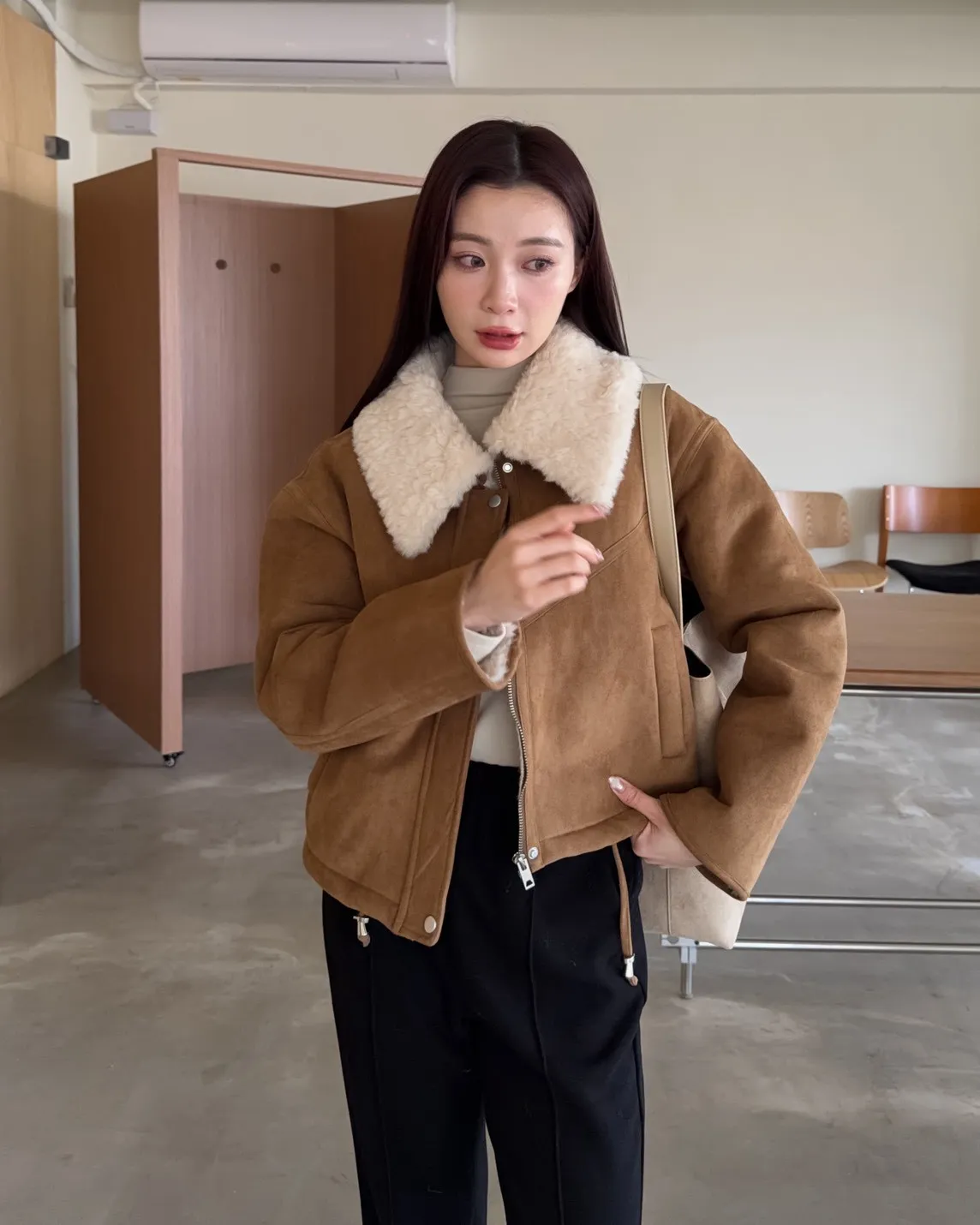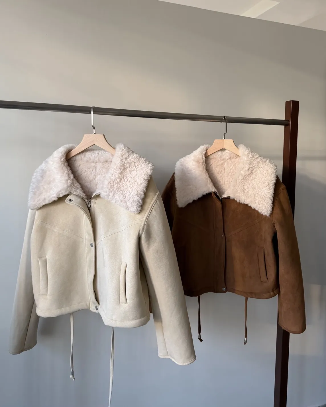X0018冬日暖暖鋪毛翻領麂皮外套(杏/咖啡)(售完不補)