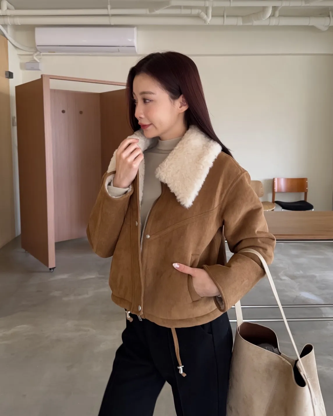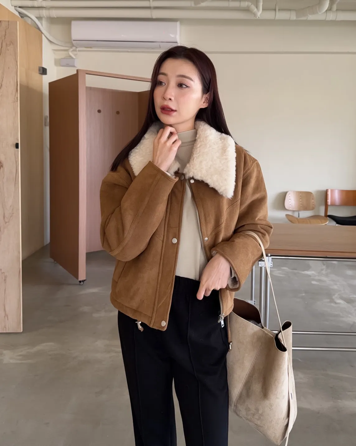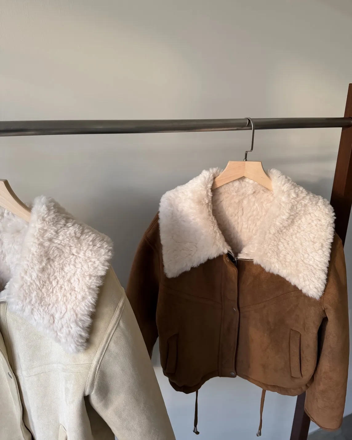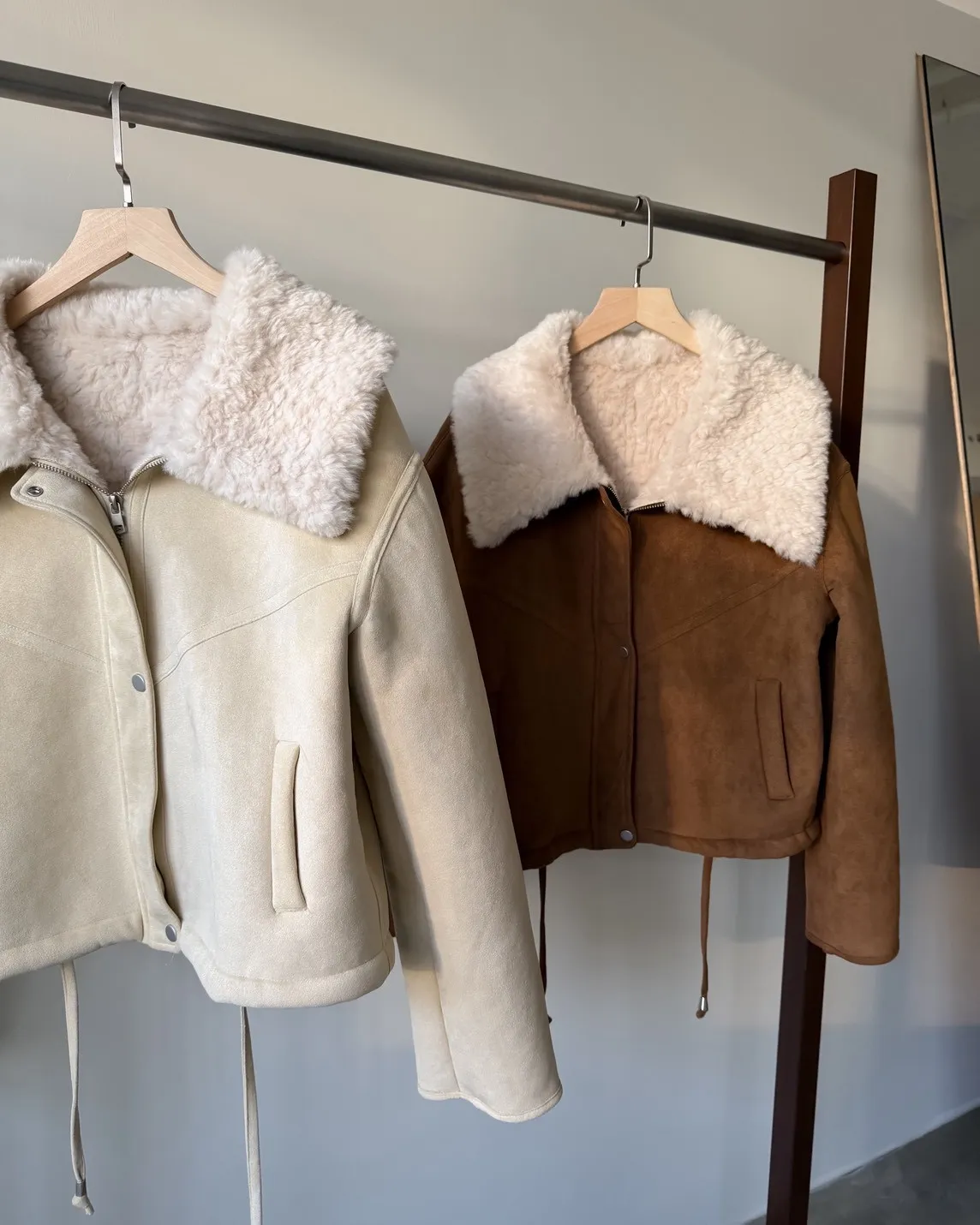 X0018冬日暖暖鋪毛翻領麂皮外套(杏/咖啡)(售完不補)
