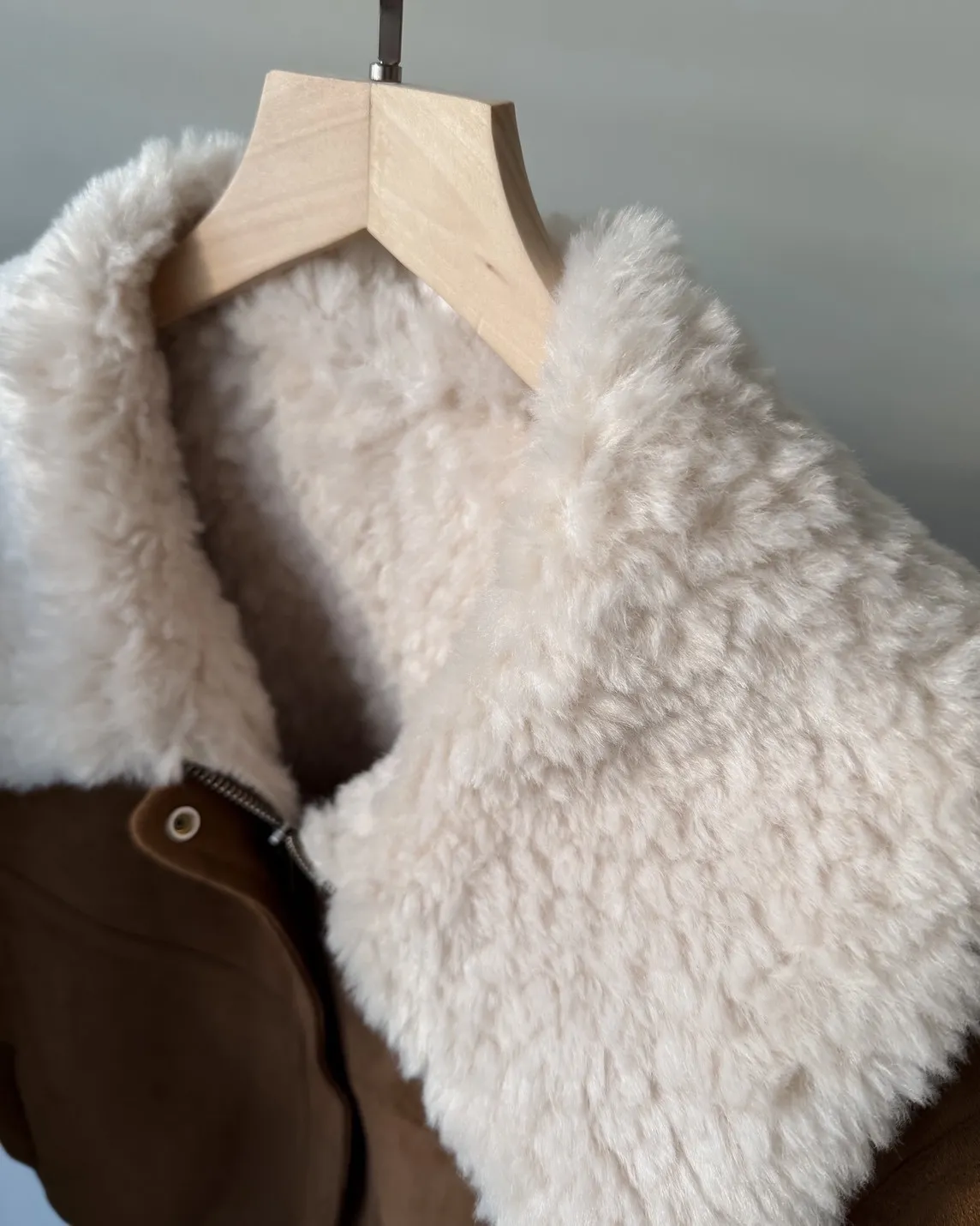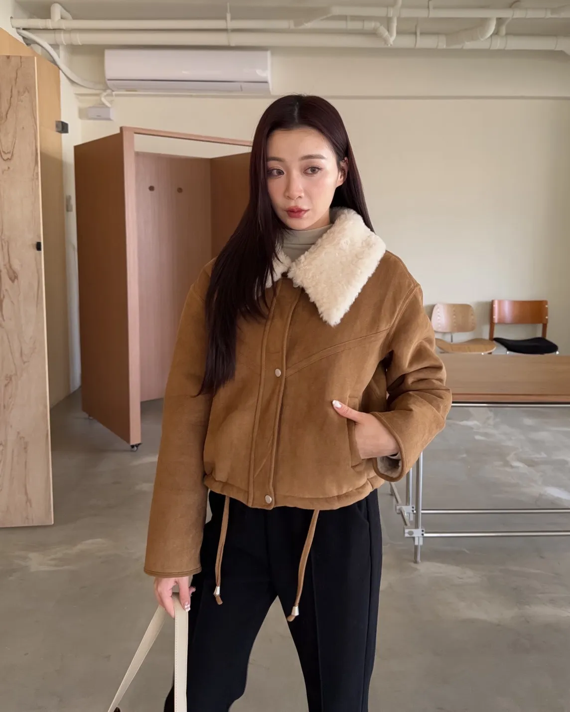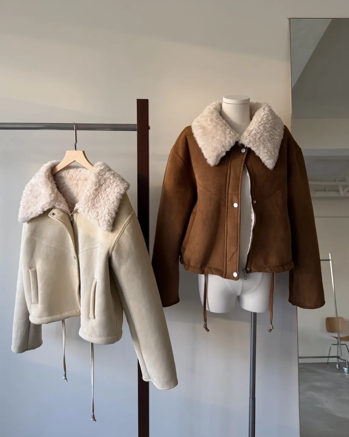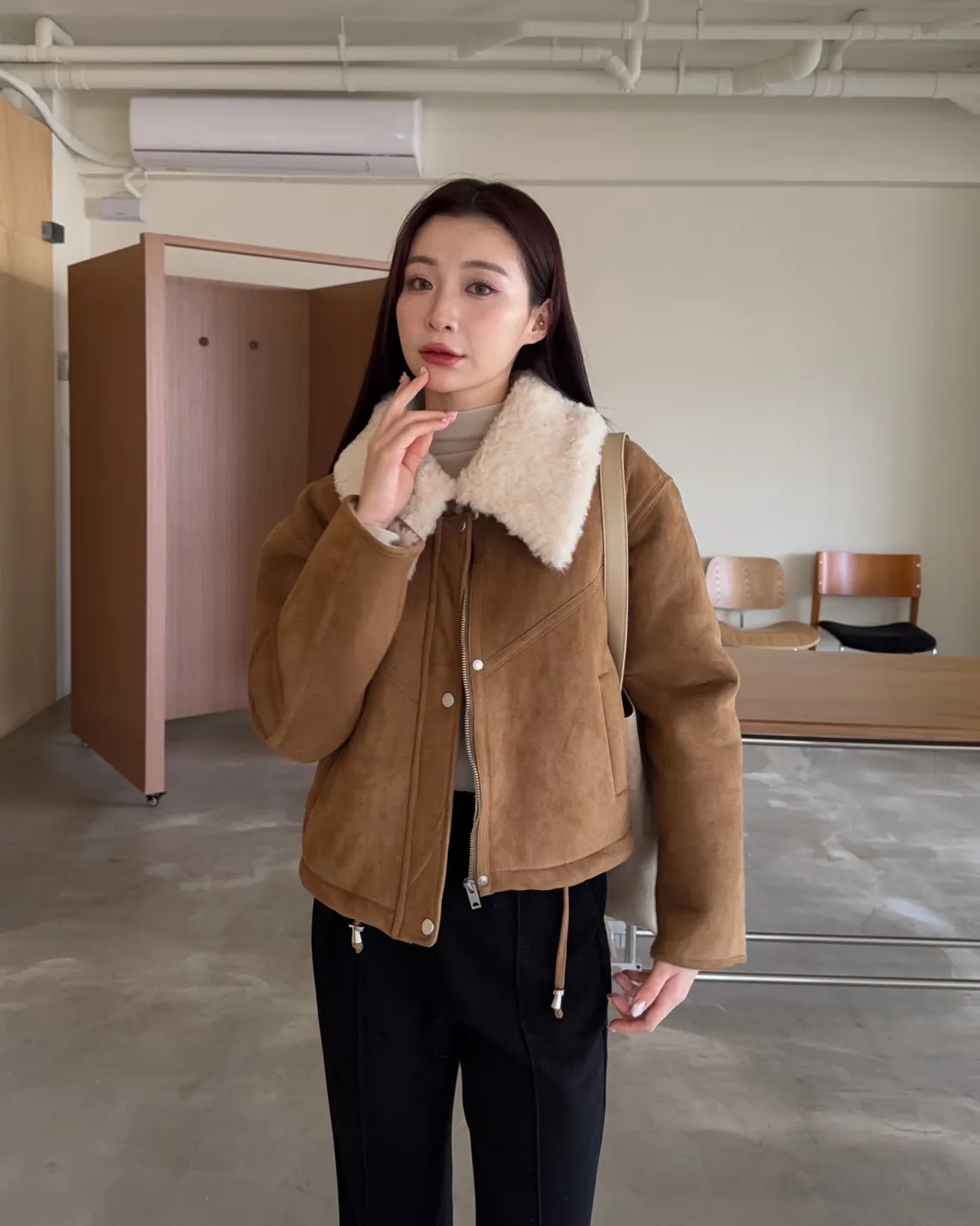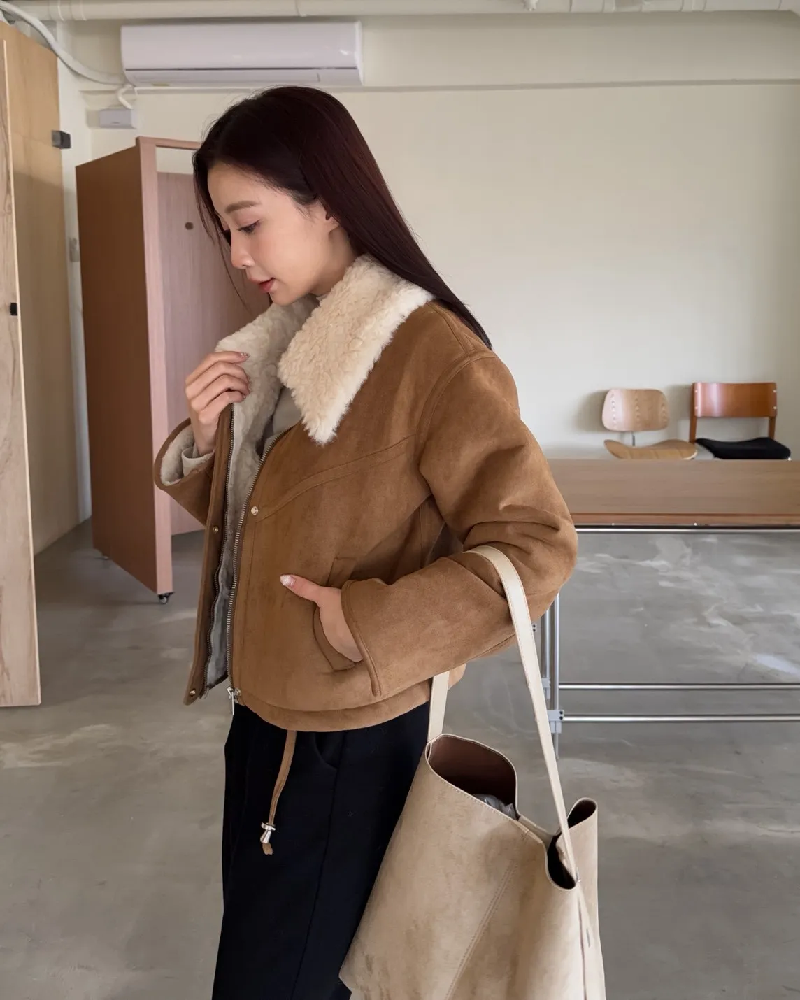X0018冬日暖暖鋪毛翻領麂皮外套(杏/咖啡)(售完不補)