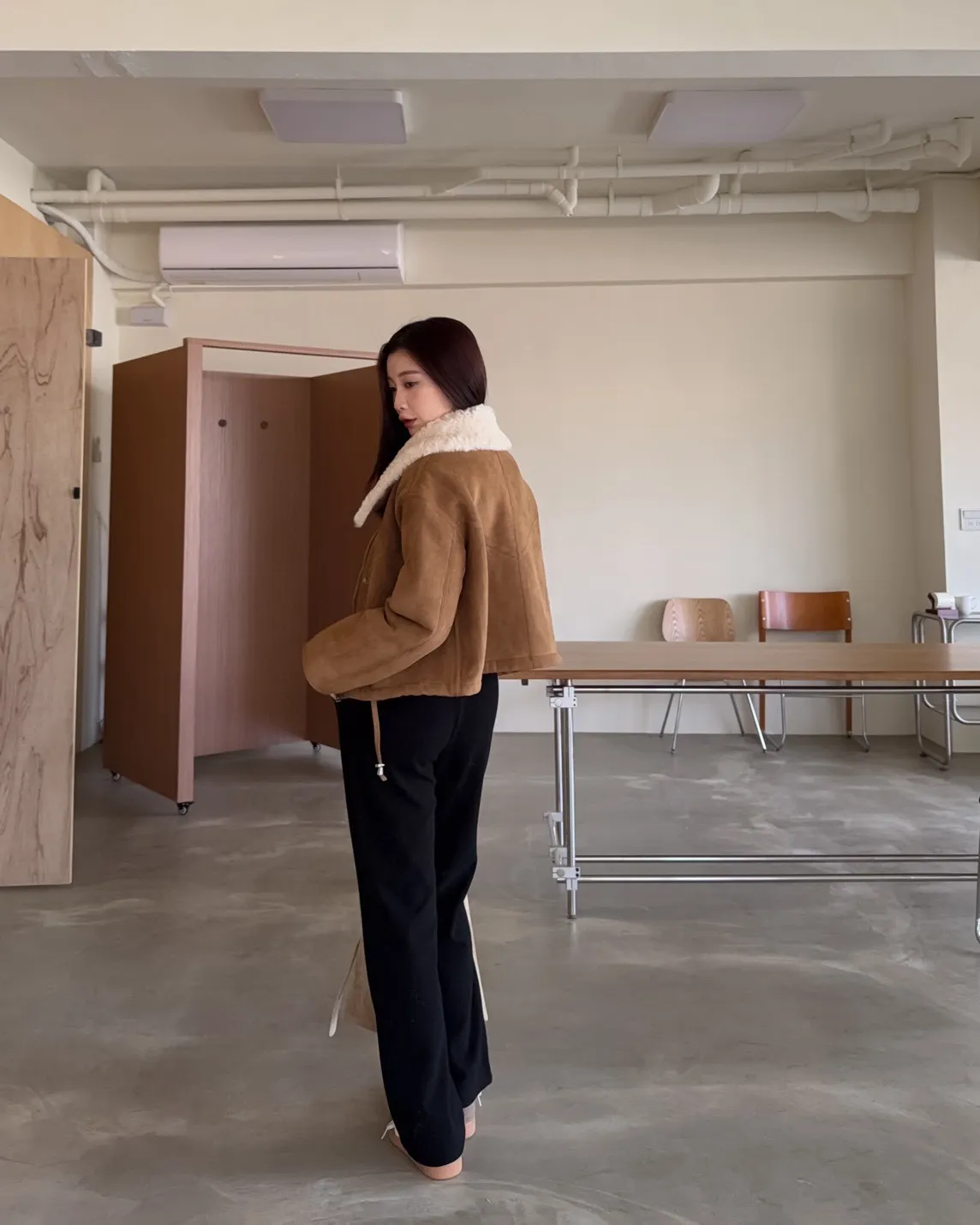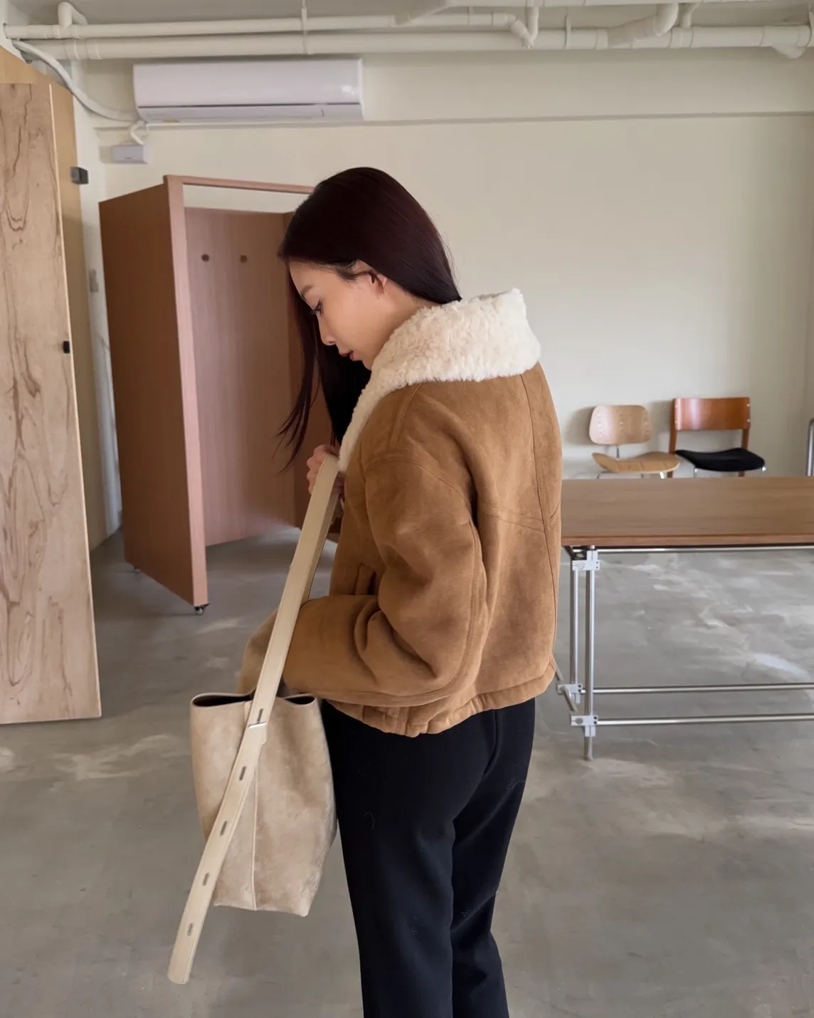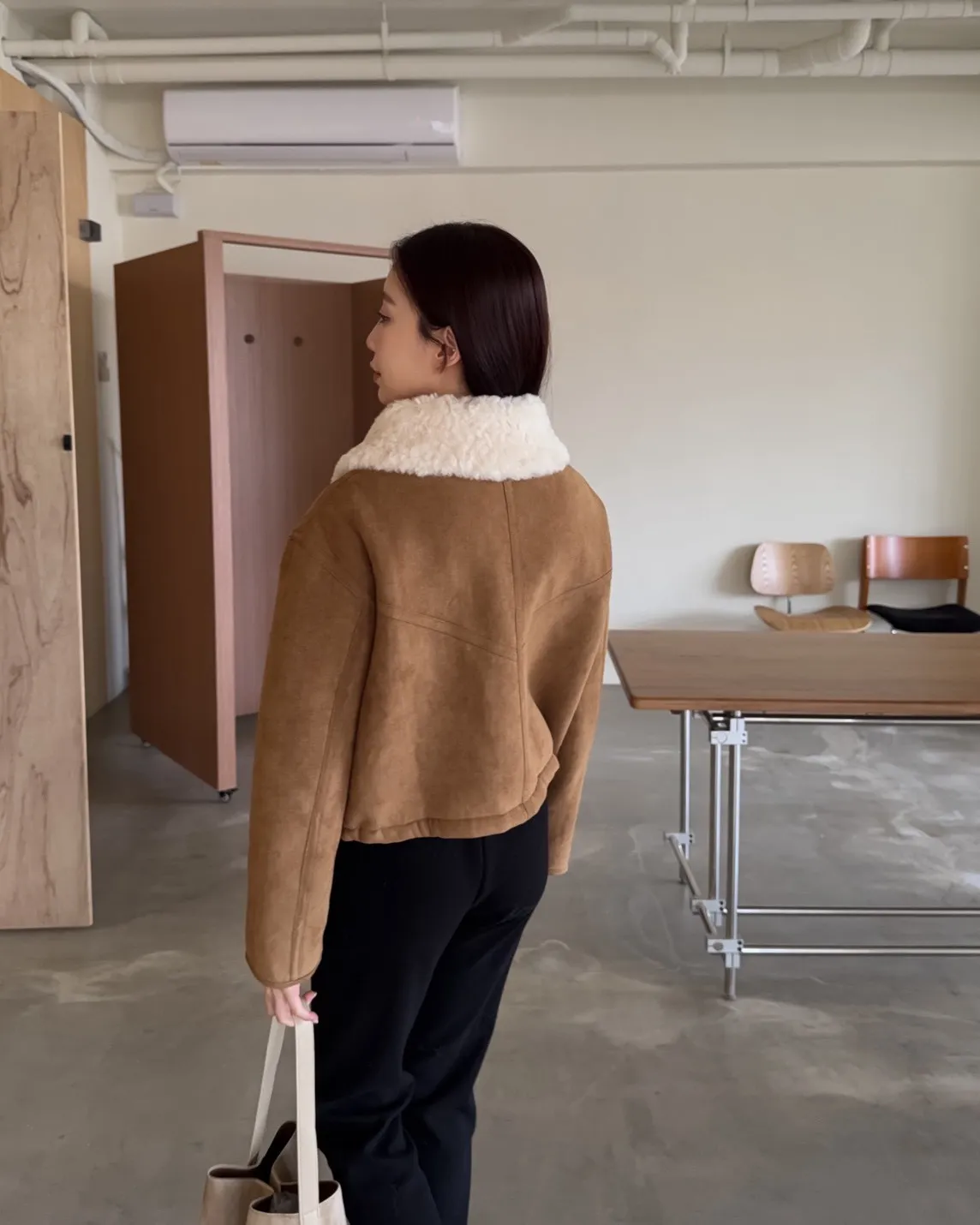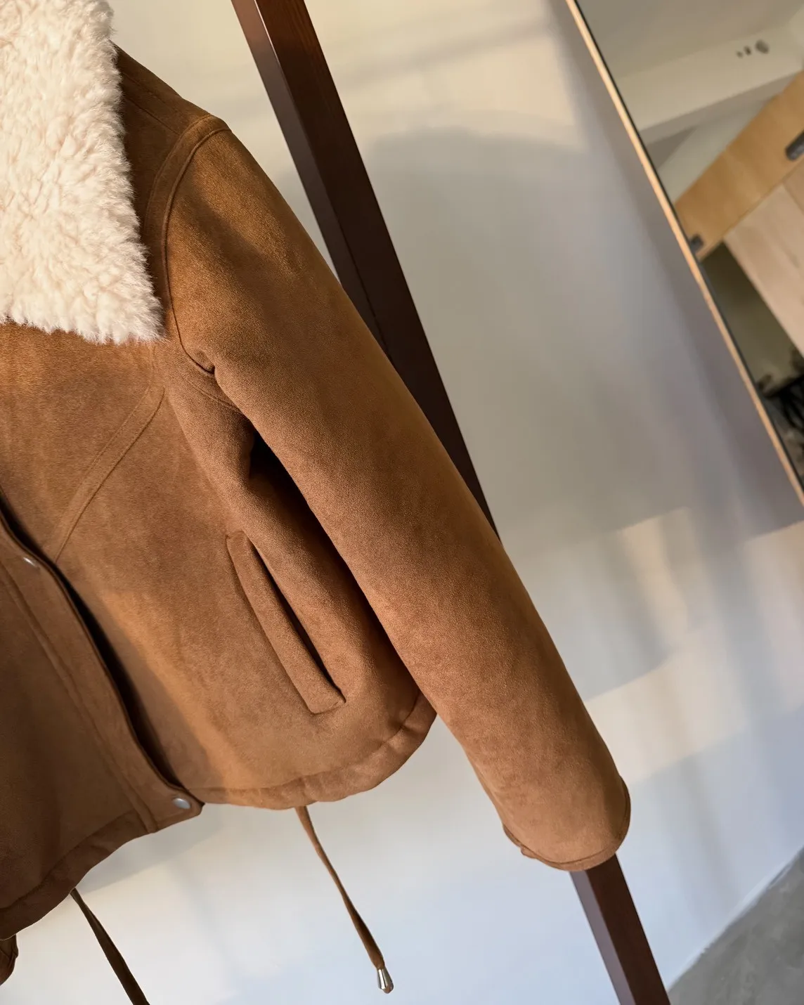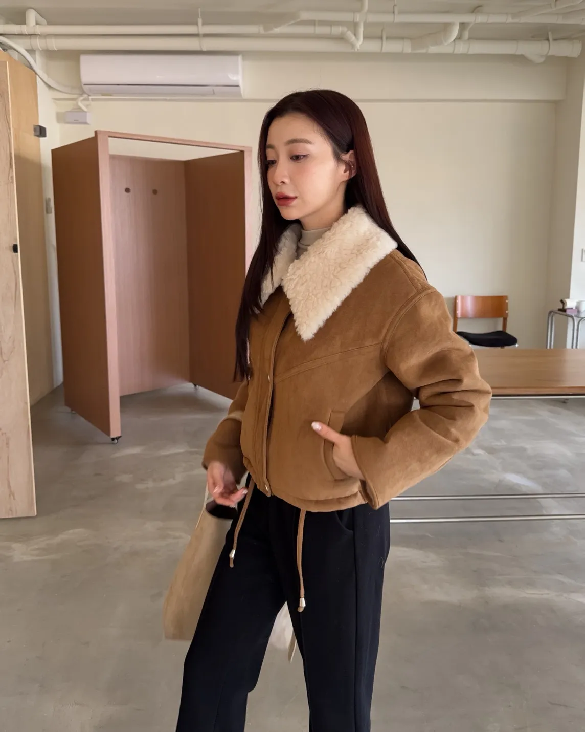 X0018冬日暖暖鋪毛翻領麂皮外套(杏/咖啡)(售完不補)
