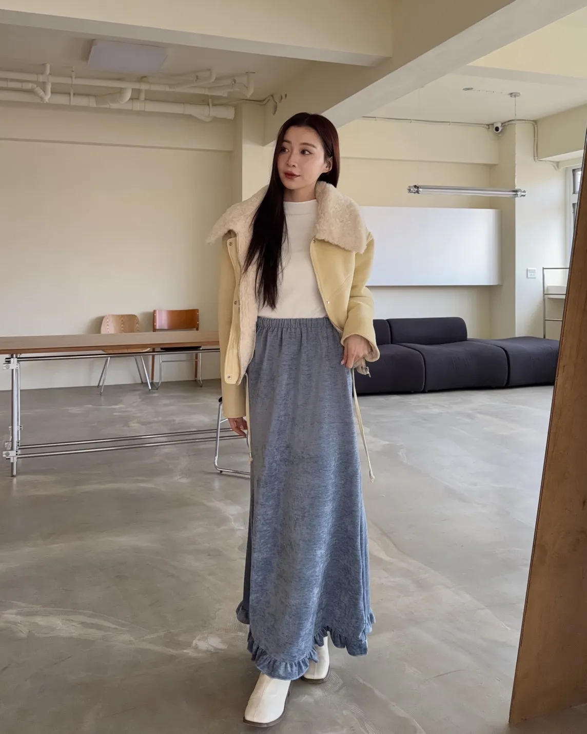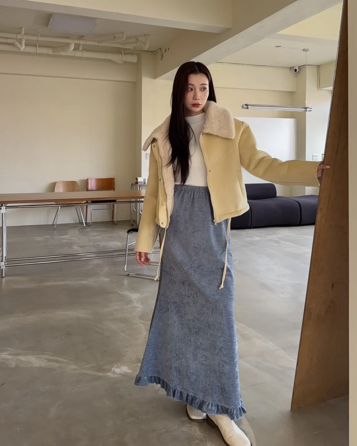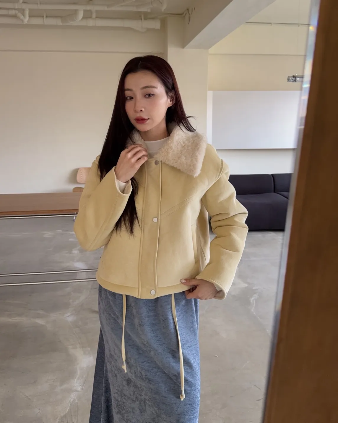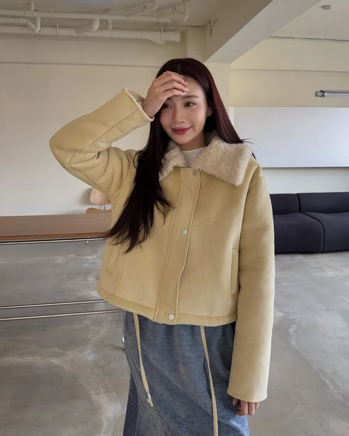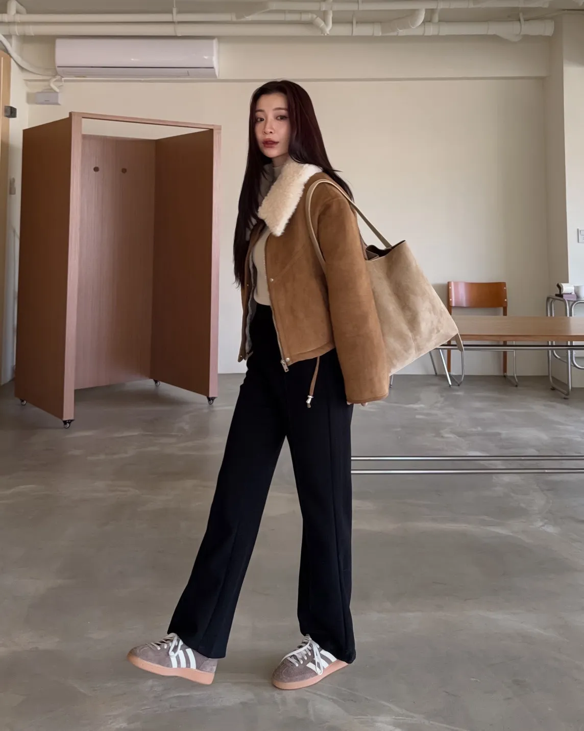 X0018冬日暖暖鋪毛翻領麂皮外套(杏/咖啡)(售完不補)