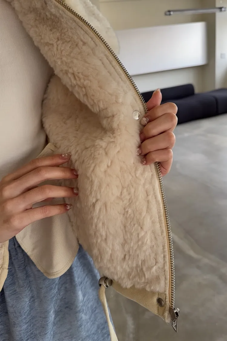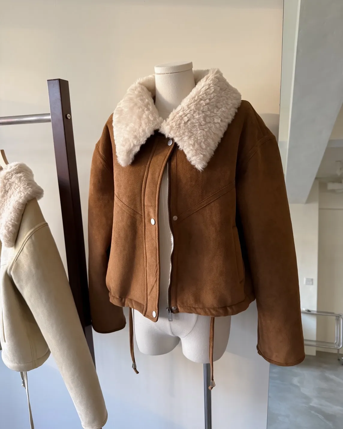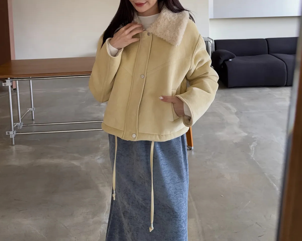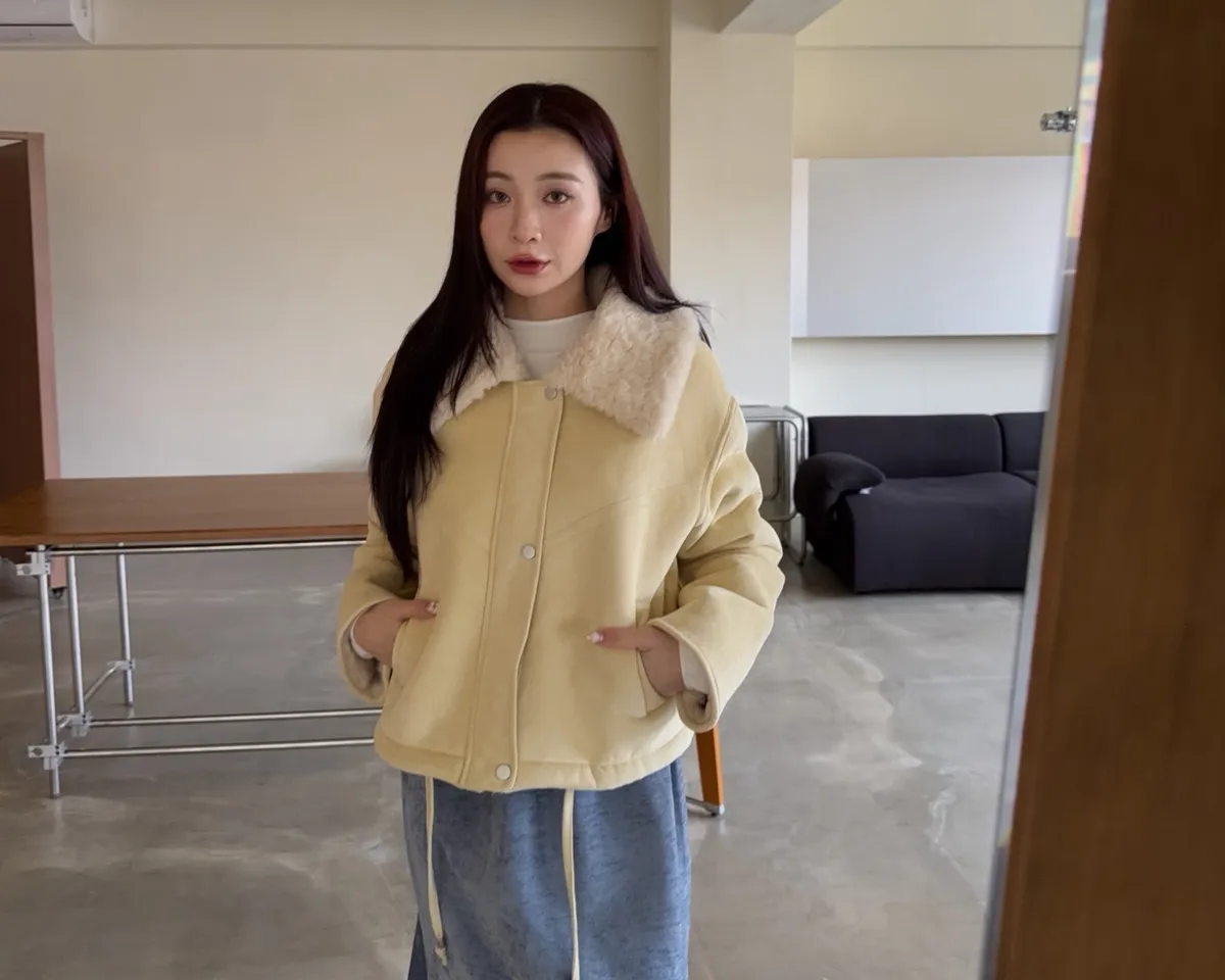 超級暖鋪毛 翻領 叮叮扣+拉鍊 兩側口袋 麂皮 下擺抽繩可縮緊