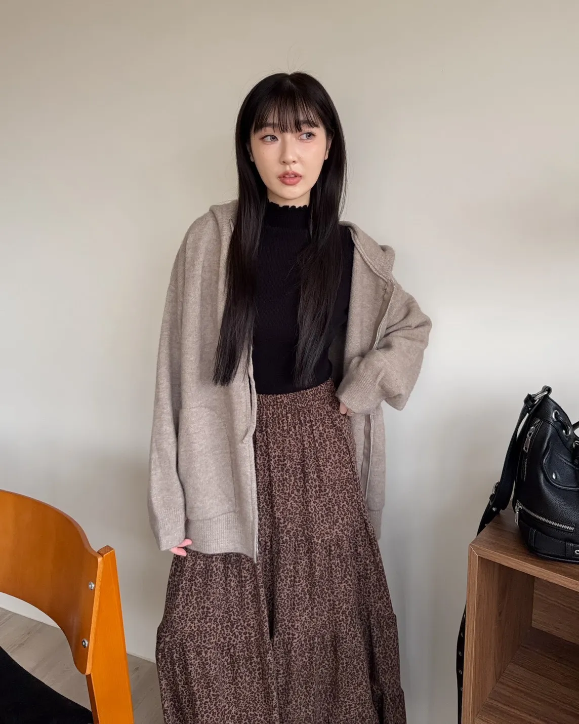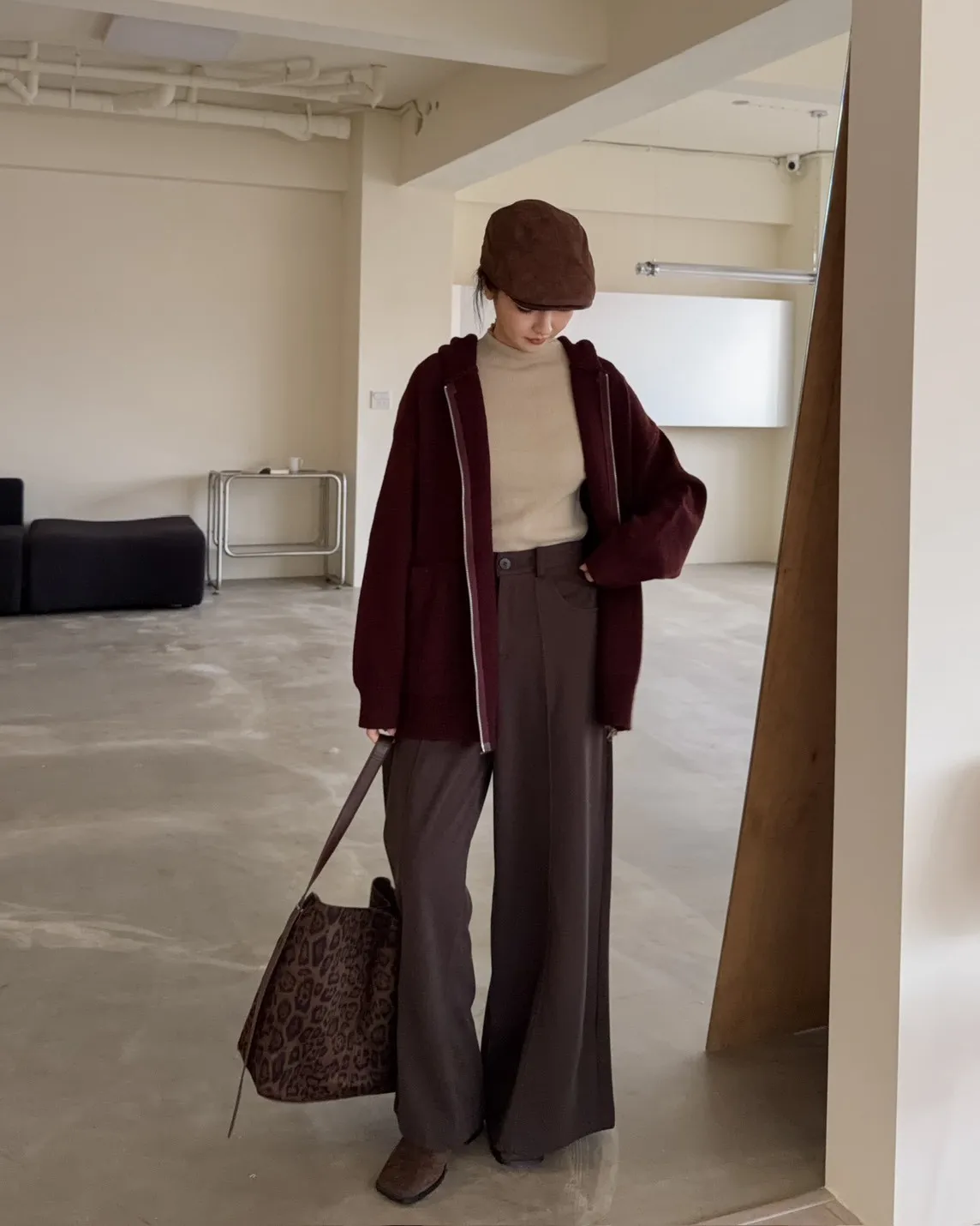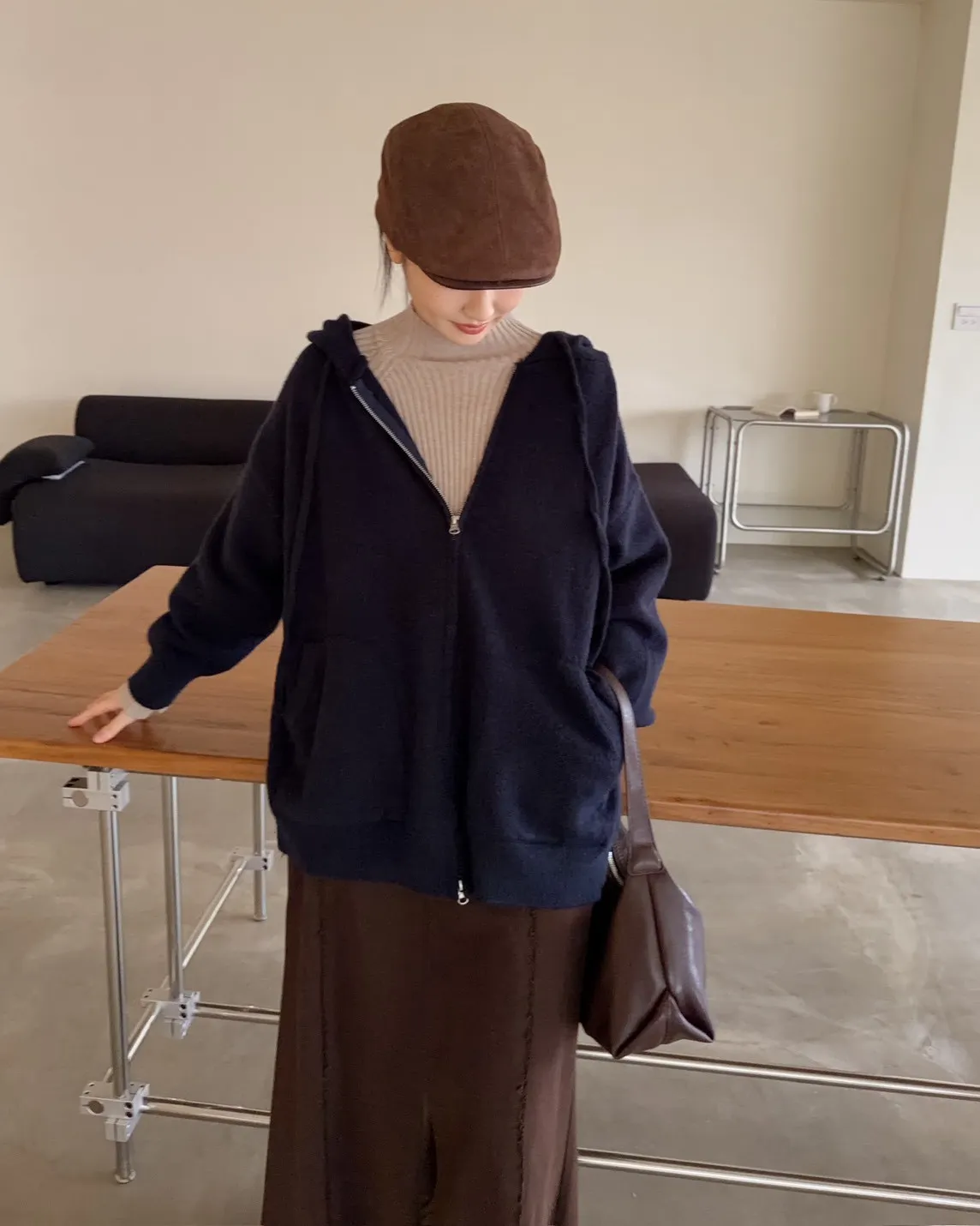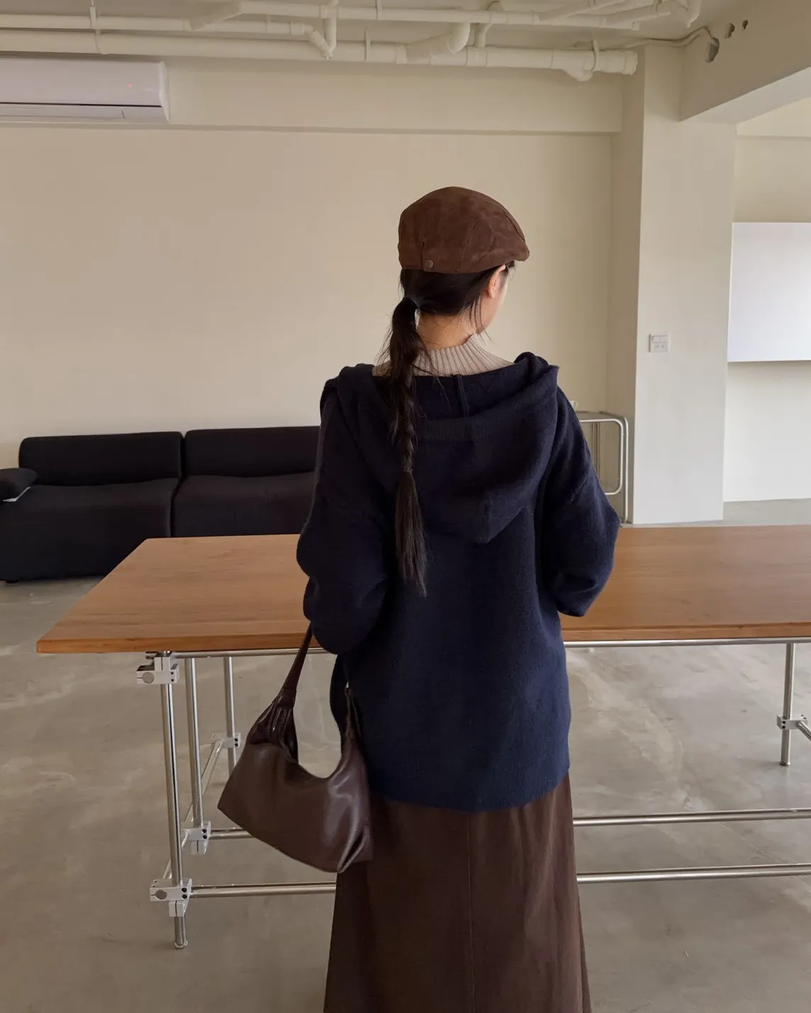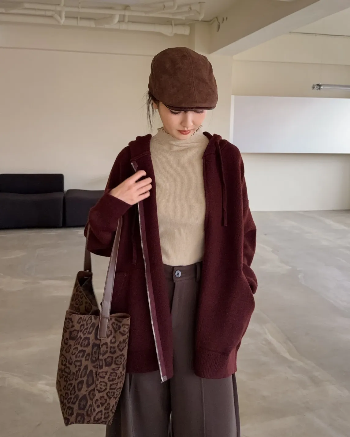 Y0007(五色)慵懶感雙拉鍊連帽針織外套(灰/可可/紅/咖啡/深藍)