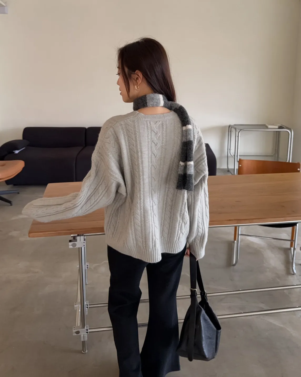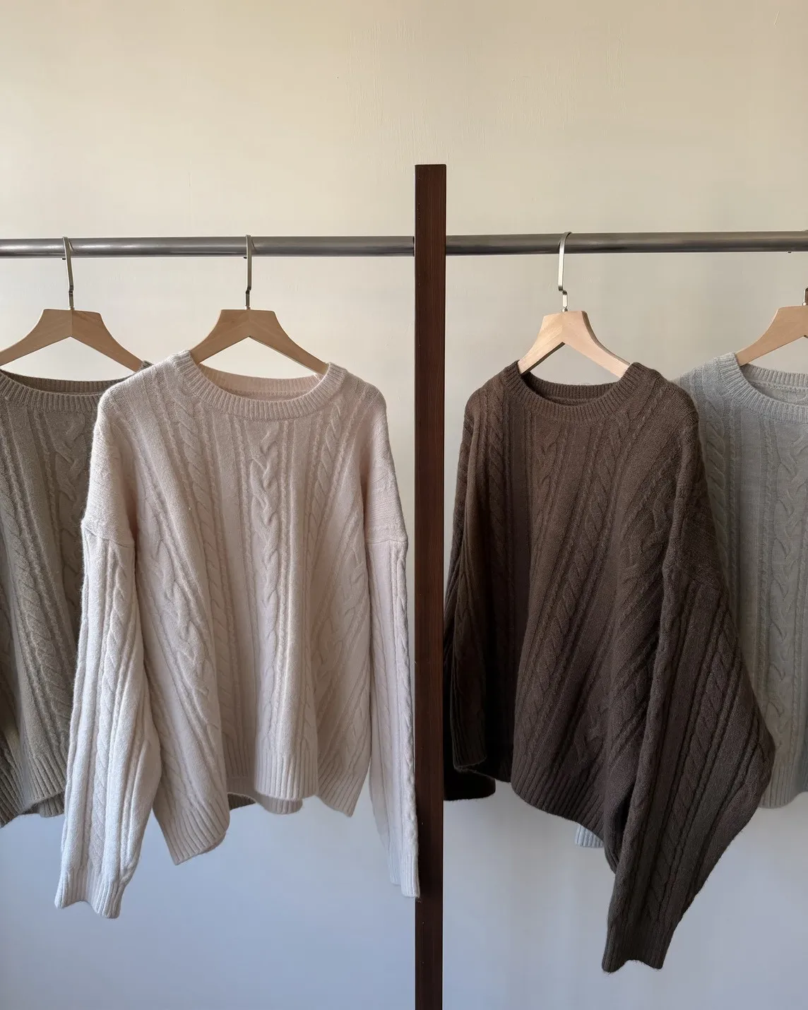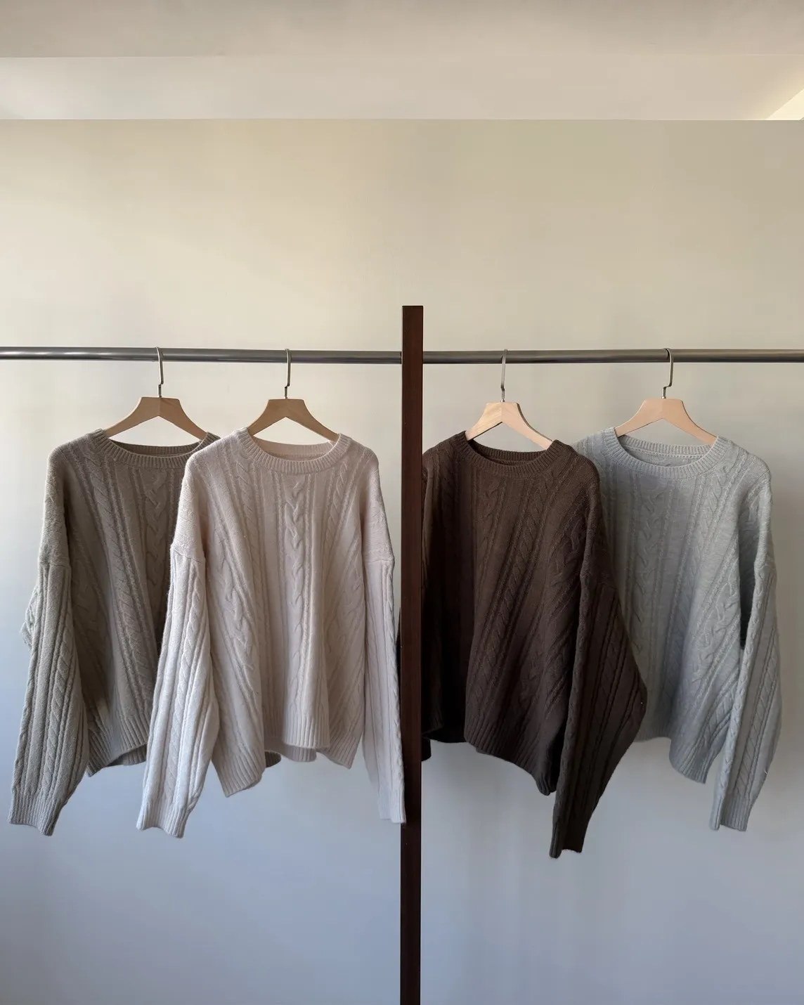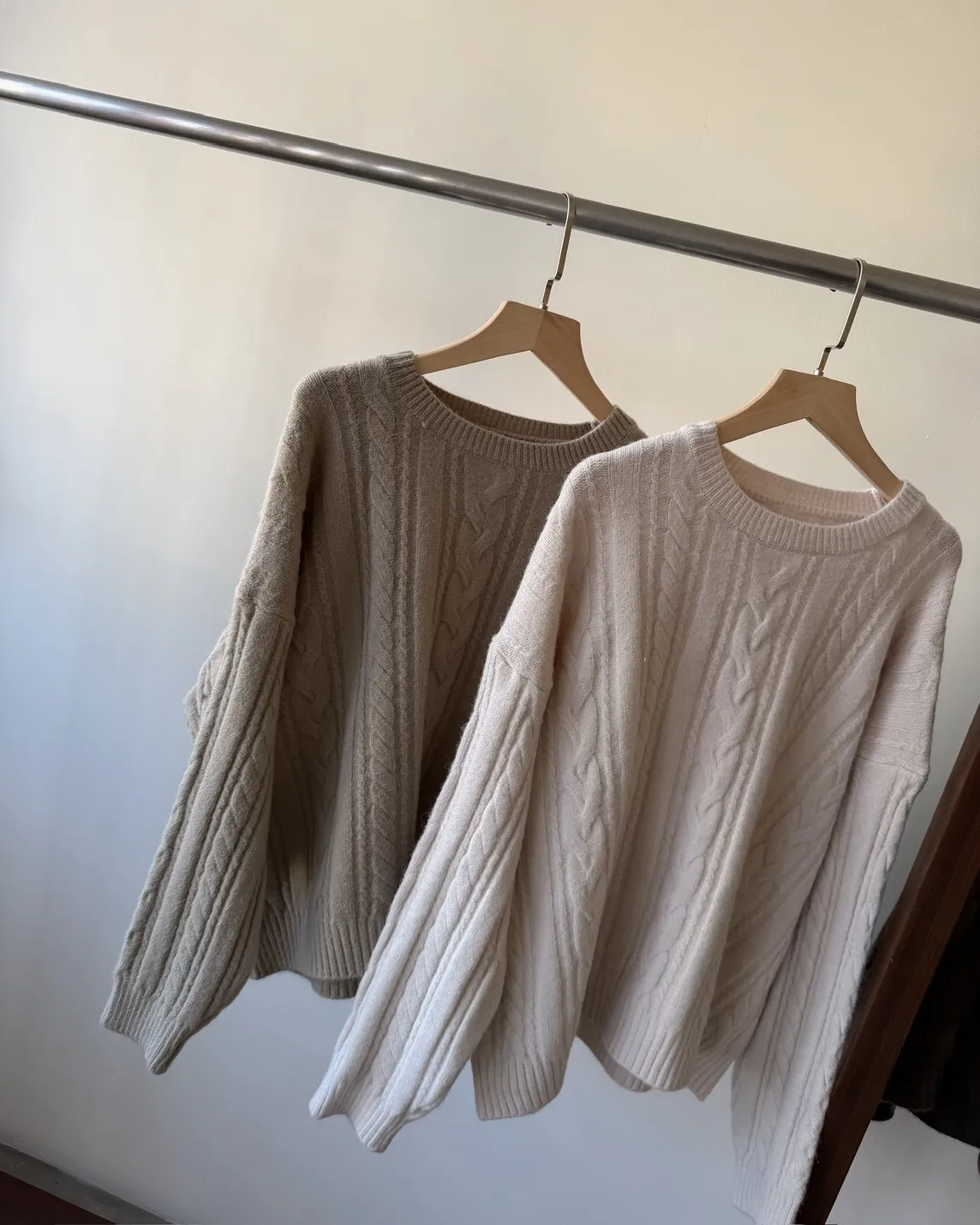 X0036文藝編織麻花辮毛衣(杏/咖啡/綠/灰)