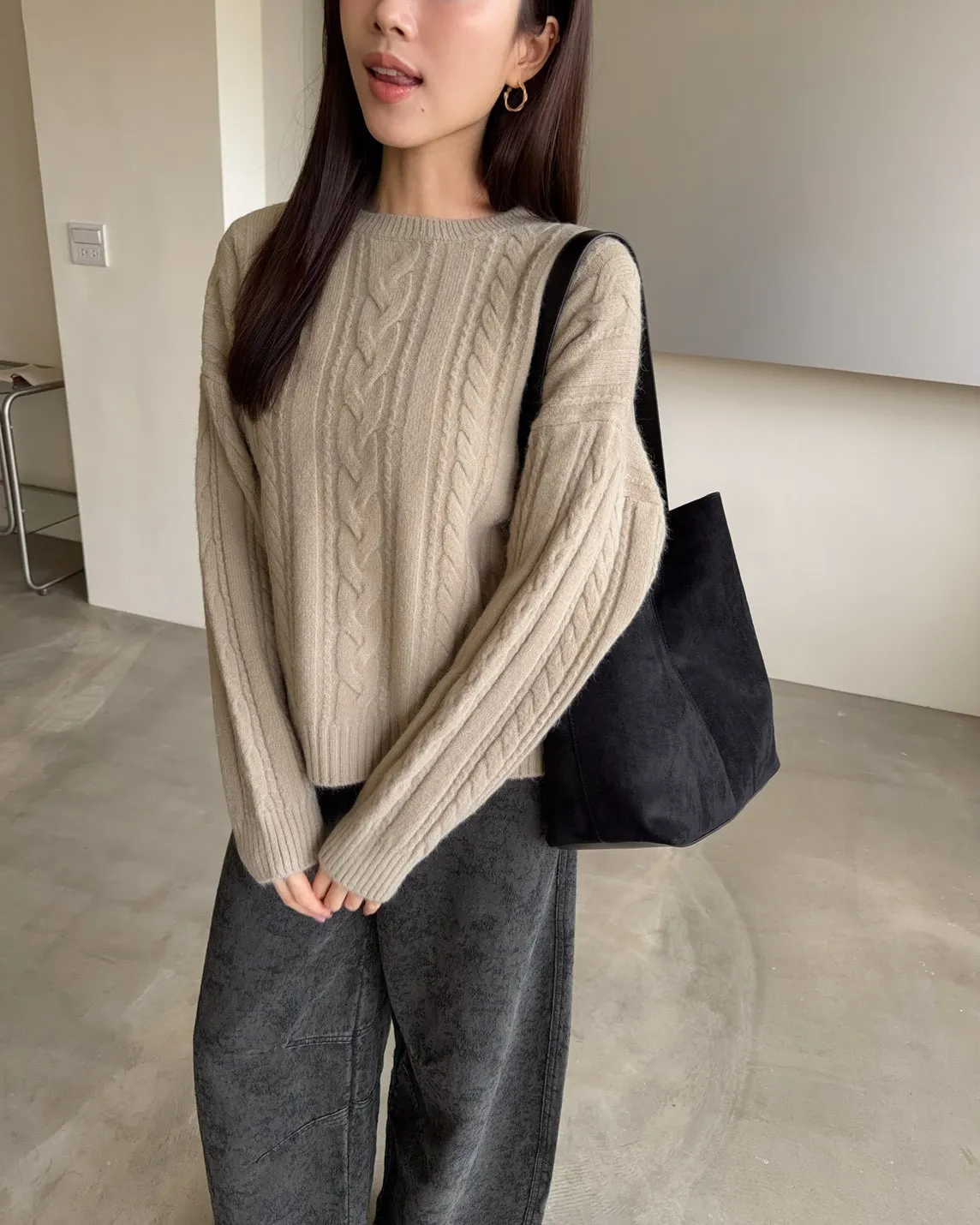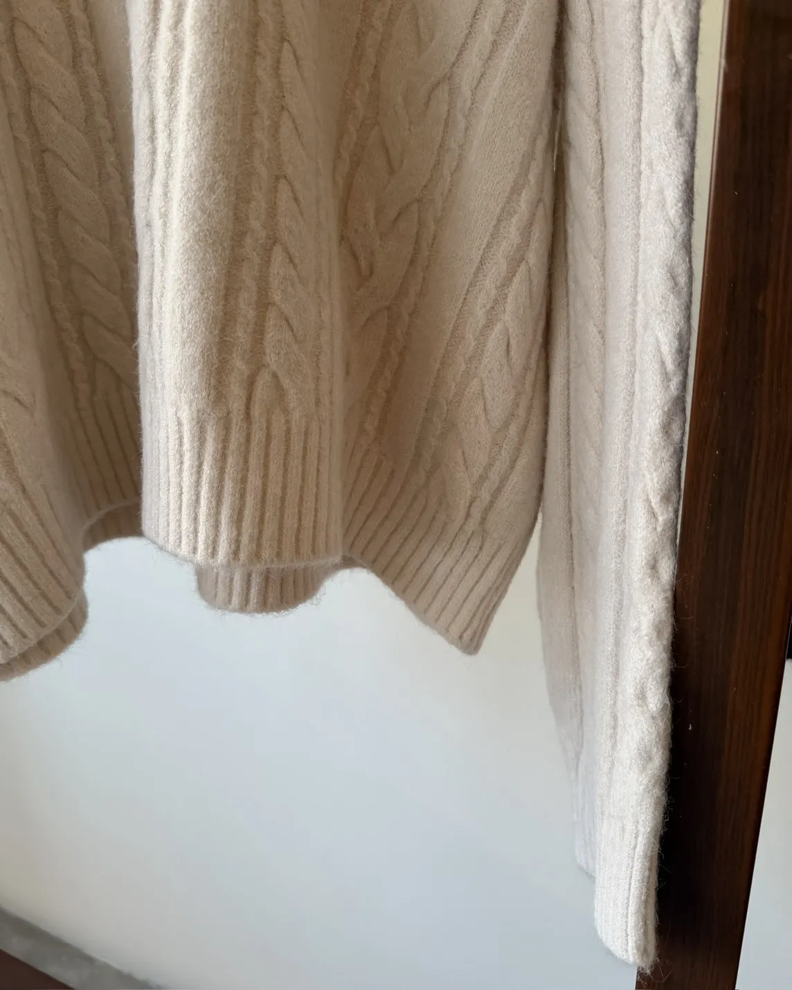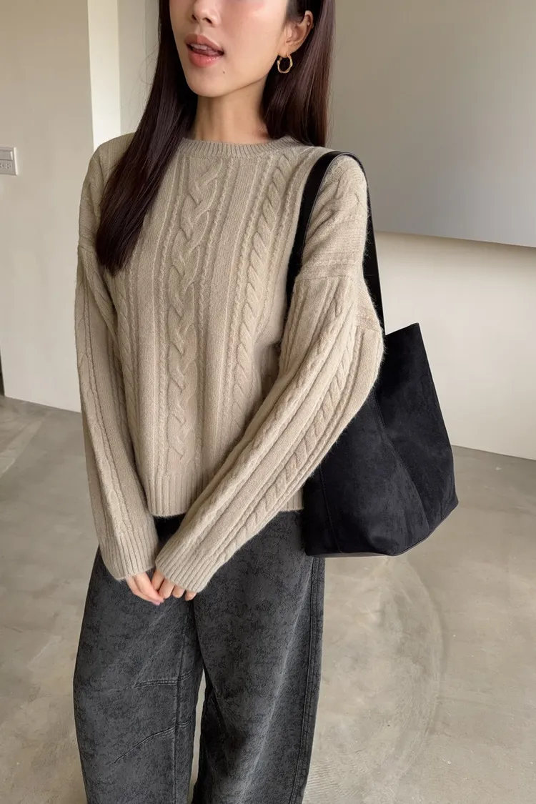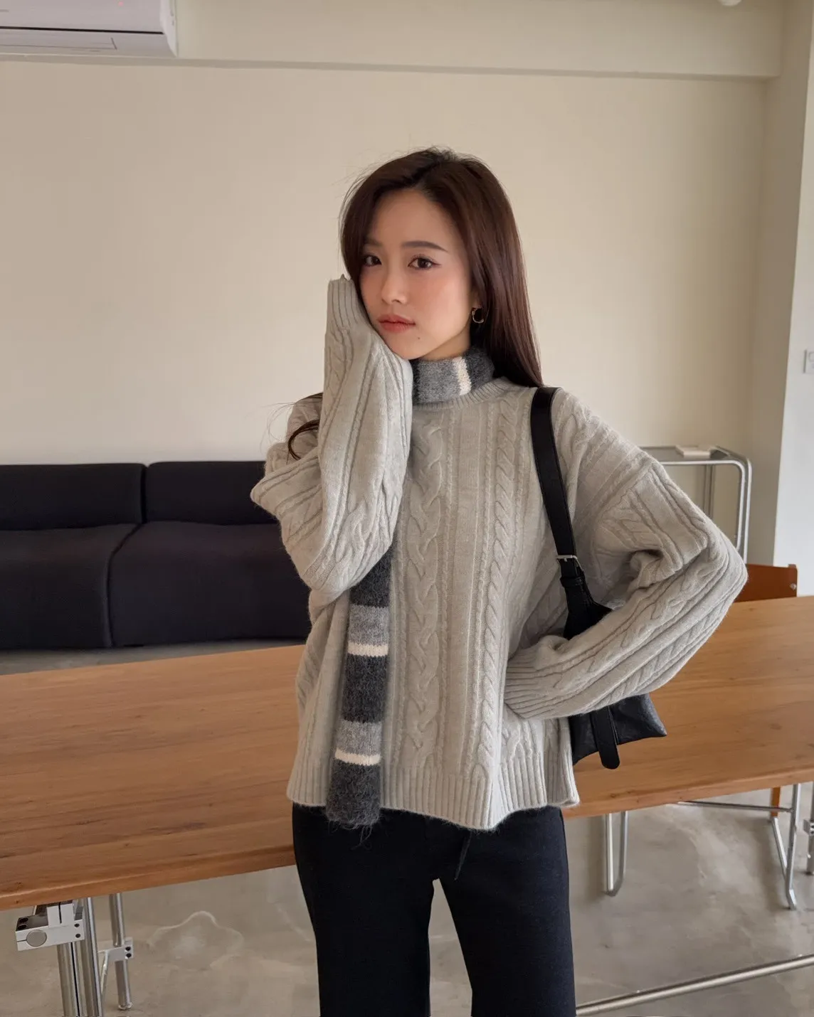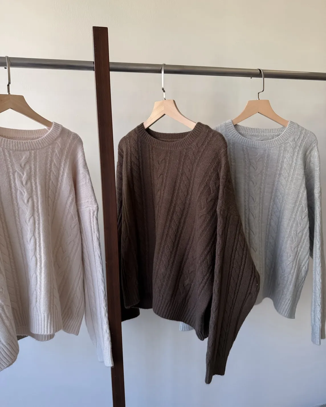 X0036文藝編織麻花辮毛衣(杏/咖啡/綠/灰)