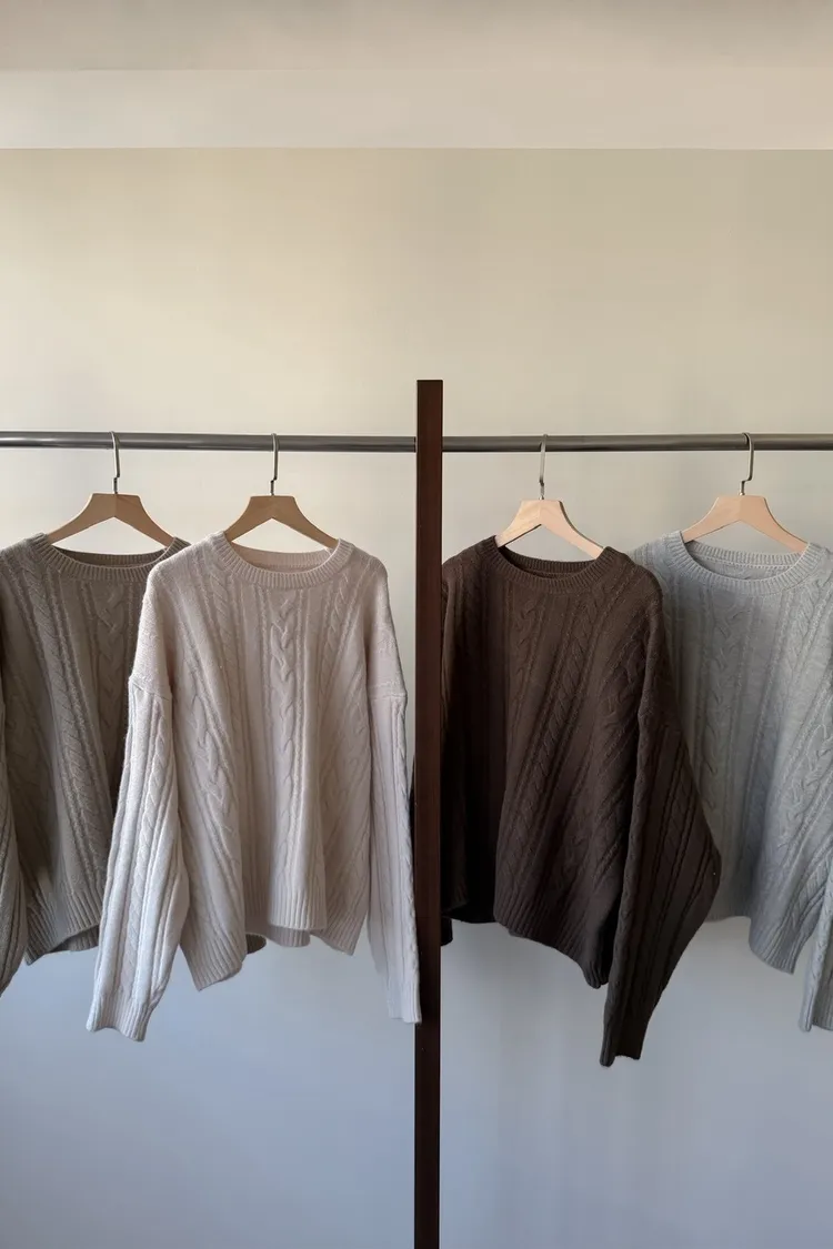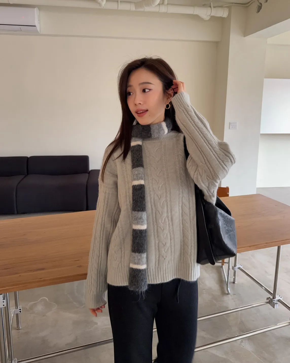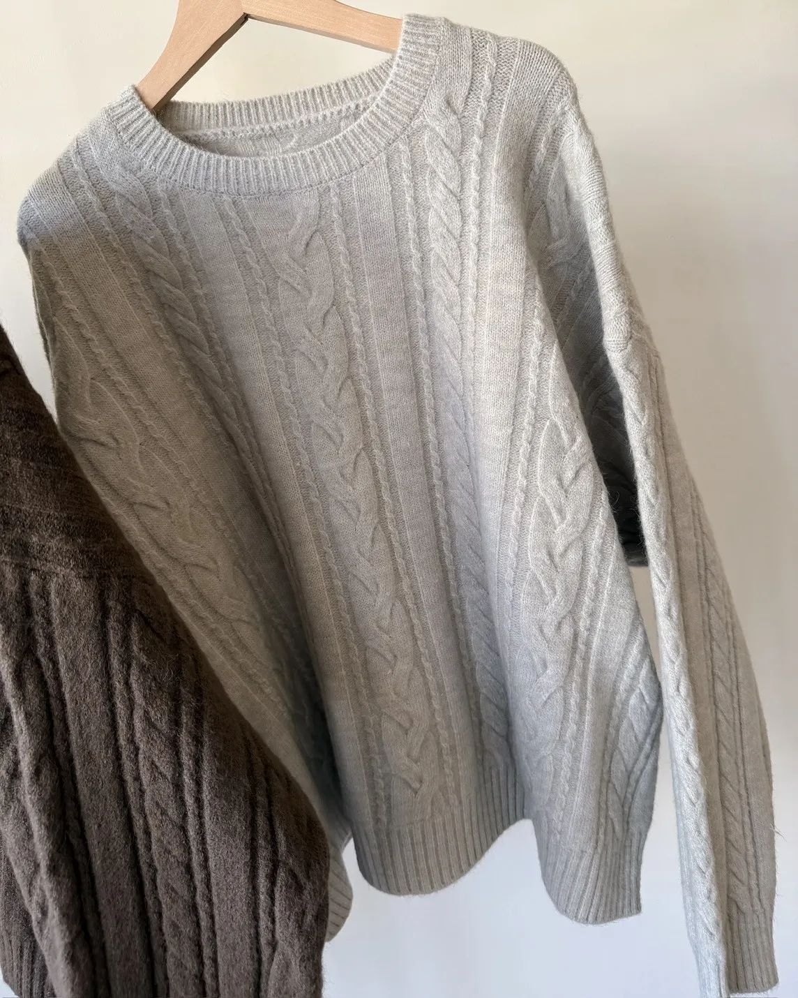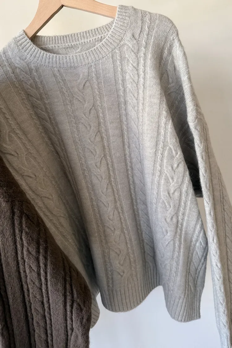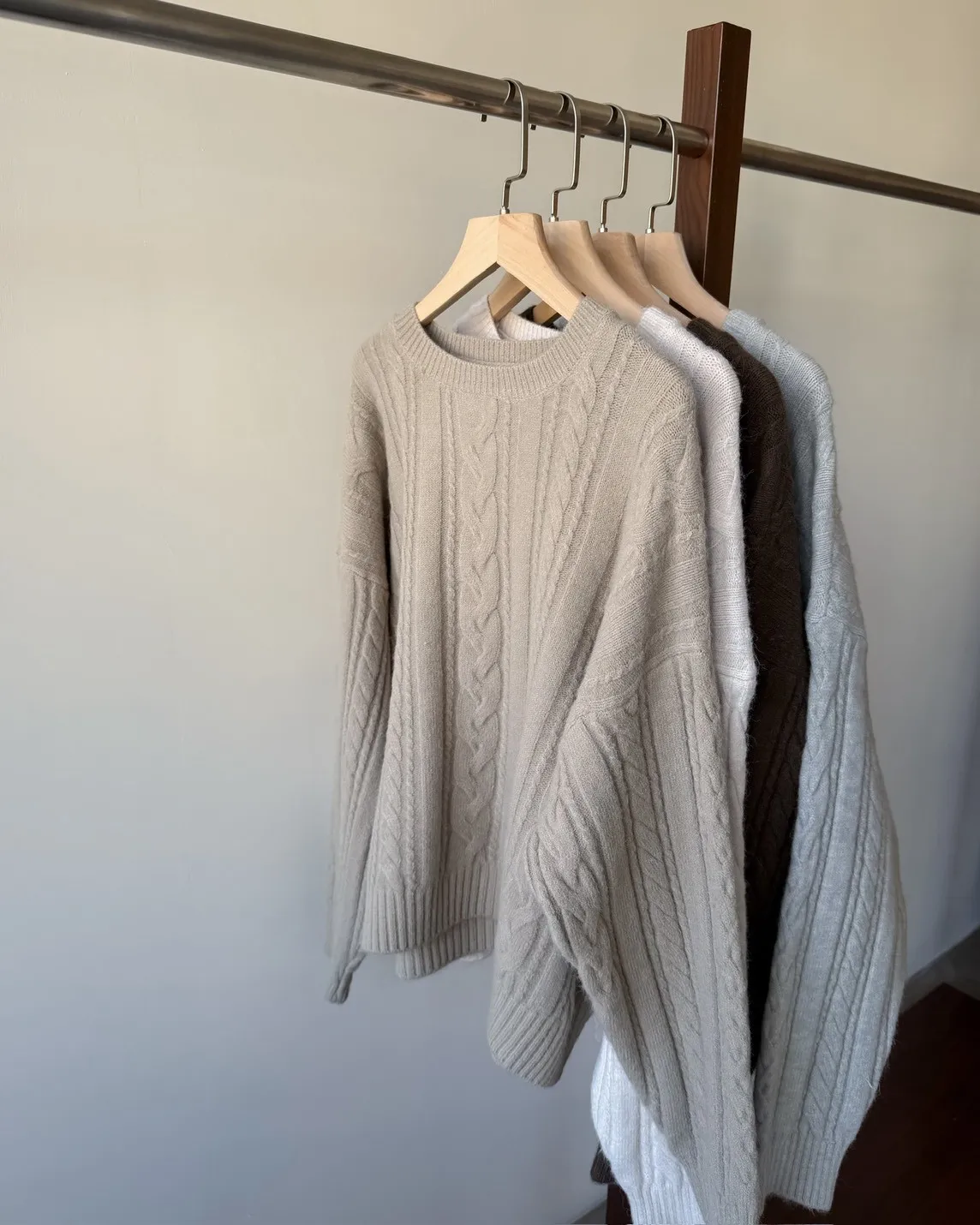 X0036文藝編織麻花辮毛衣(杏/咖啡/綠/灰)