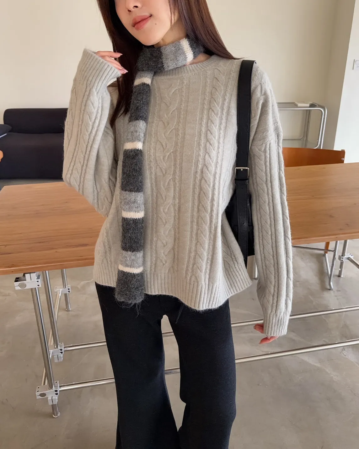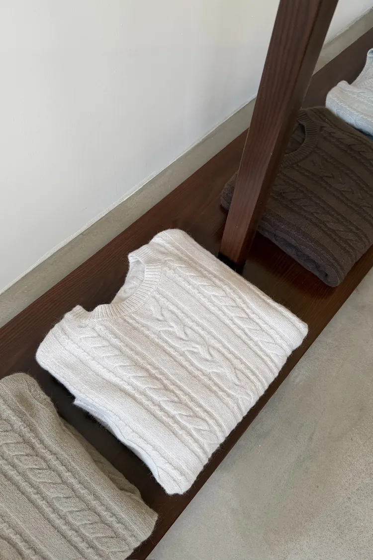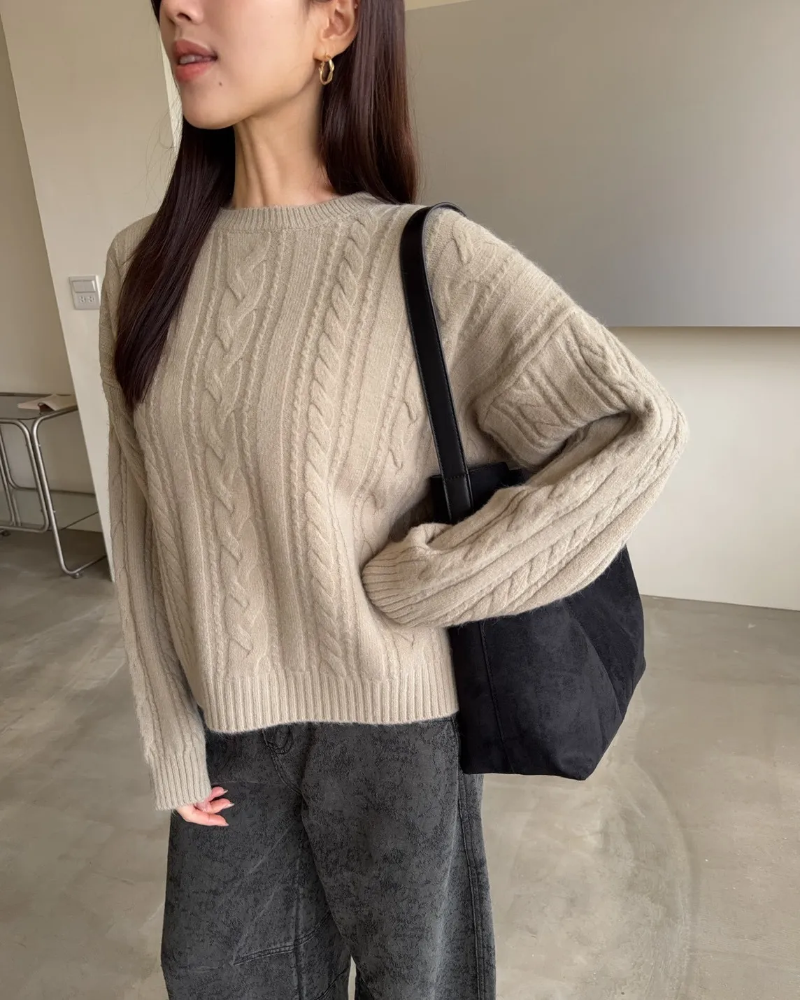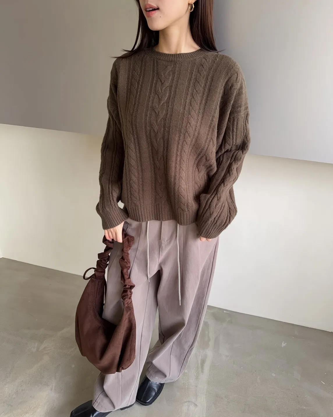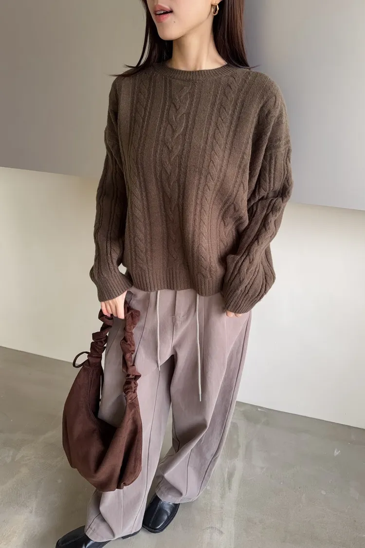 立體麻花 針織 領口/下擺/袖口螺紋滾邊 圓領