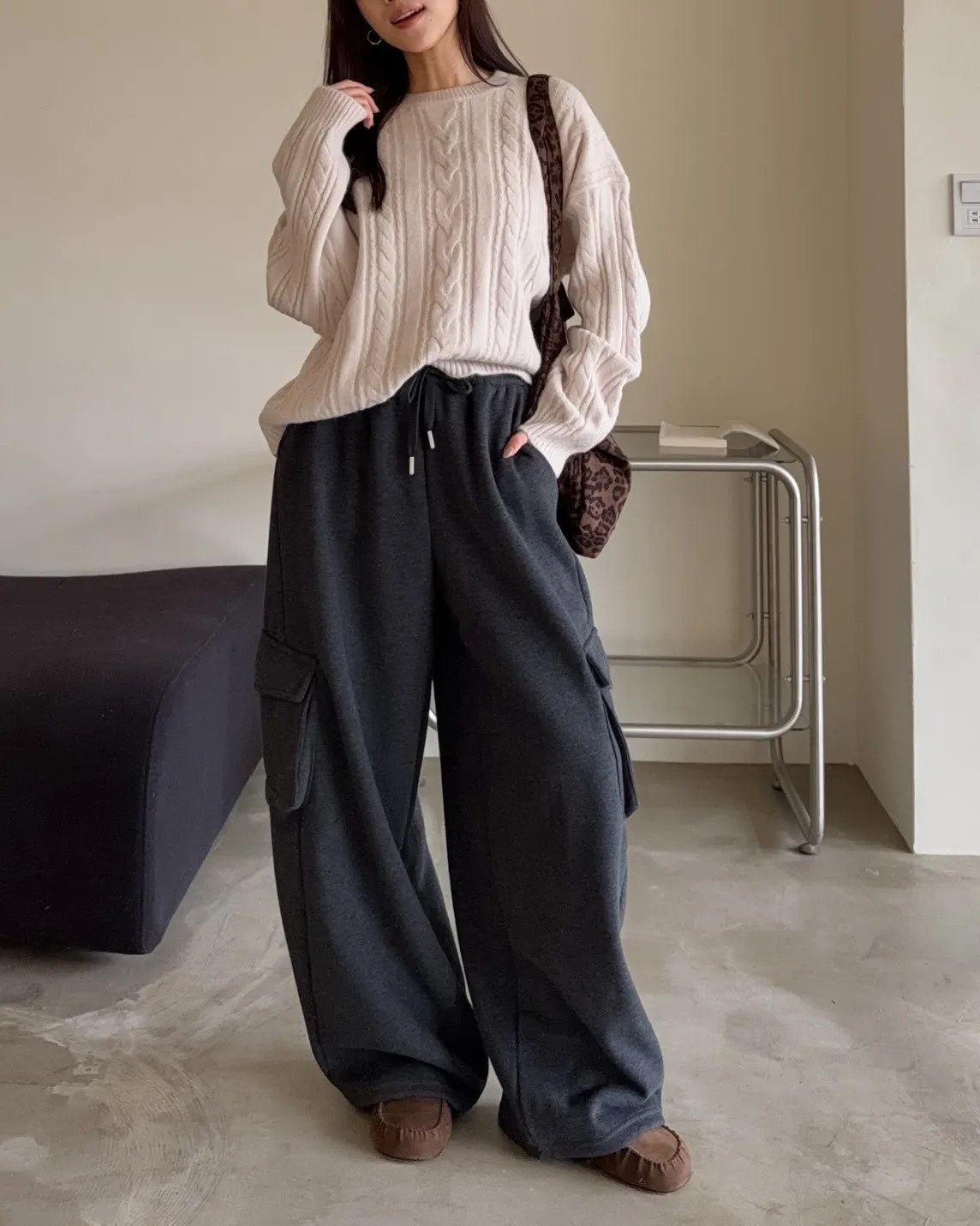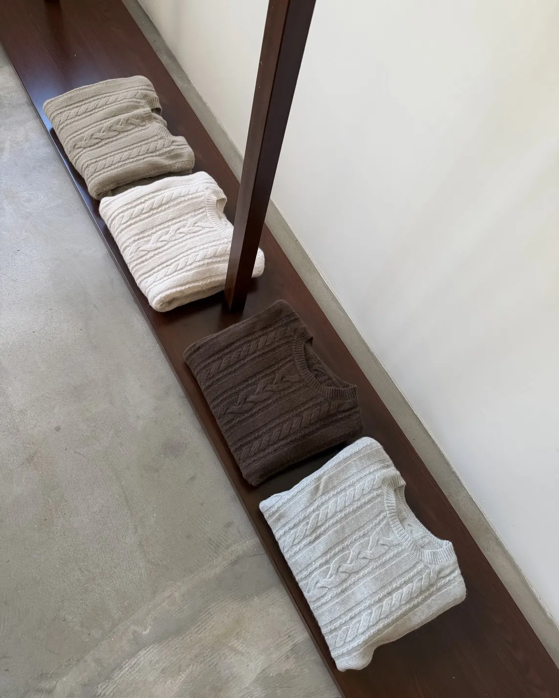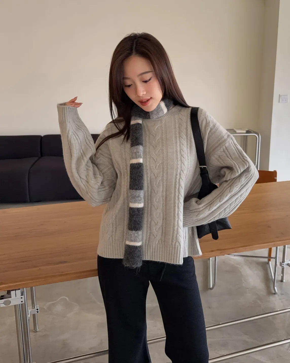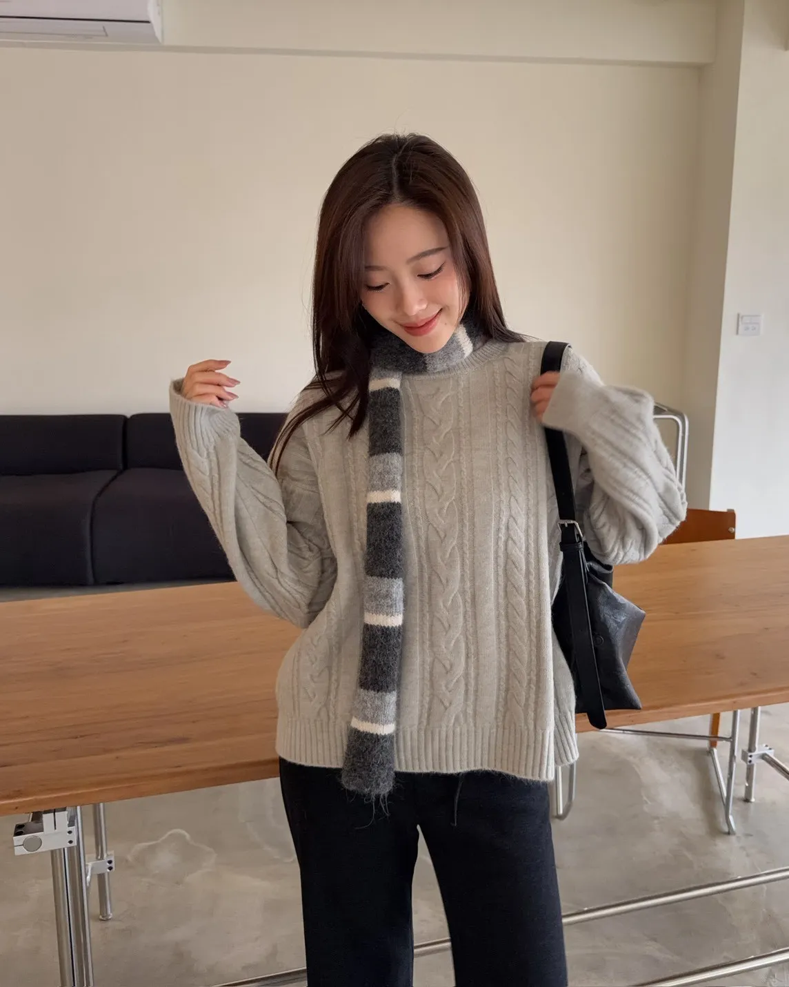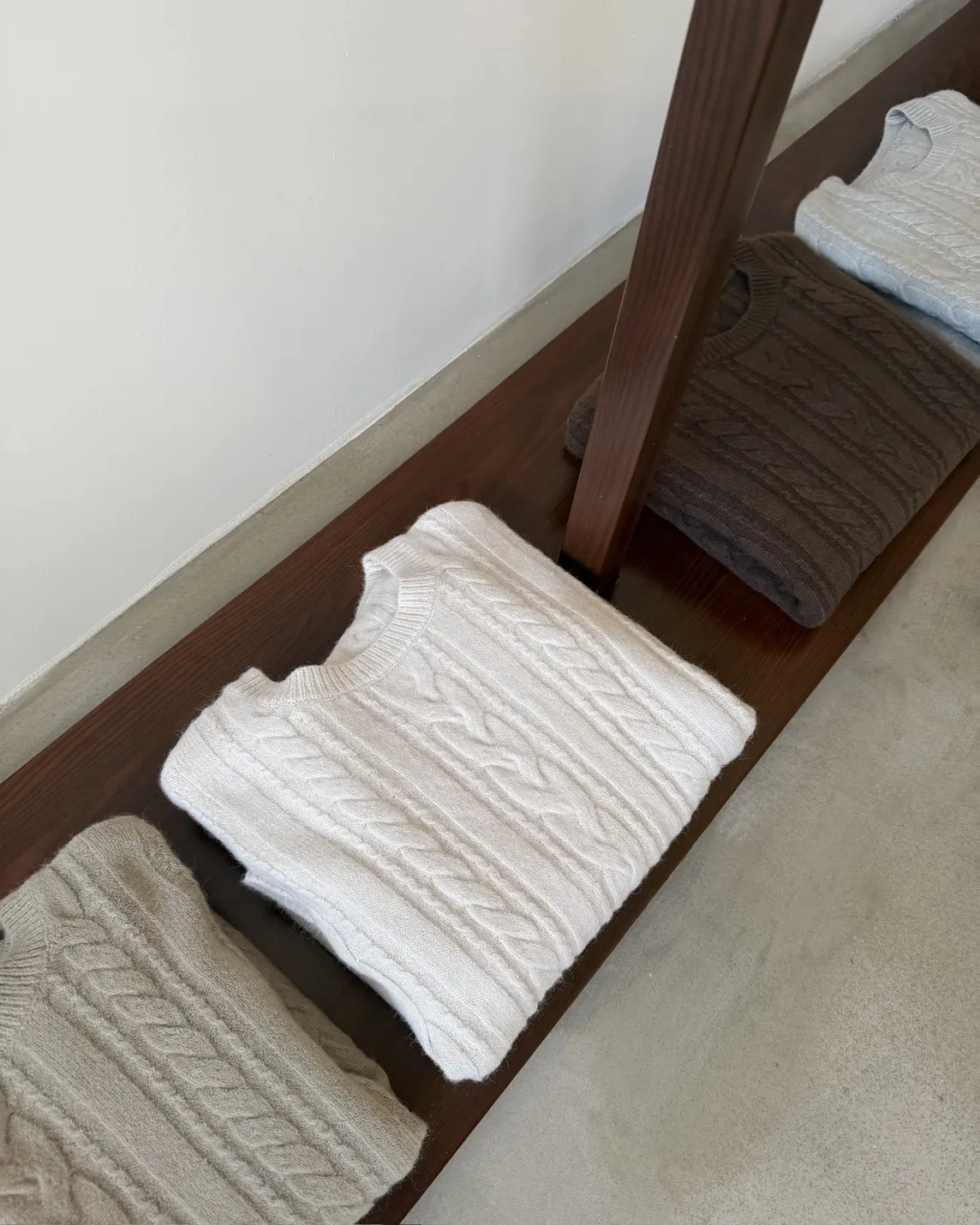 立體麻花 針織 領口/下擺/袖口螺紋滾邊 圓領