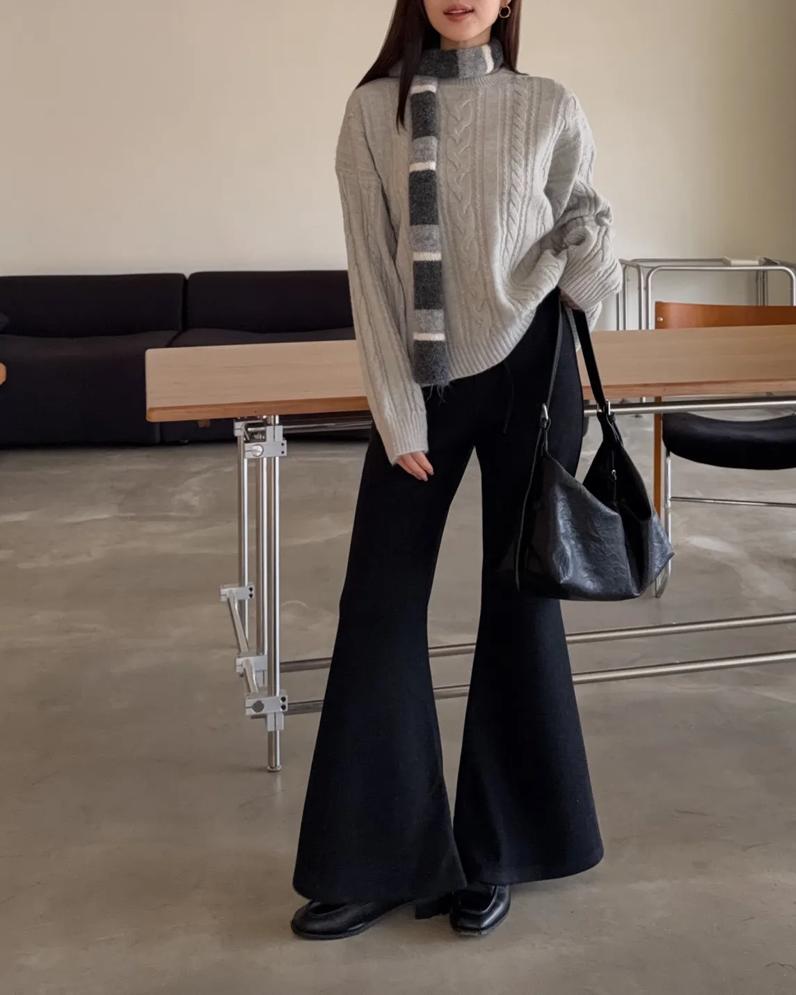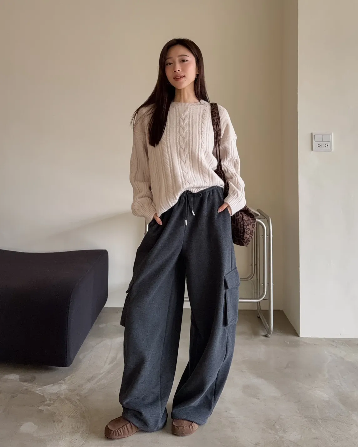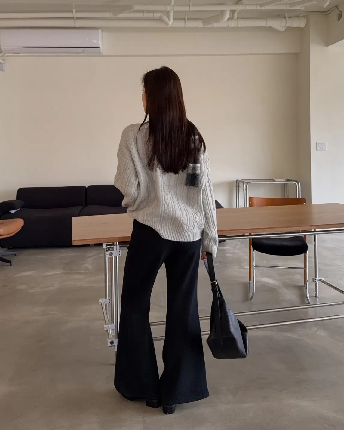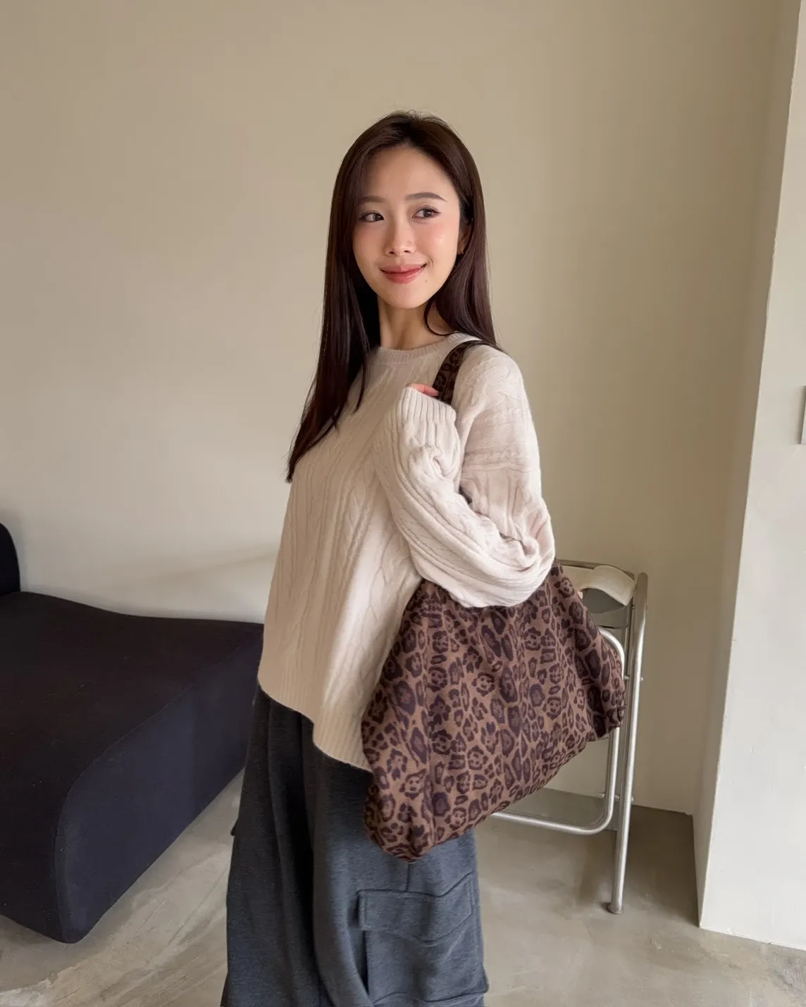 立體麻花 針織 領口/下擺/袖口螺紋滾邊 圓領