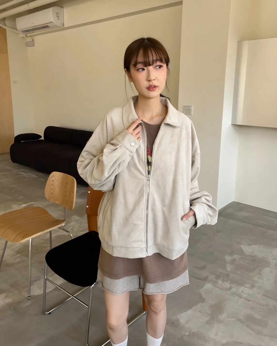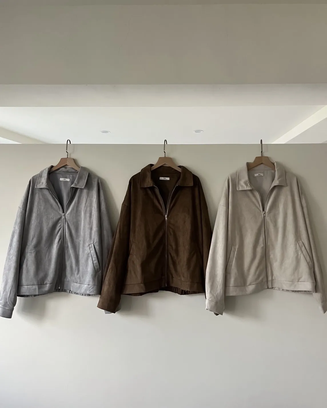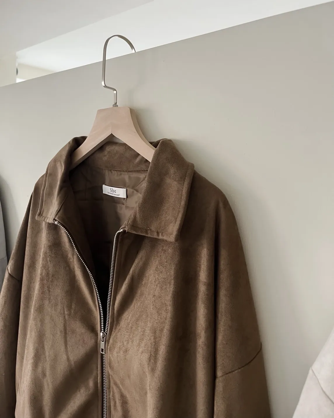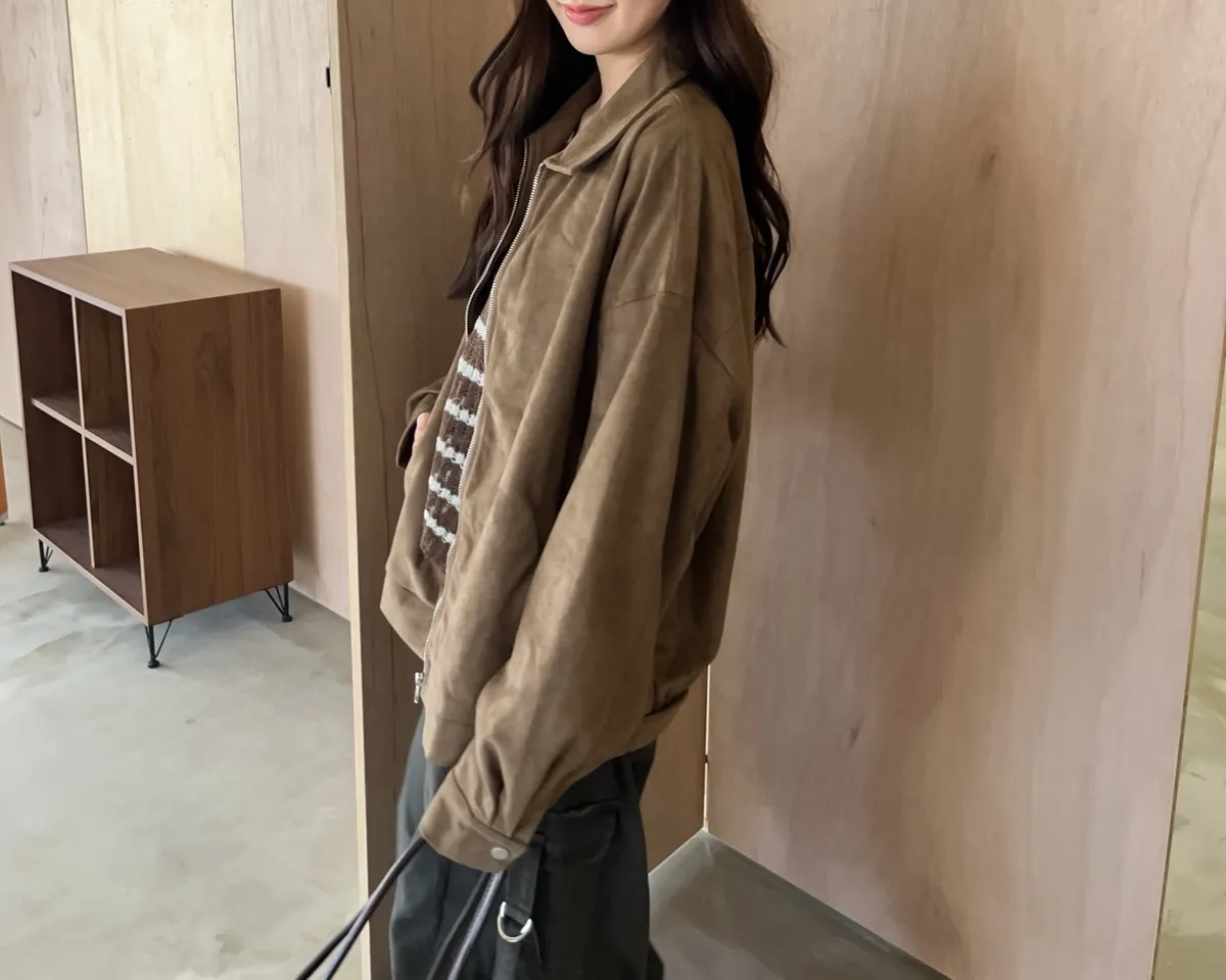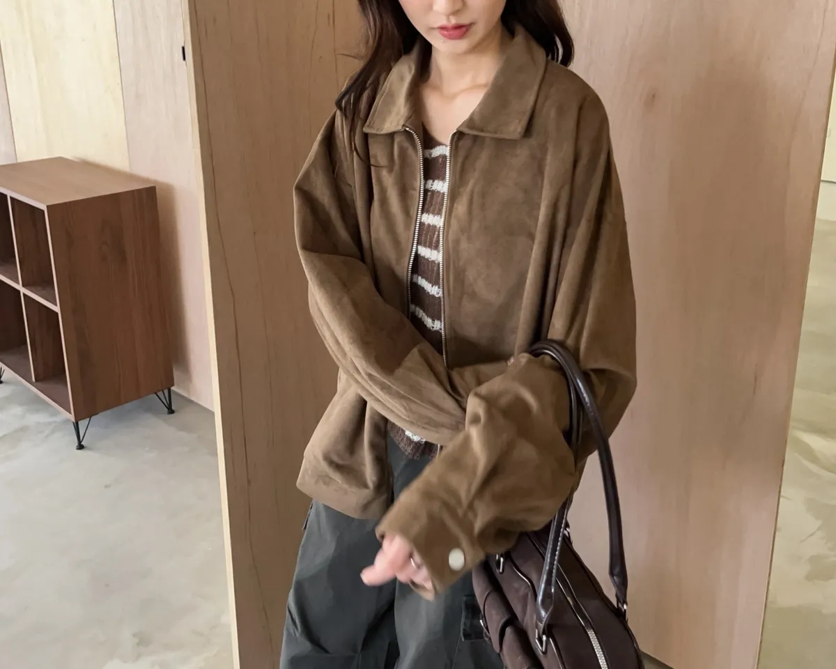 sm1901(she made)寬鬆麂皮翻領外套(杏/咖啡/灰)