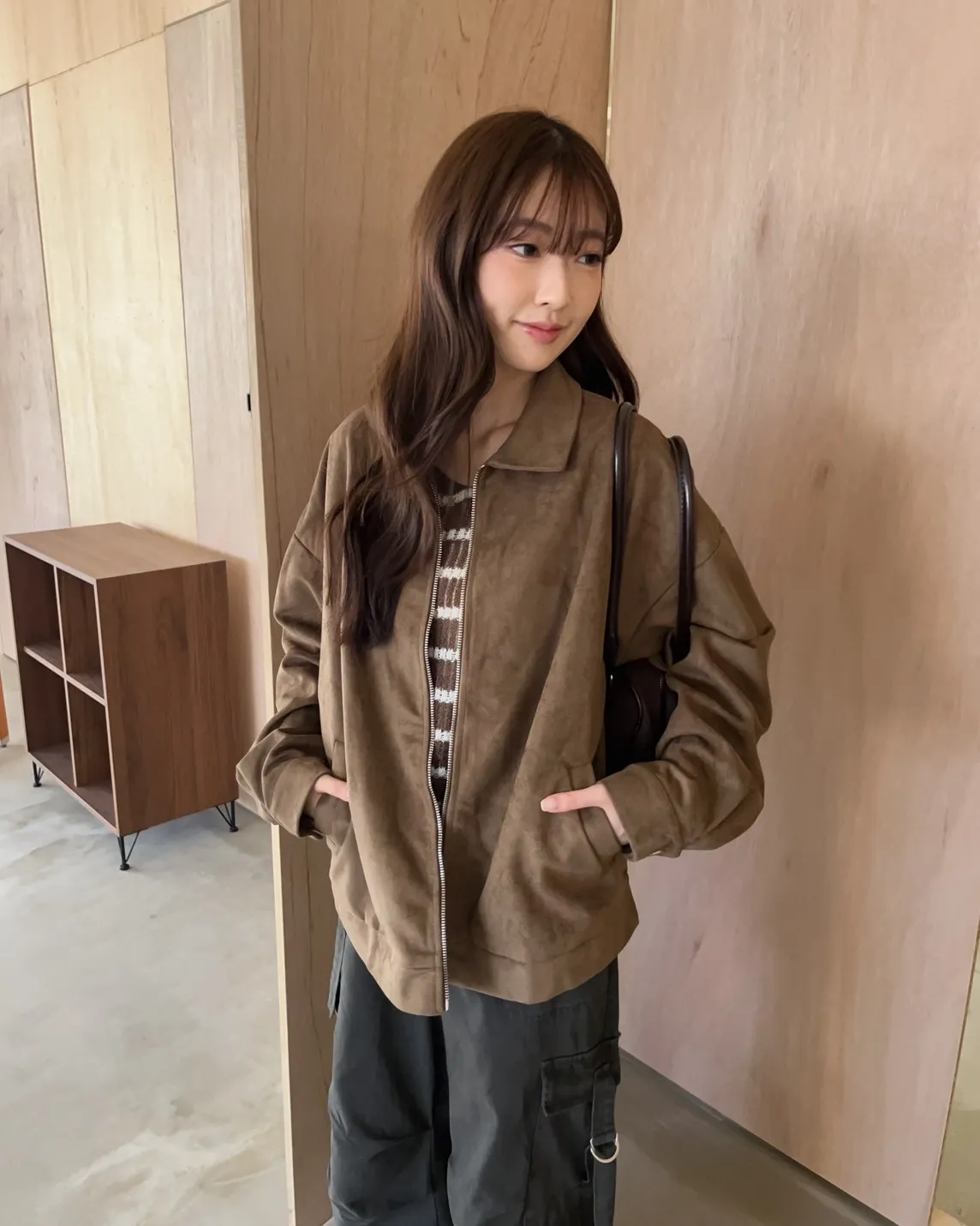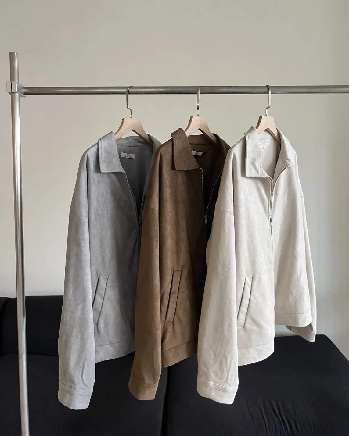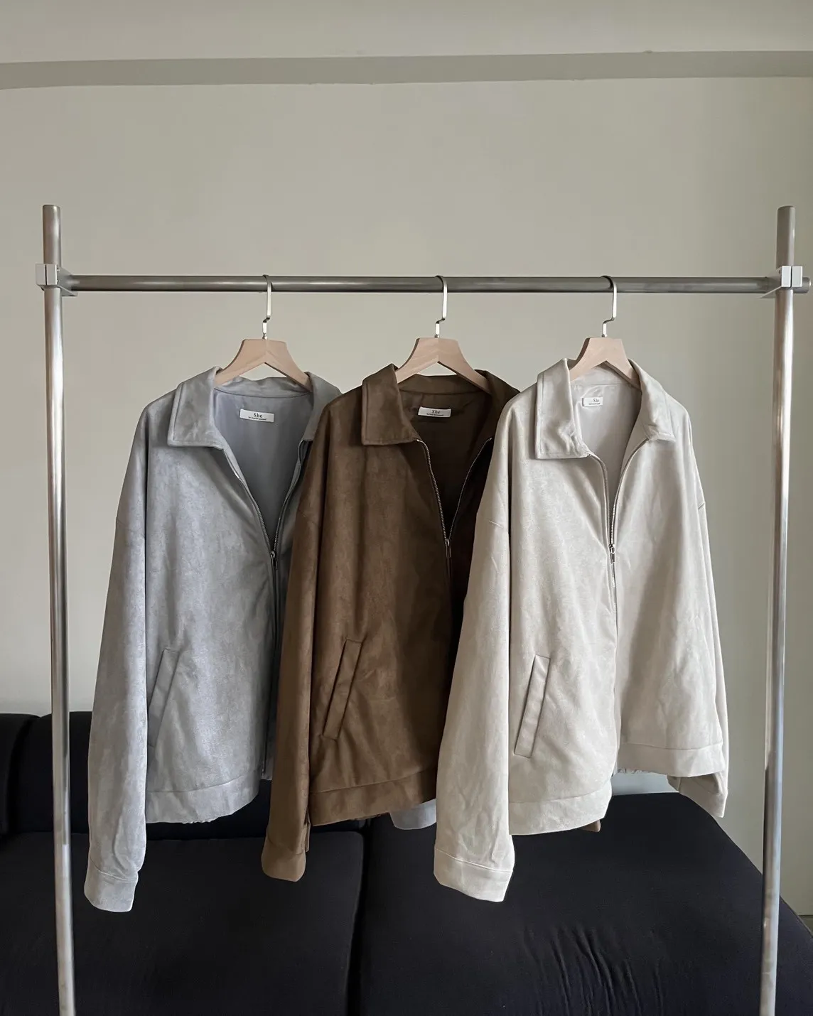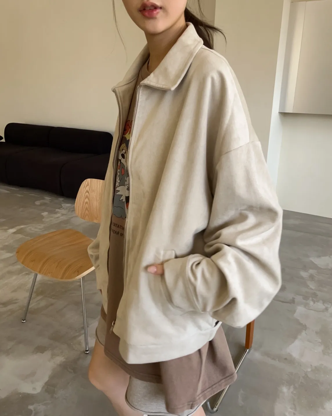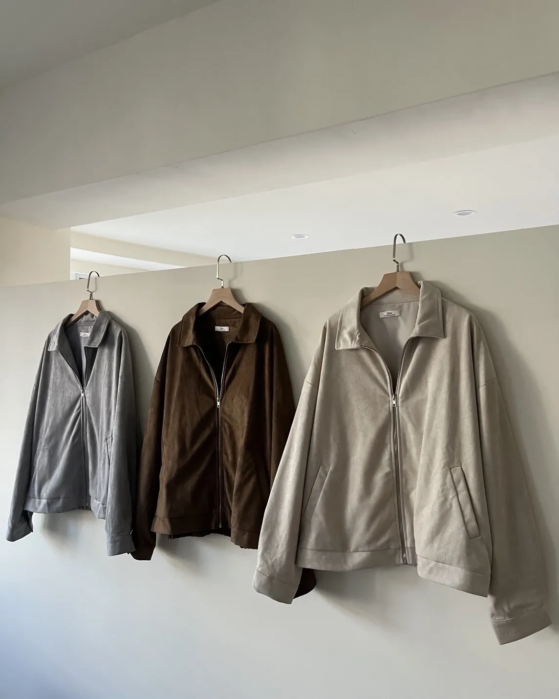 sm1901(she made)寬鬆麂皮翻領外套(杏/咖啡/灰)