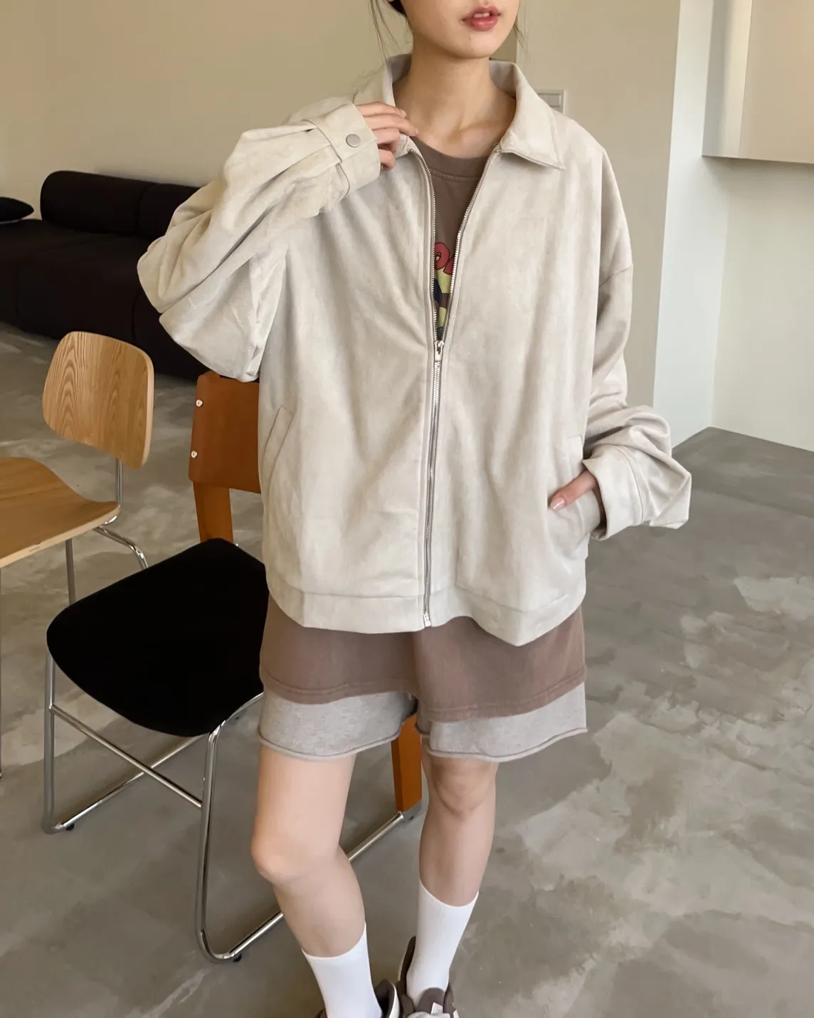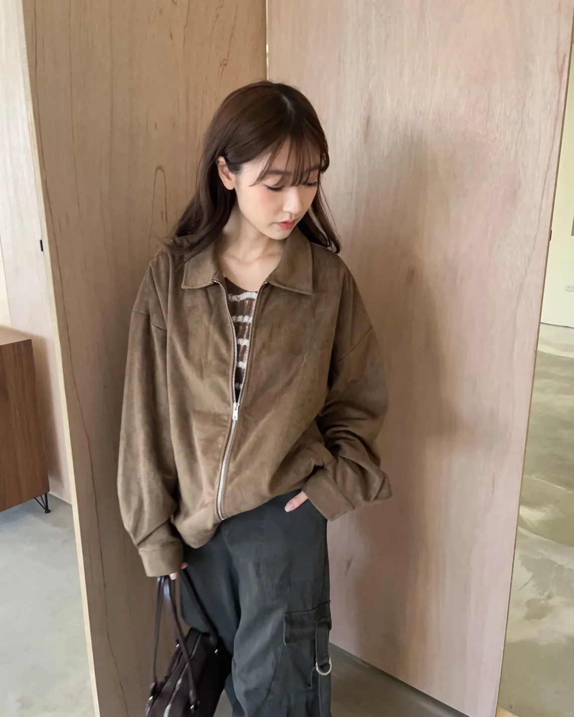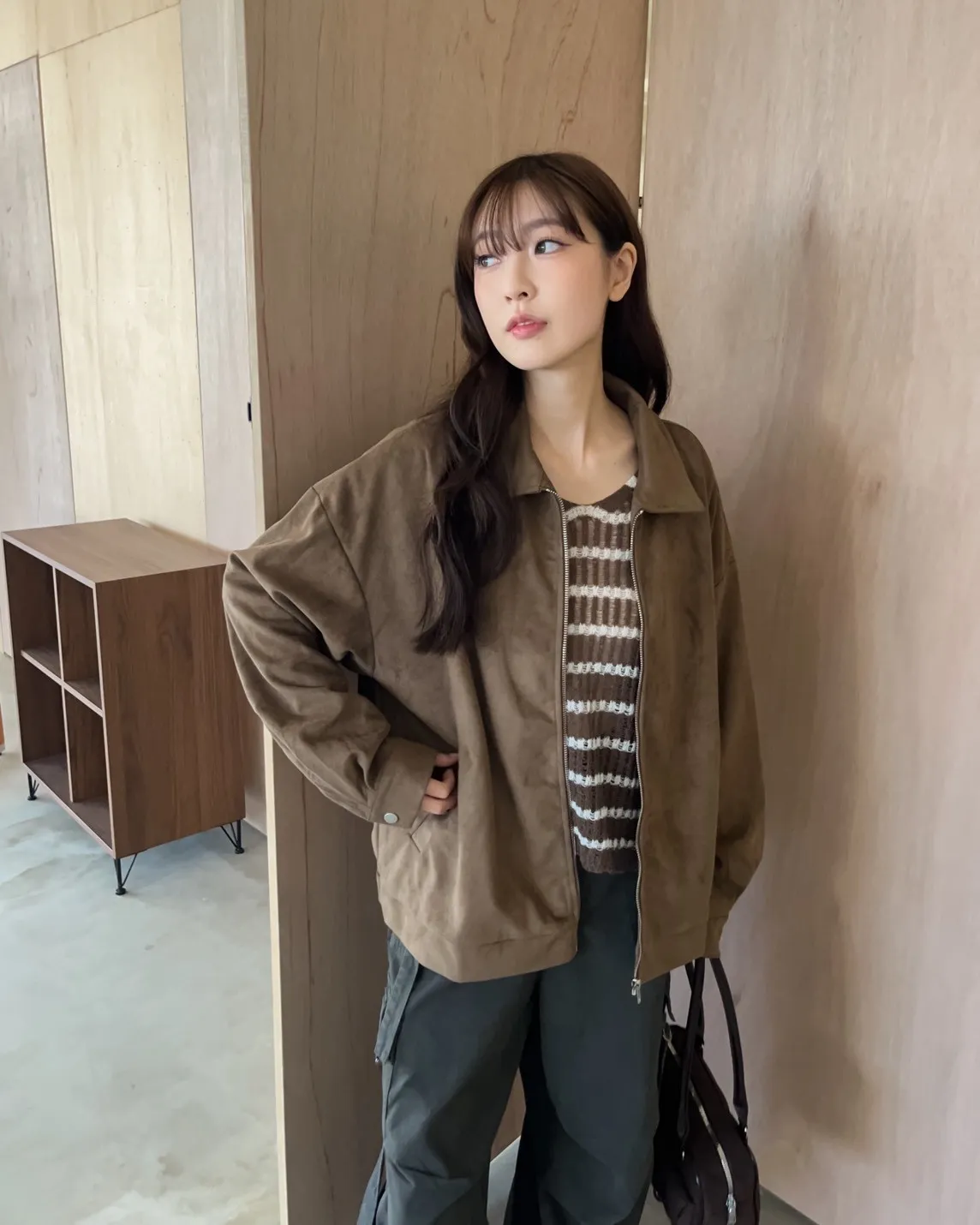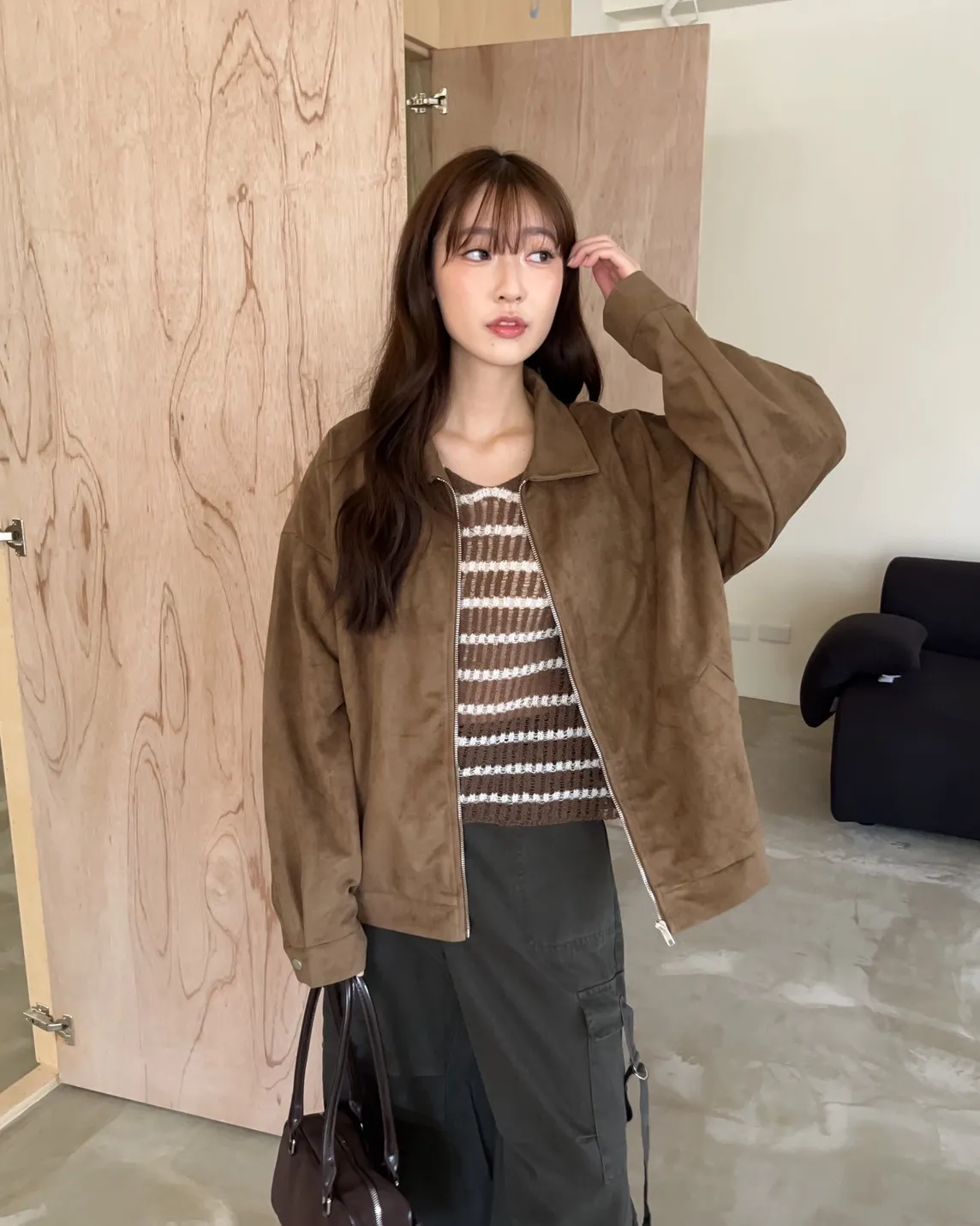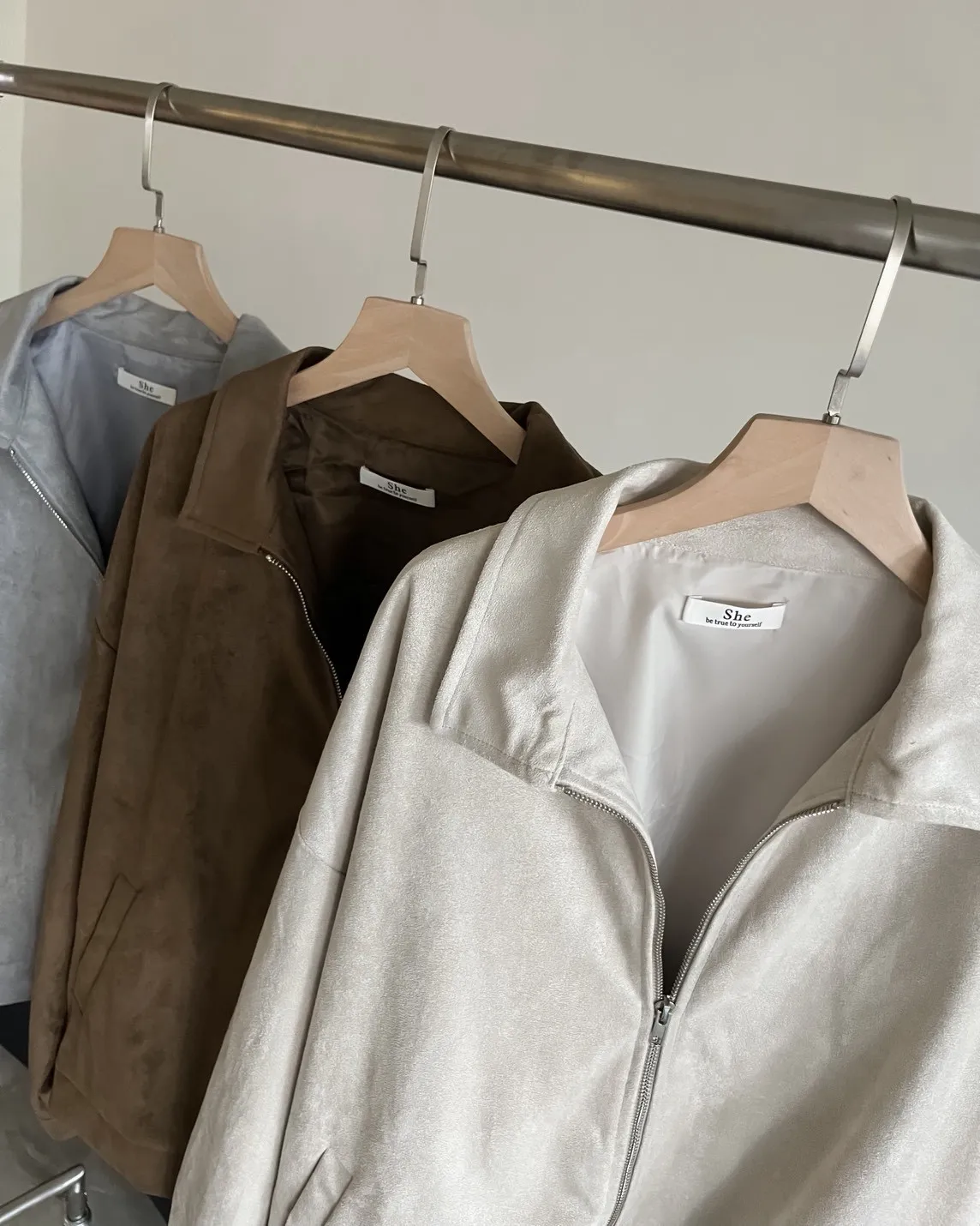 sm1901(she made)寬鬆麂皮翻領外套(杏/咖啡/灰)