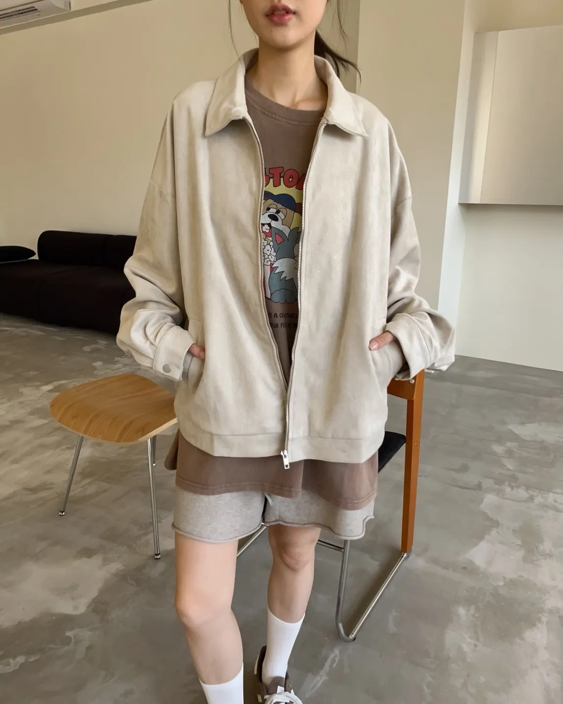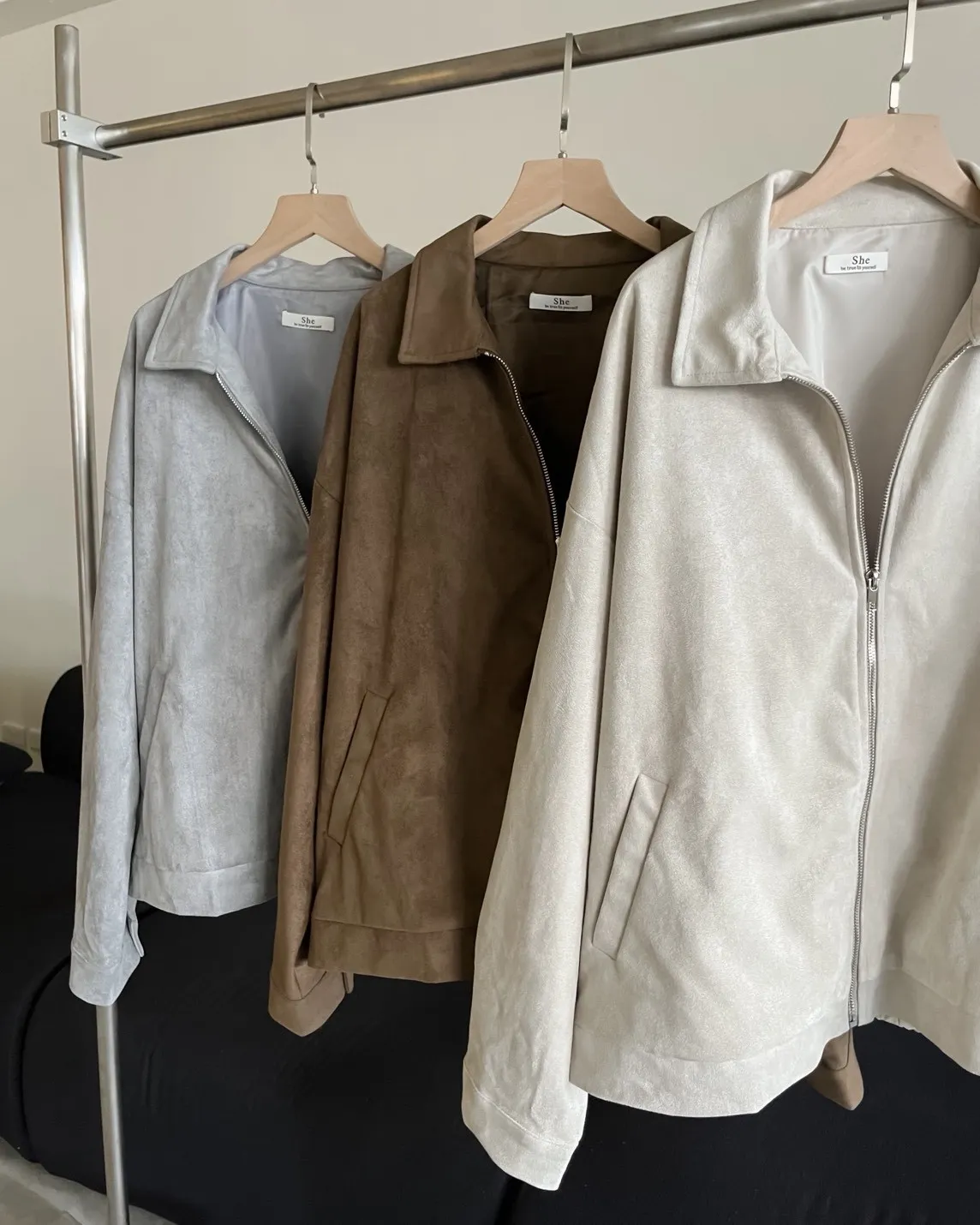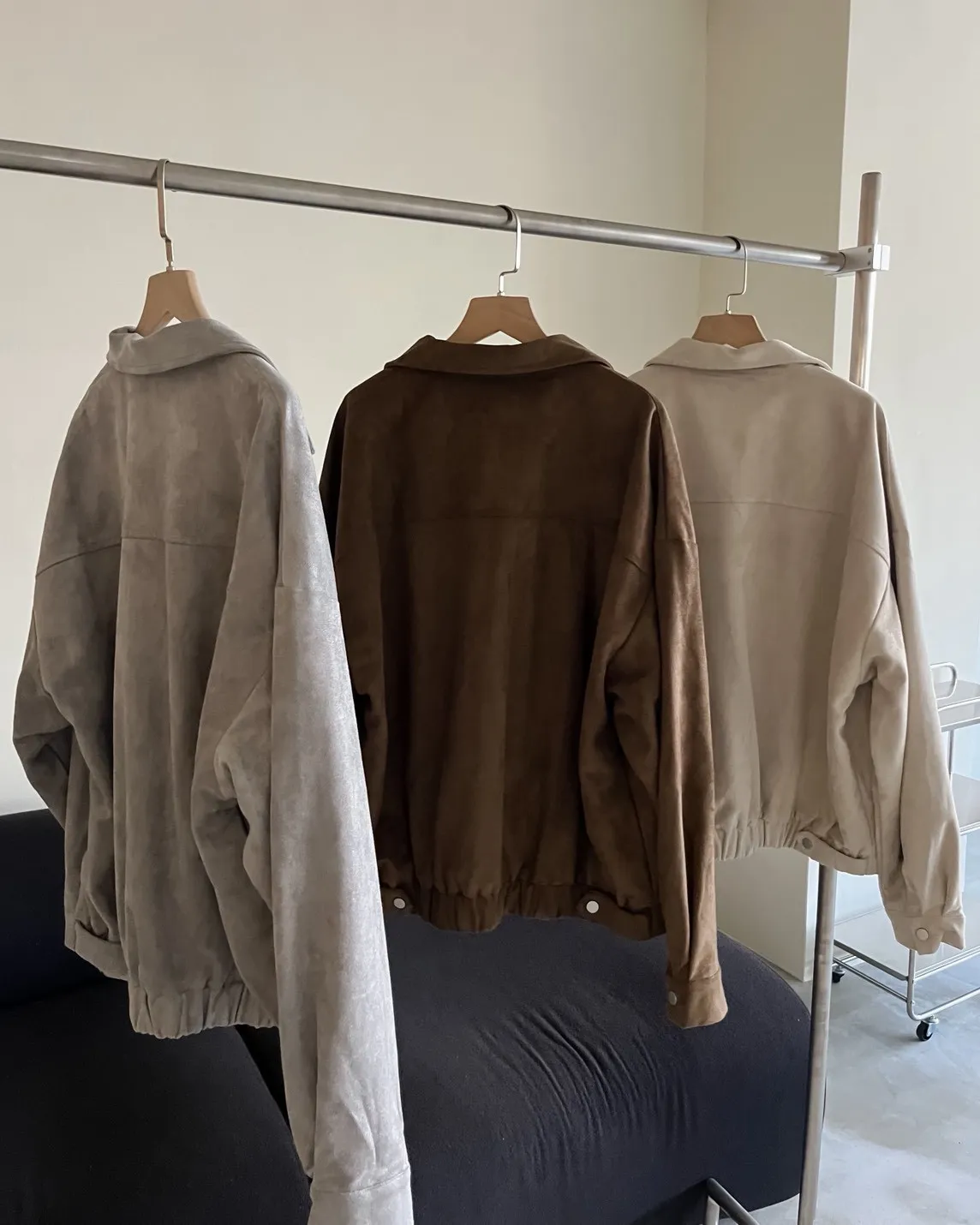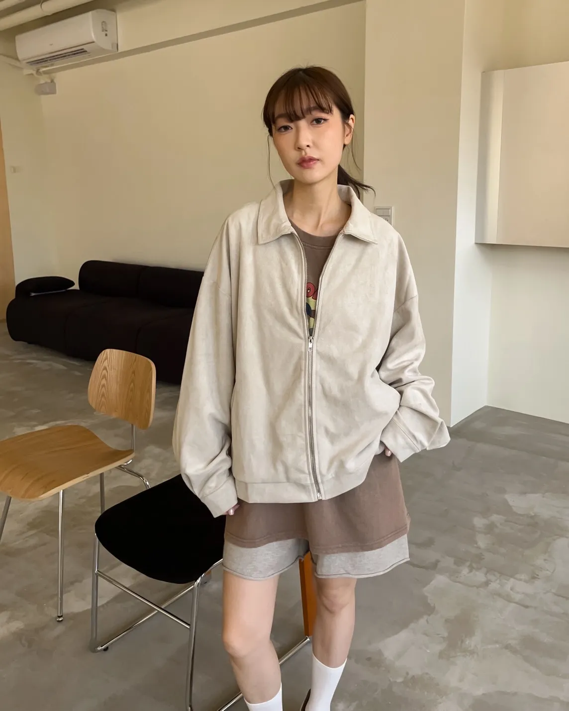 sm1901(she made)寬鬆麂皮翻領外套(杏/咖啡/灰)