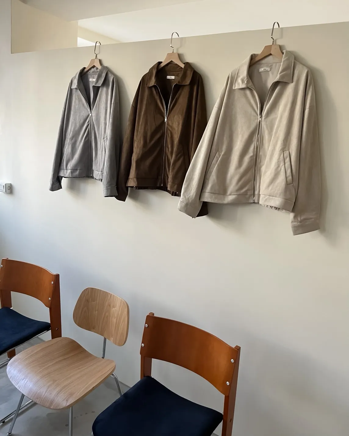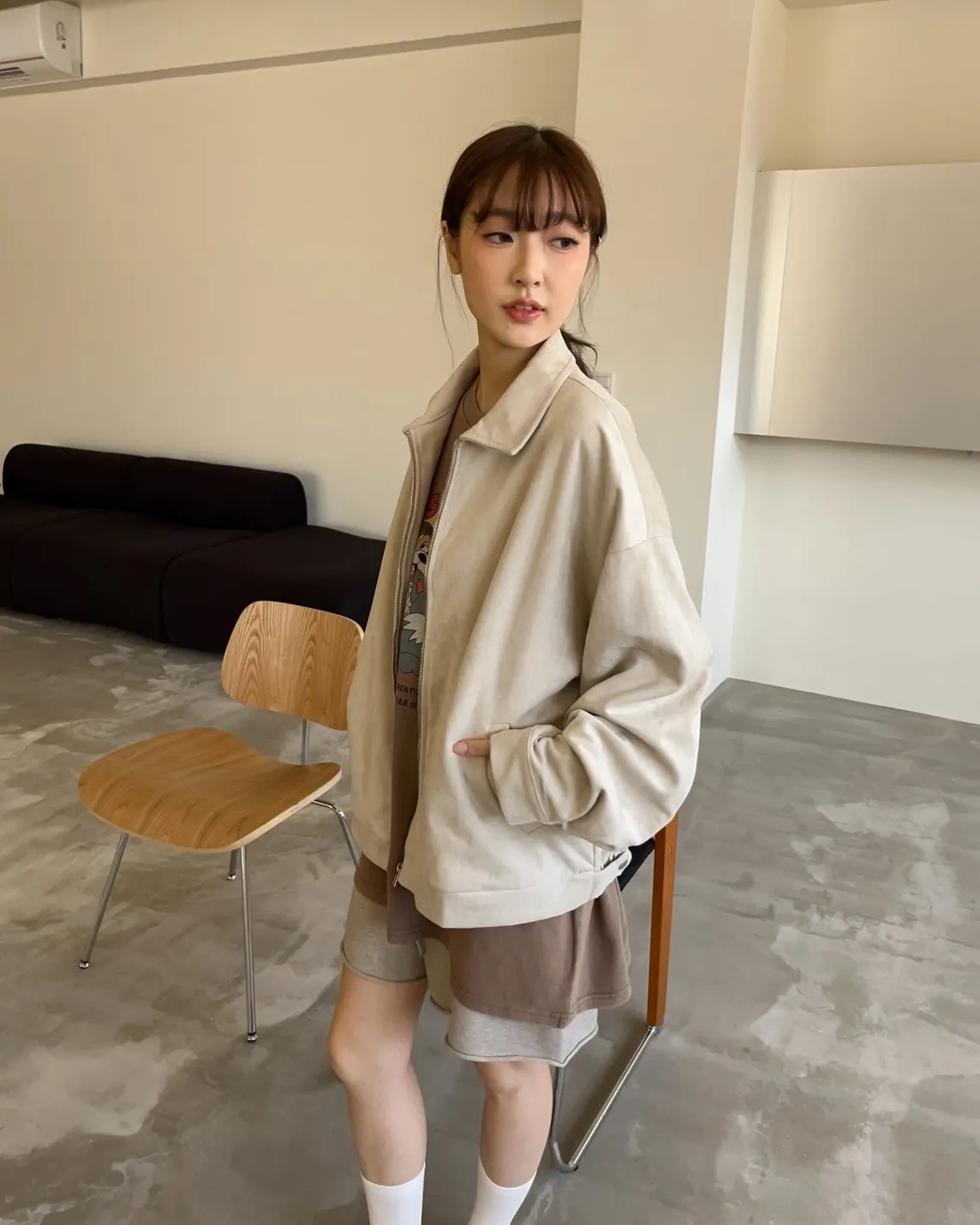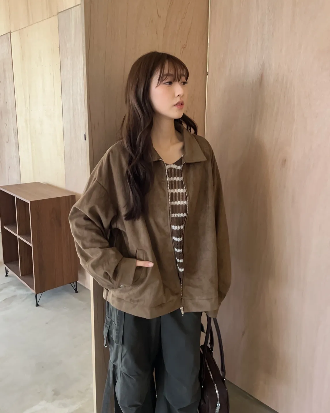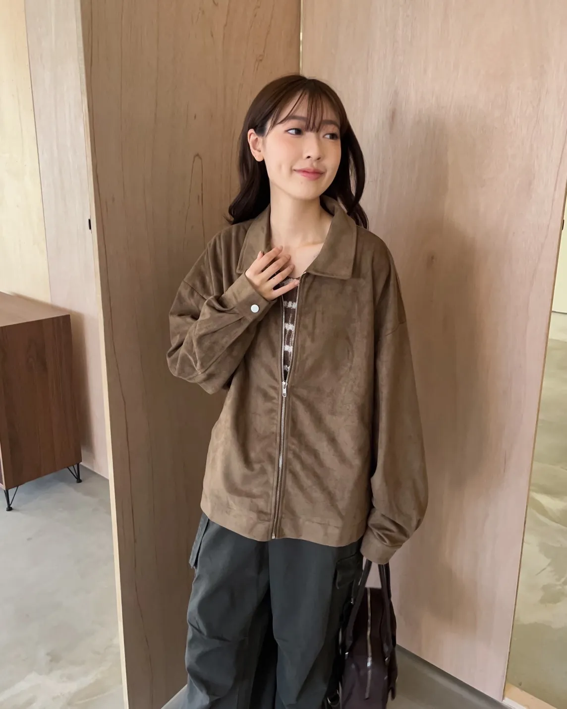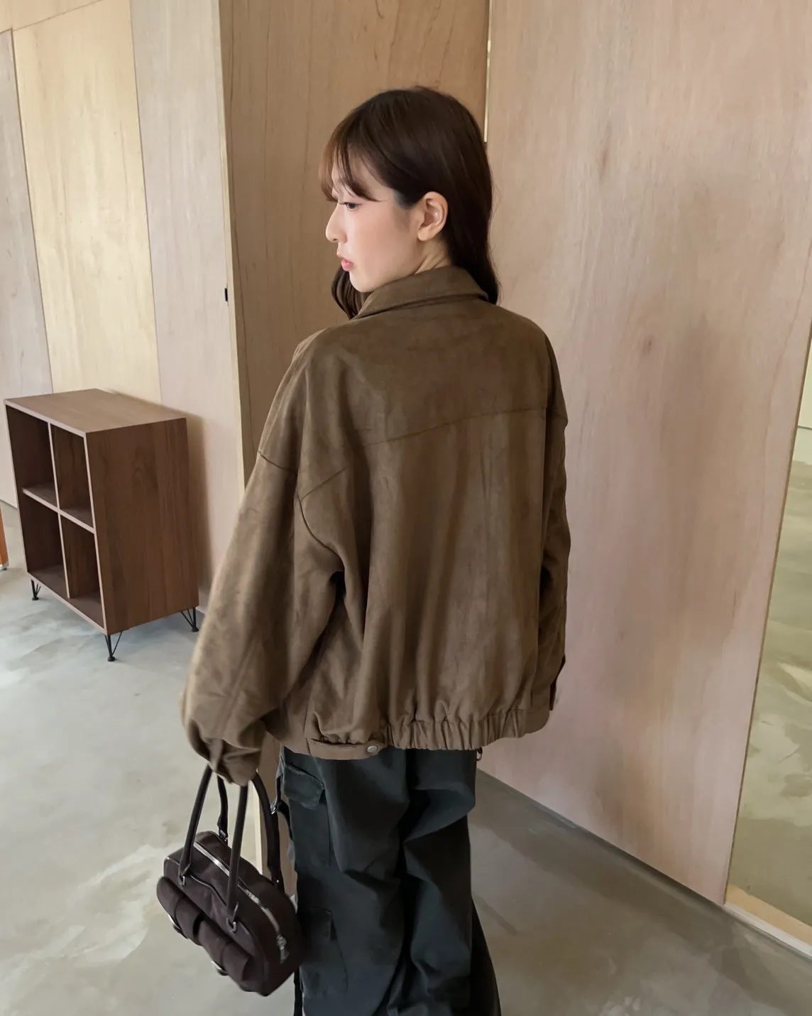 sm1901(she made)寬鬆麂皮翻領外套(杏/咖啡/灰)