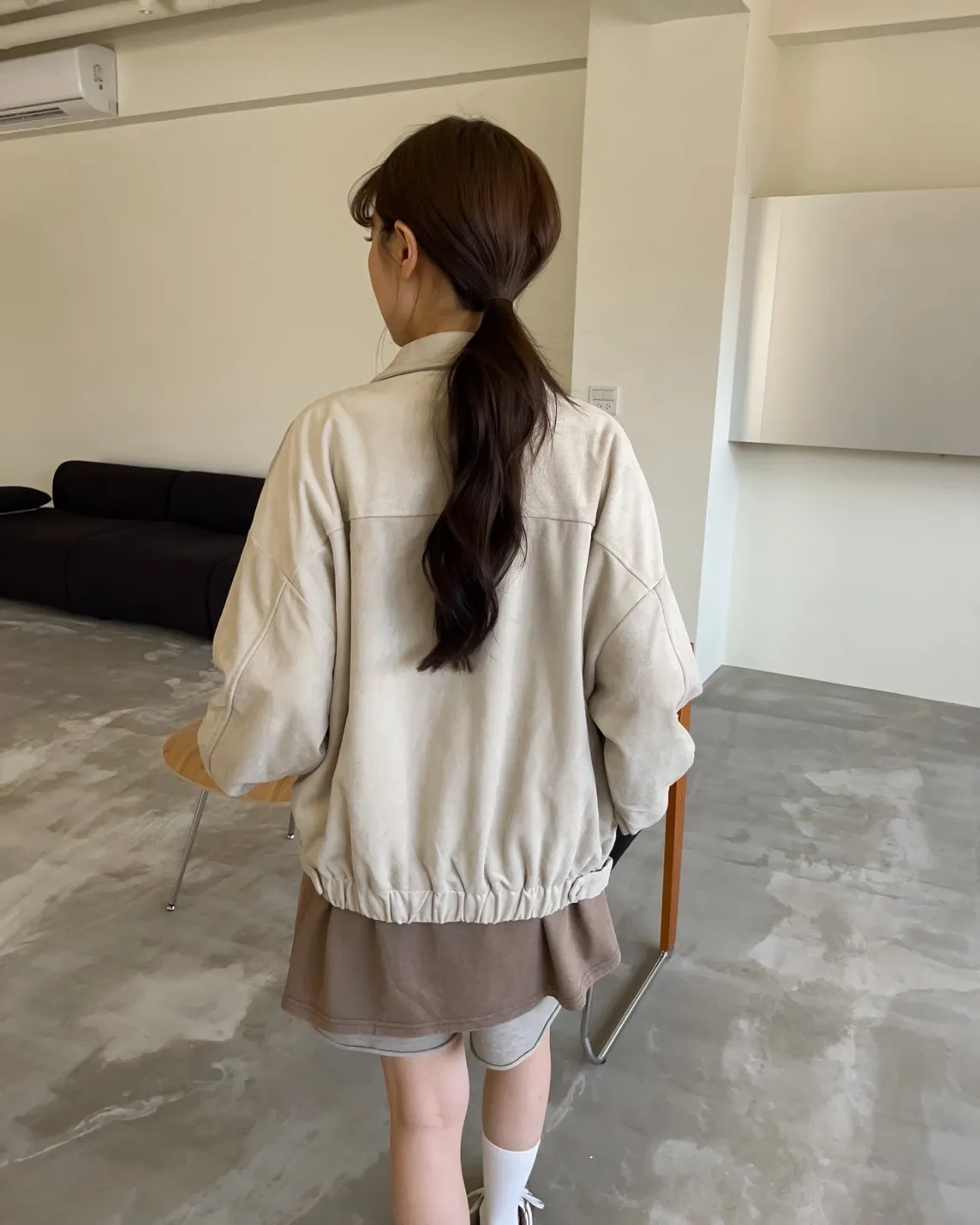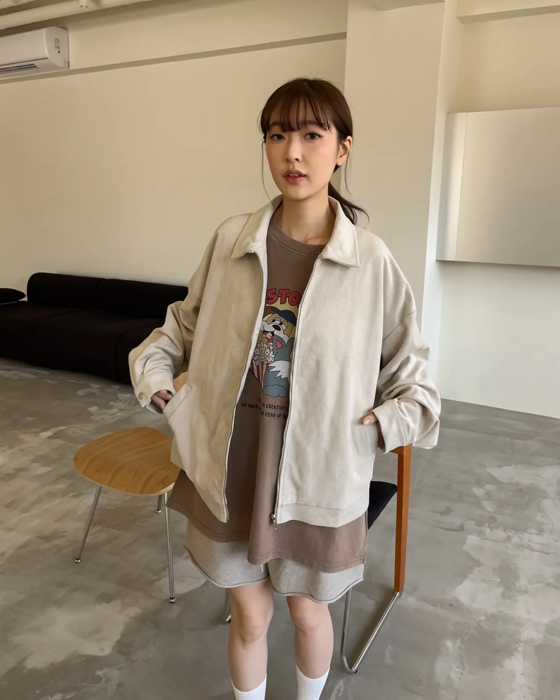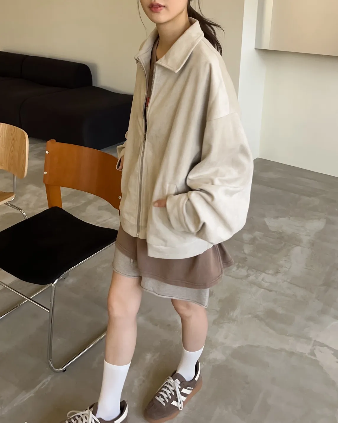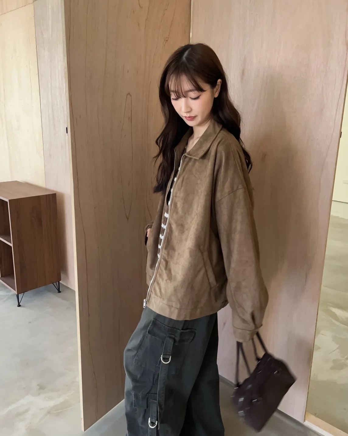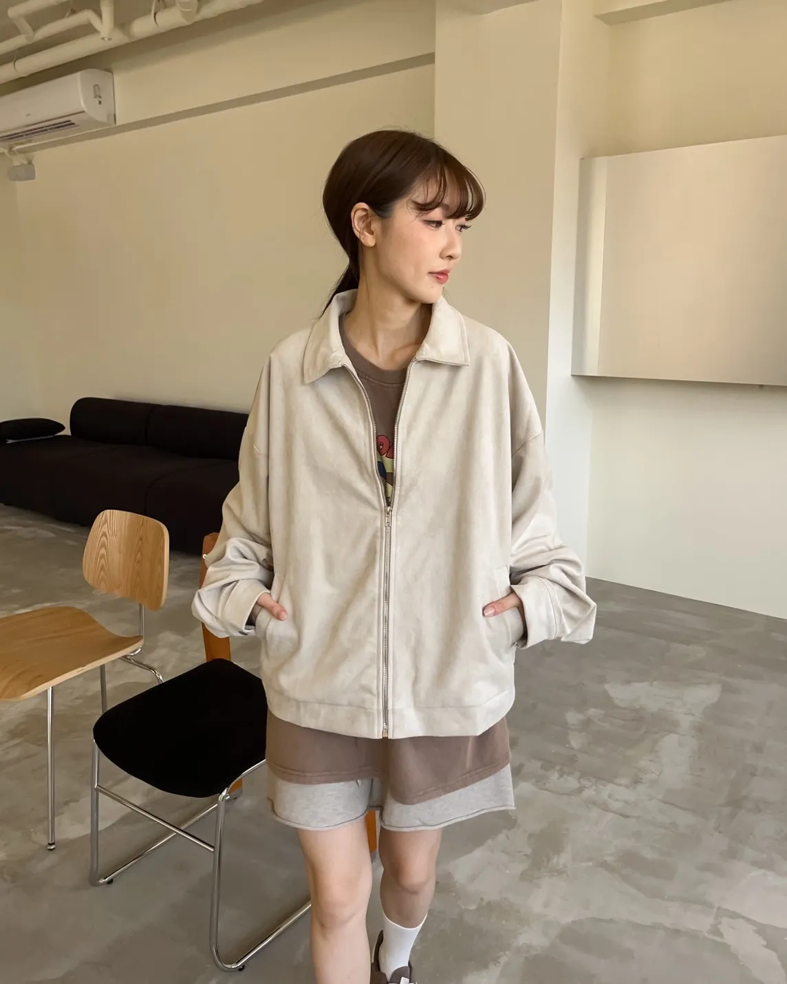 sm1901(she made)寬鬆麂皮翻領外套(杏/咖啡/灰)